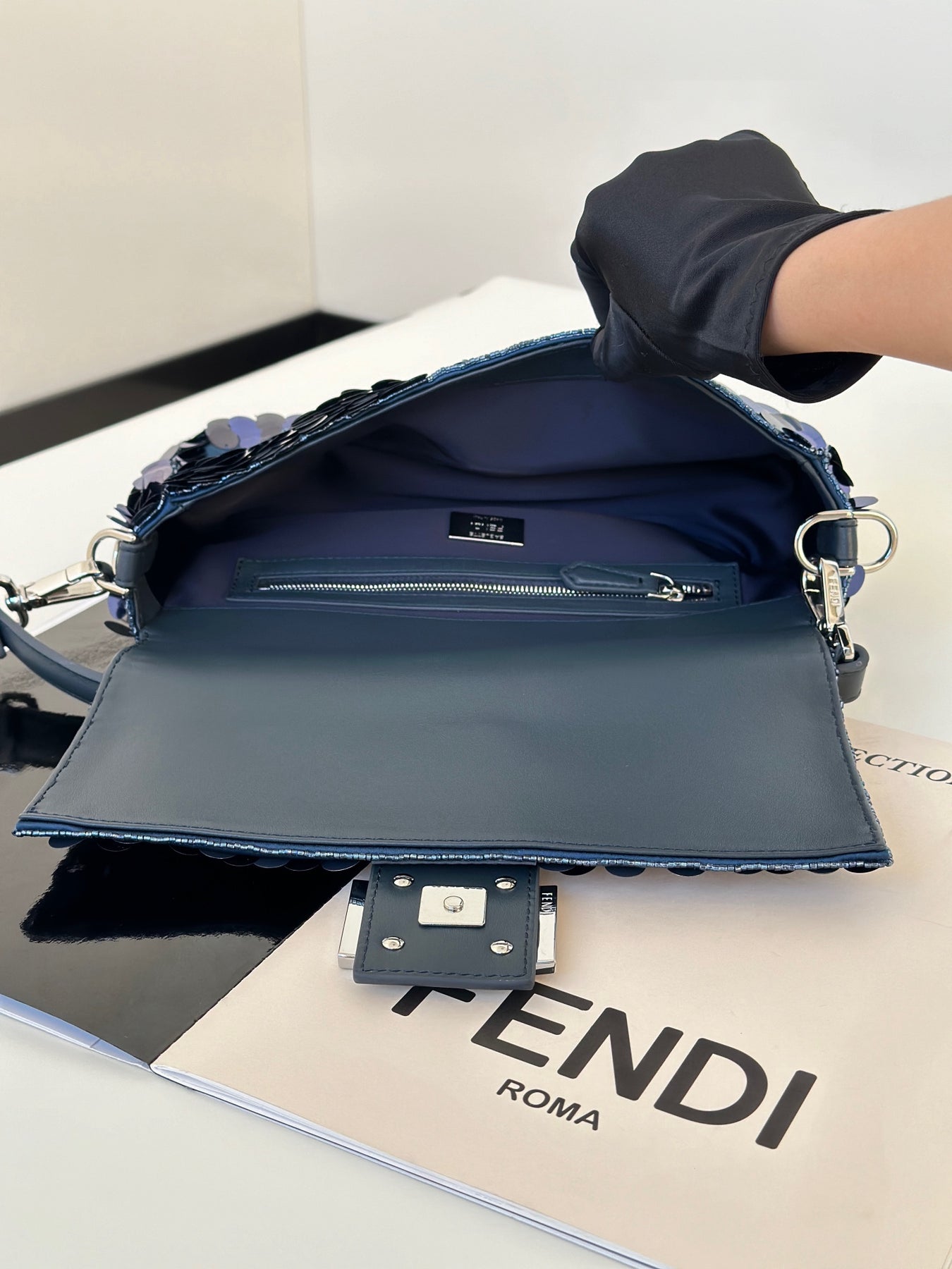 Measuring 27cm x 7cm x 13cm, this spacious bag offers versatile storage options for all your essentials. Please note that while the full set includes packaging, shoulder straps are available for purchase separately. Elevate your style with the unique charm of our hand-crafted baguette bag, style number 8601AL.