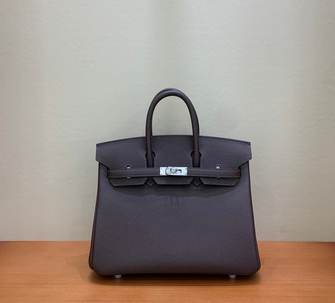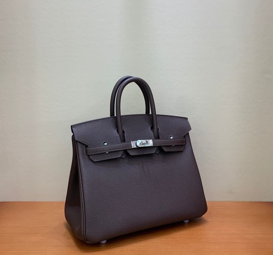Experience luxury with our hand-stitched Birkin 25cm, crafted from premium imported togo leather. This exclusive piece showcases meticulous French craftsmanship, featuring a rich ebony color complemented by elegant gold and silver buckles. The beeswax thread adds durability and a touch of rustic charm. An essential addition to any luxury collection, this handbag is ready for immediate shipment. Elevate your style with this timeless classic.