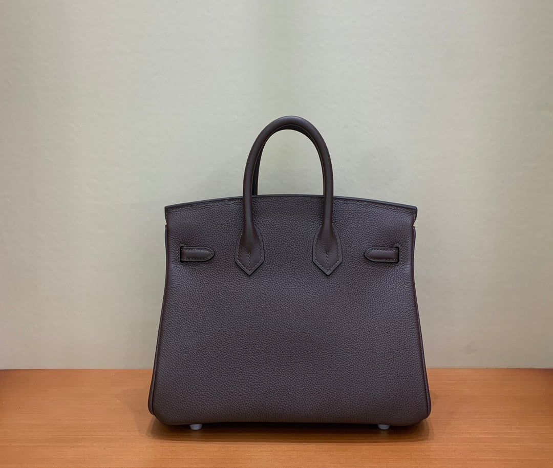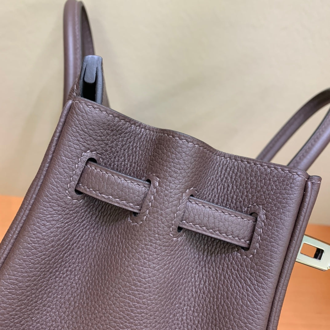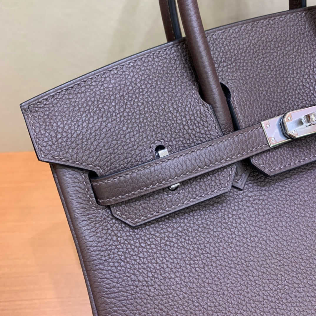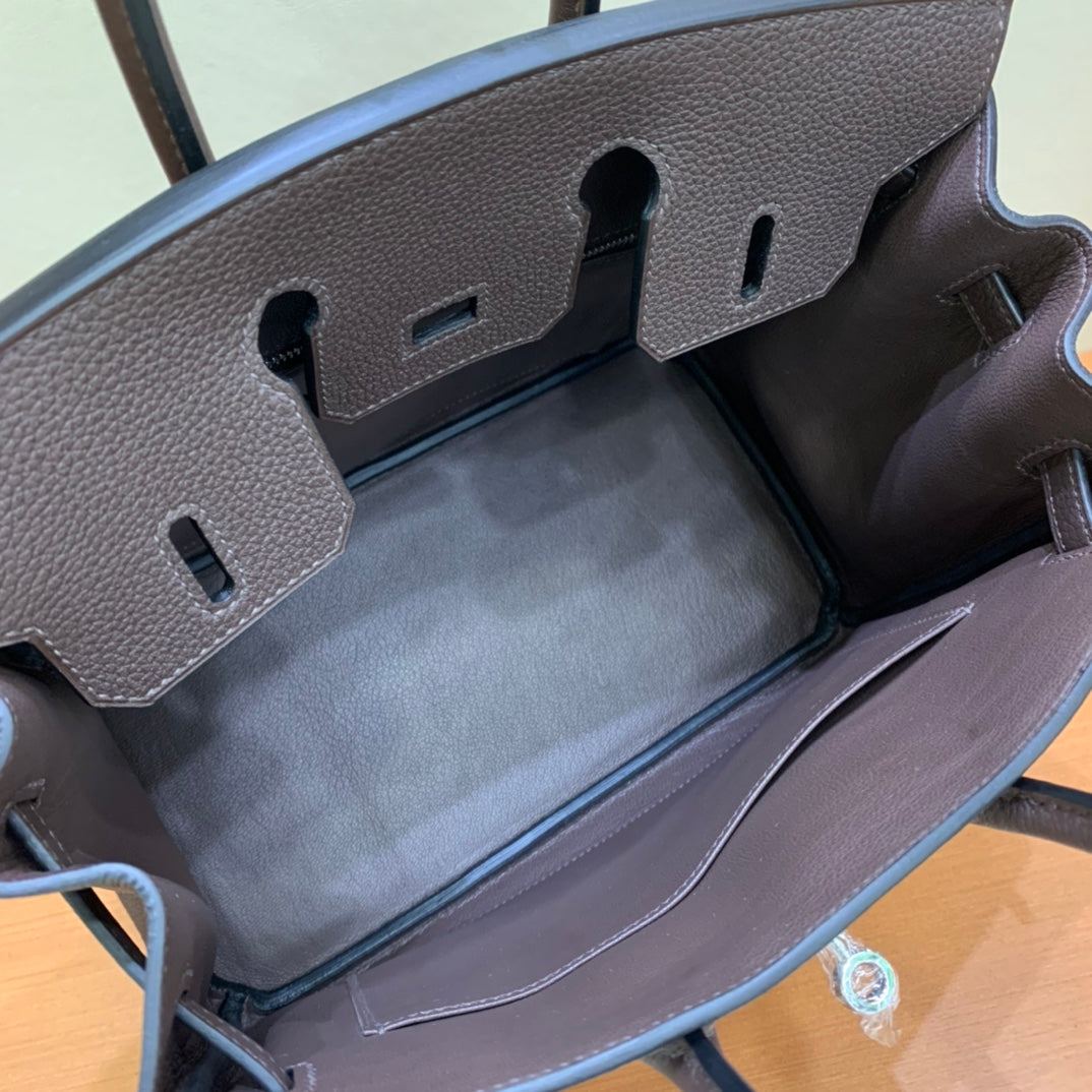 Hand-Stitched Beeswax Leather Birkin 25cm - Ebony with Gold & Silver Buckle