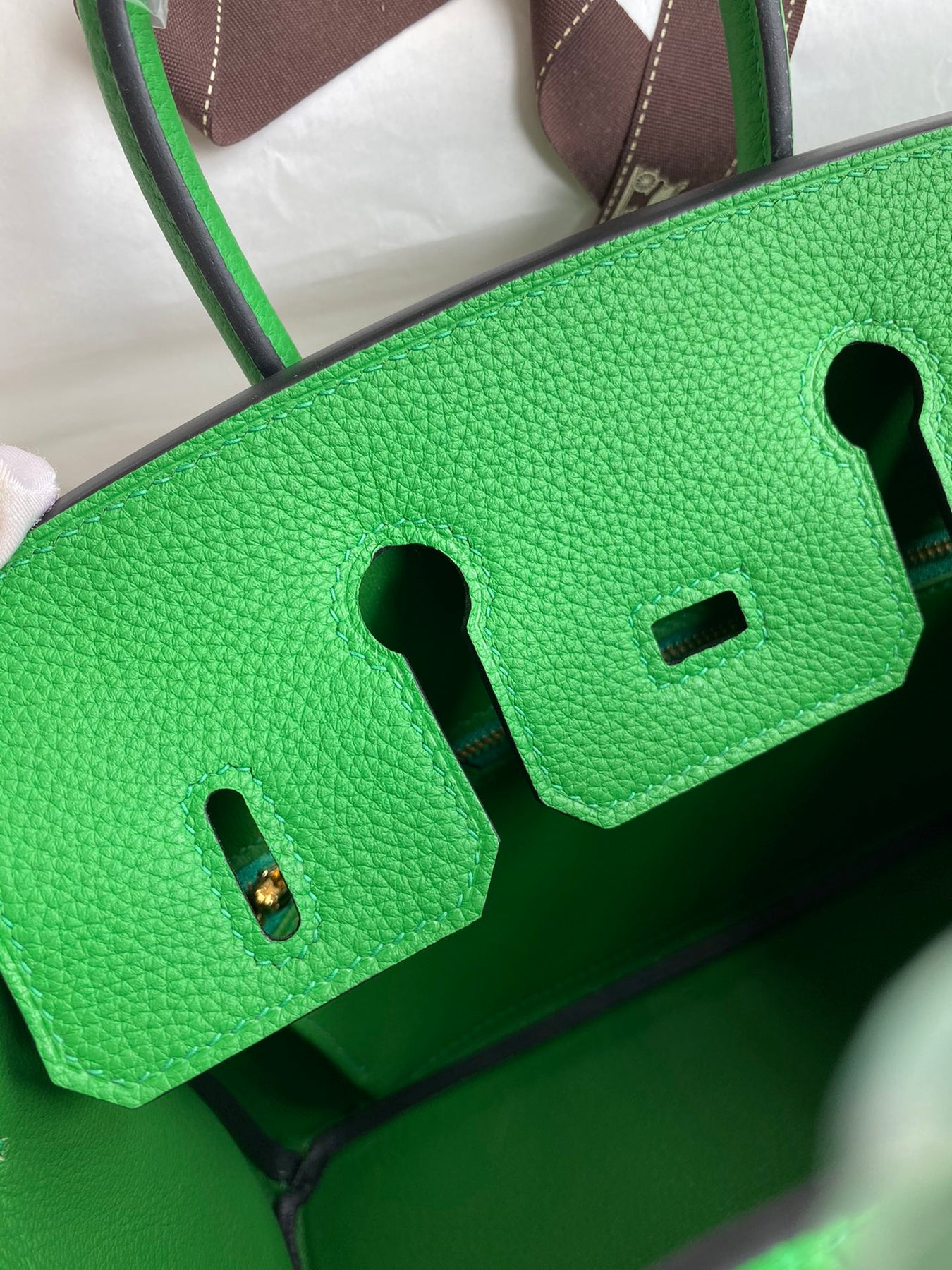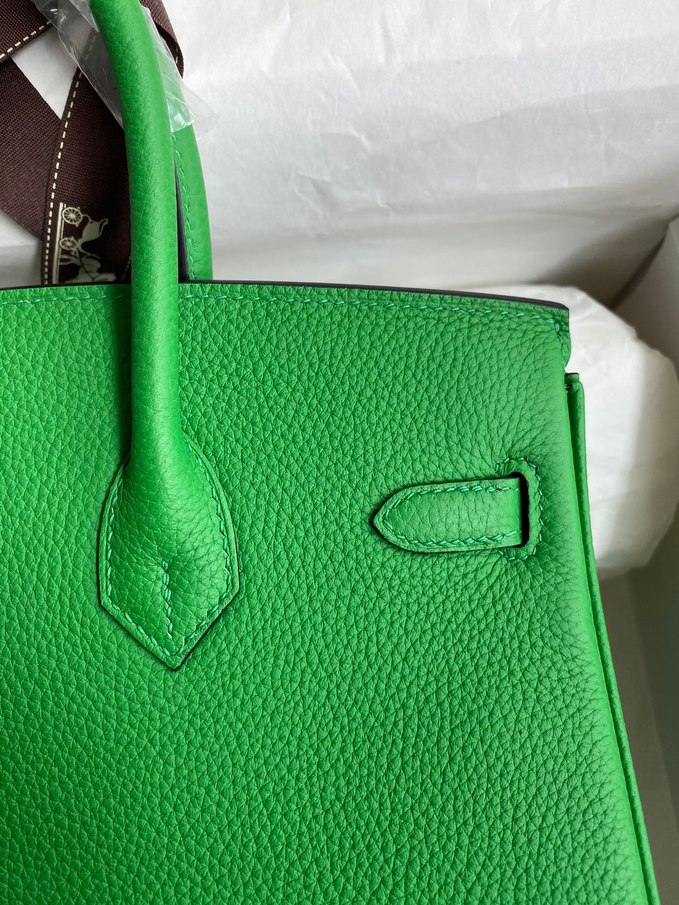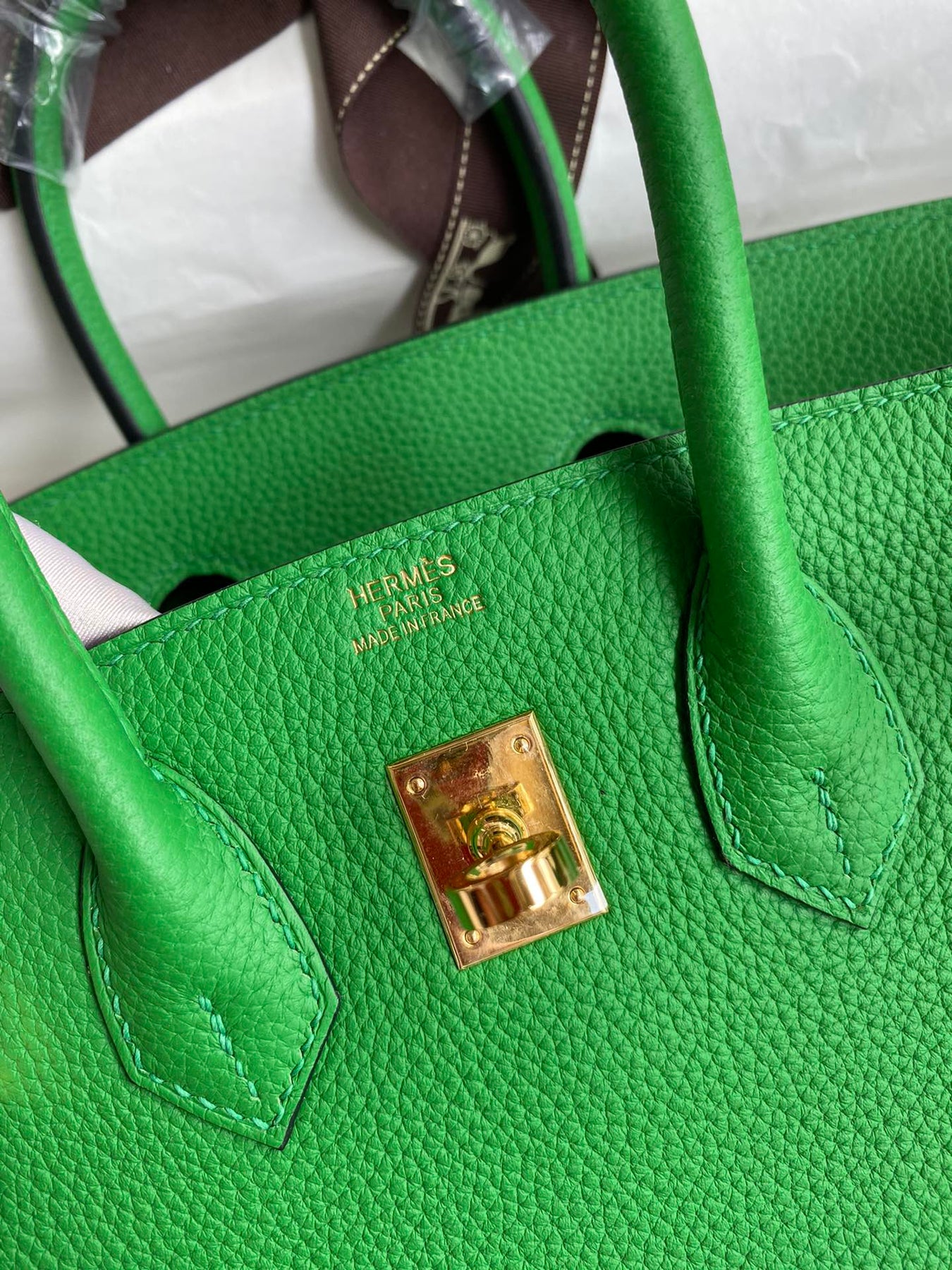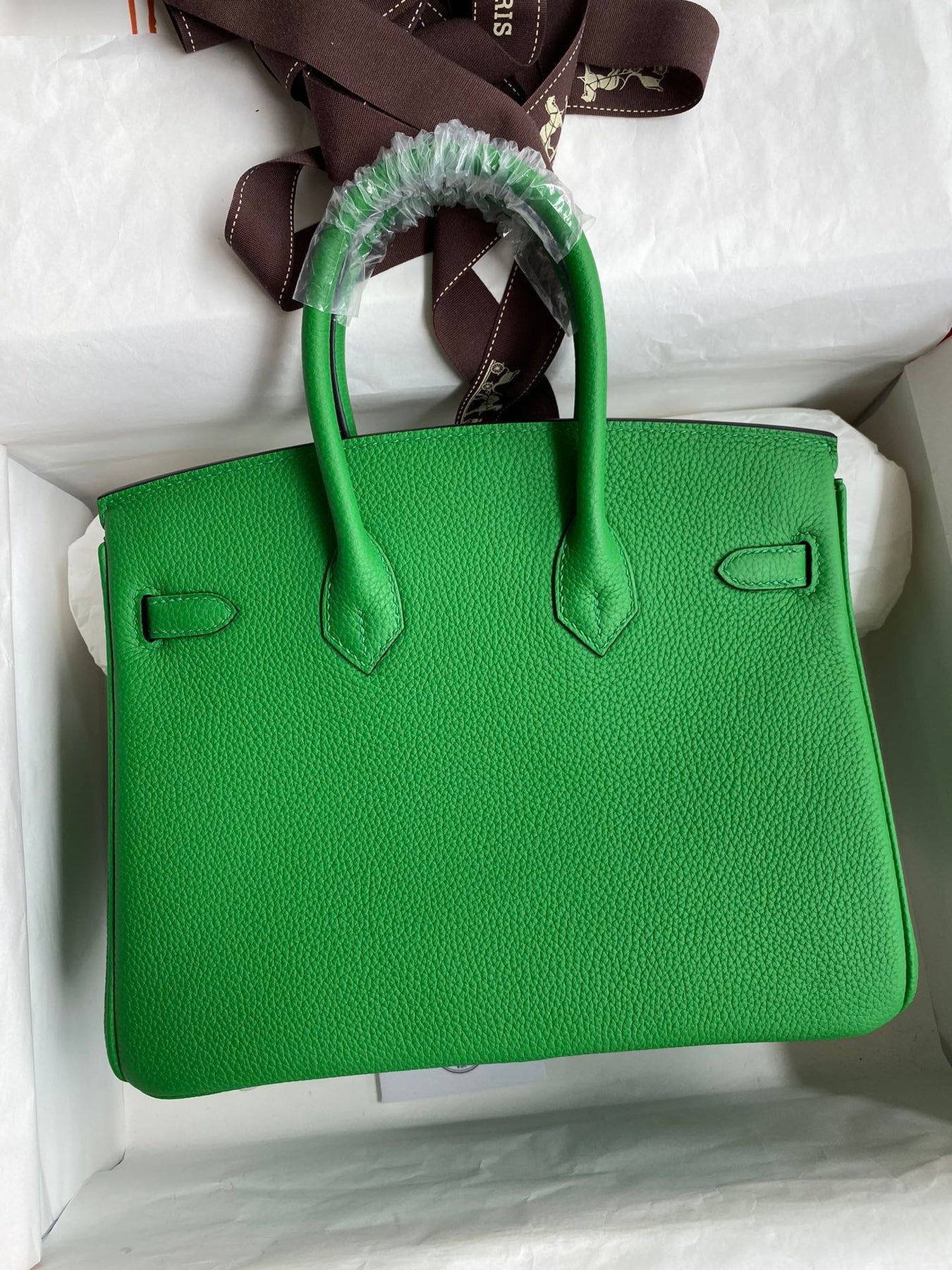 Discover the elegance of our handcrafted Birkin 25cm, meticulously created using semi-handmade beeswax stitching and imported Togo leather in a stunning bamboo green hue. This luxurious handbag features a chic gold buckle and wax thread detailing, making it a timeless addition to your collection. Elevate your style with a blend of sophistication and craftsmanship. Perfect for any occasion, this Birkin bag is a symbol of refined taste and quality.