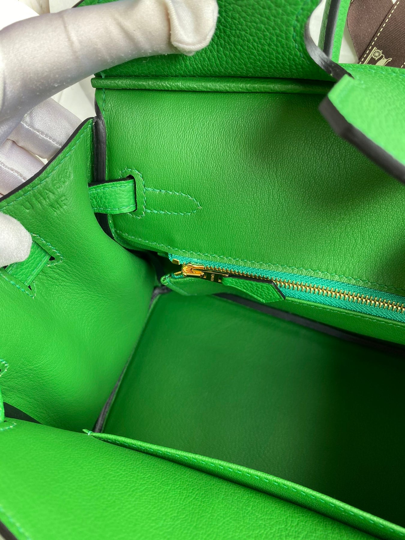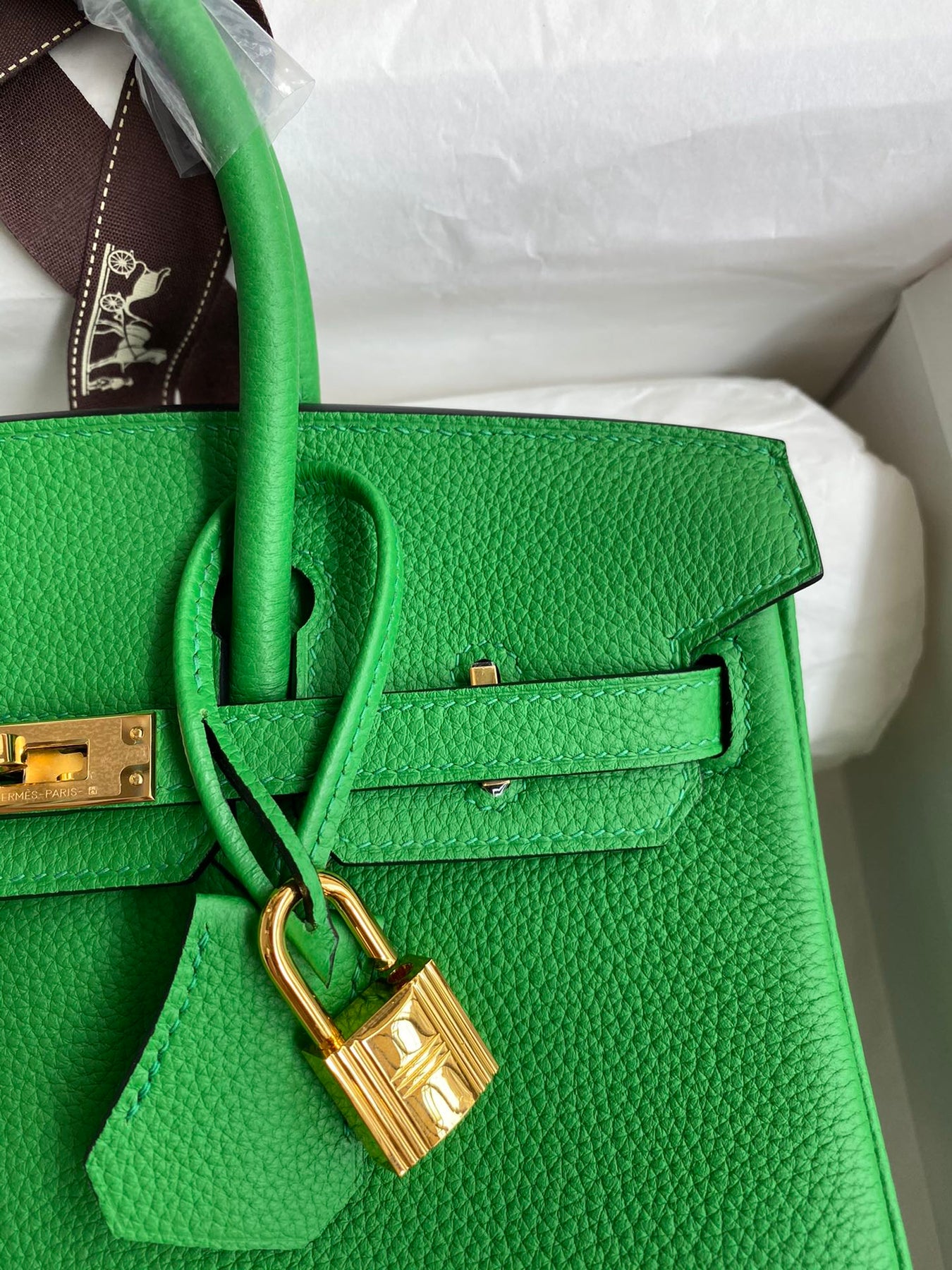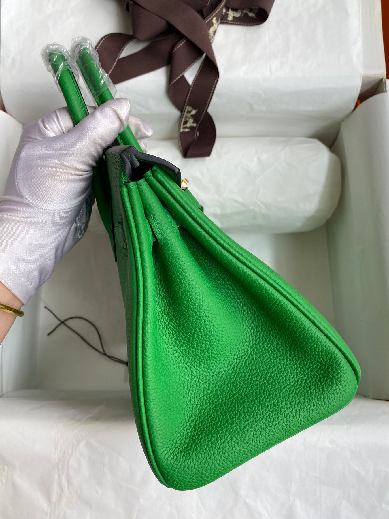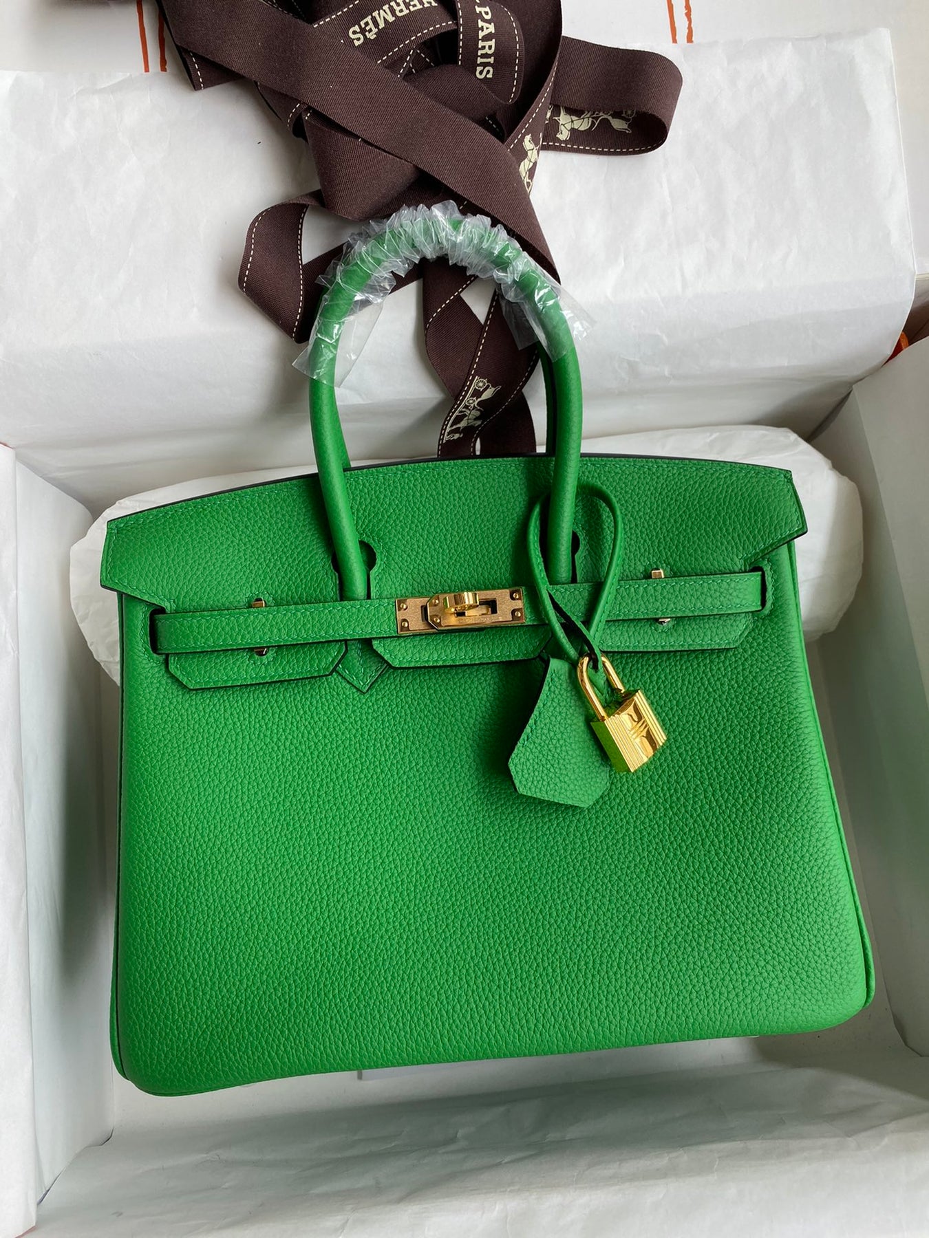 Handcrafted Bamboo Green Birkin 25cm - Togo Leather with Gold Accents