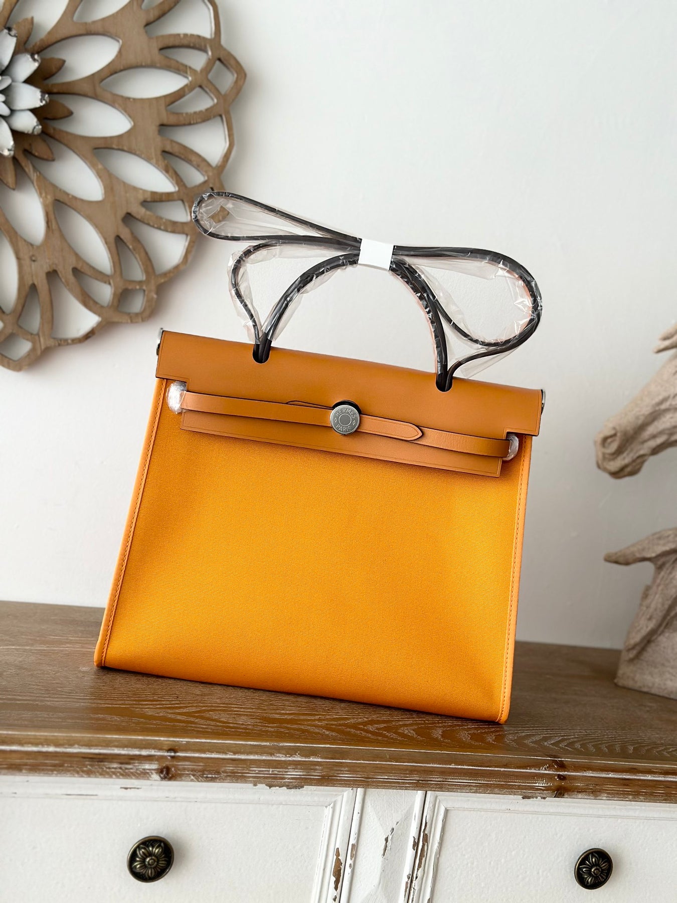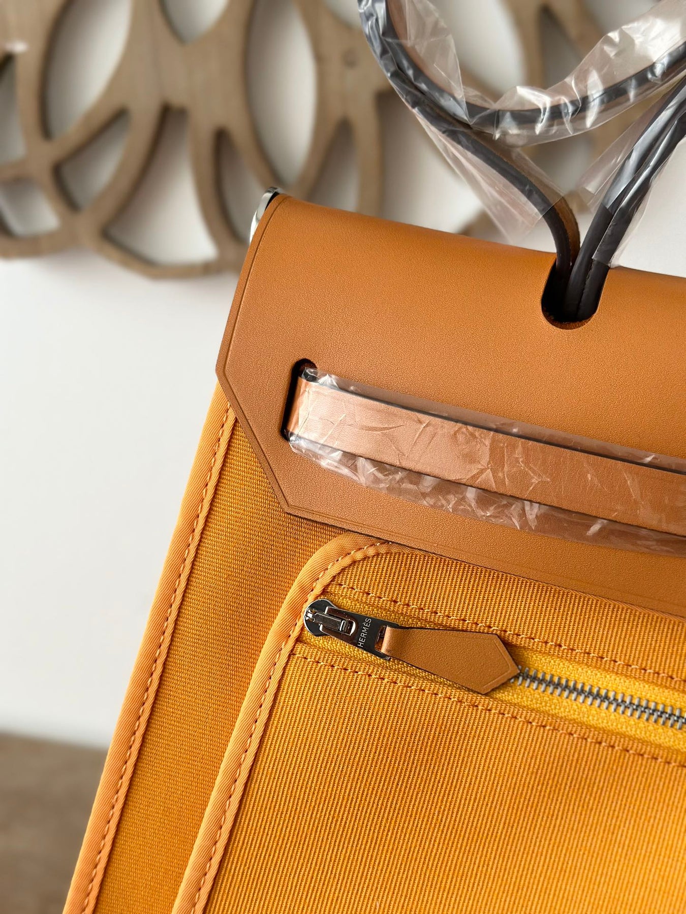 Handcrafted Hermes Herbag 31cm in Ginger Yellow and Medium Brown