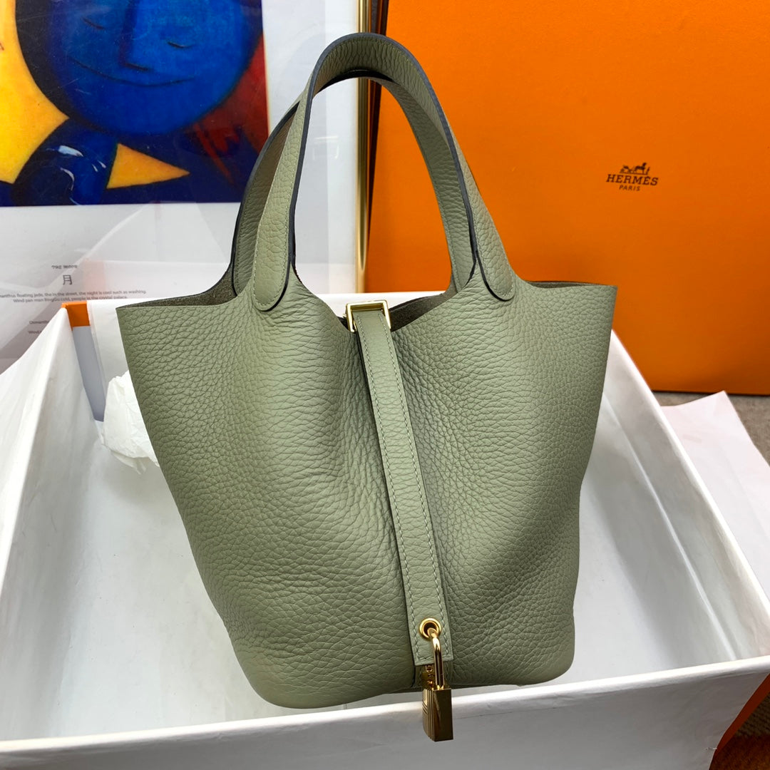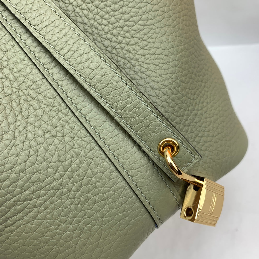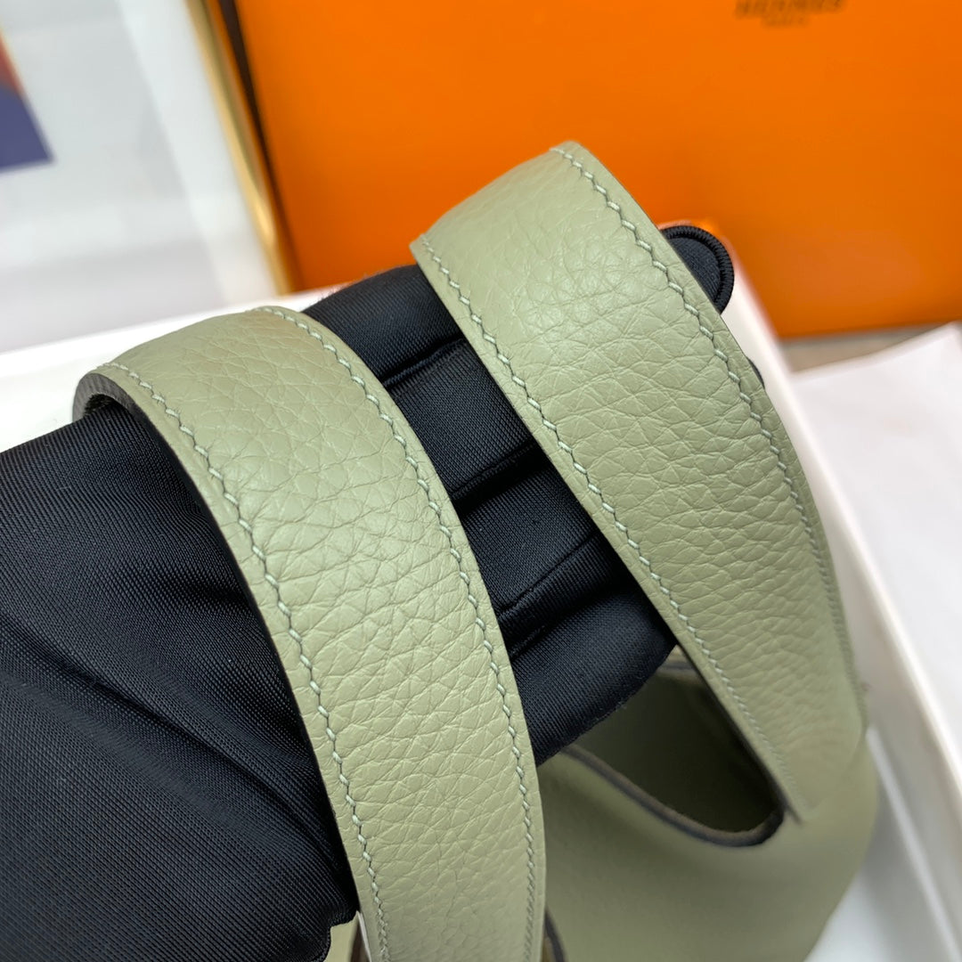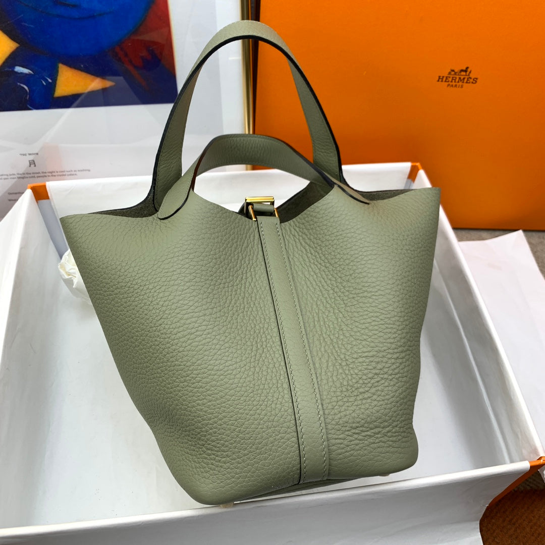 Handcrafted Picotin Lock 18cm Basket - Sage Green with Gold Buckle