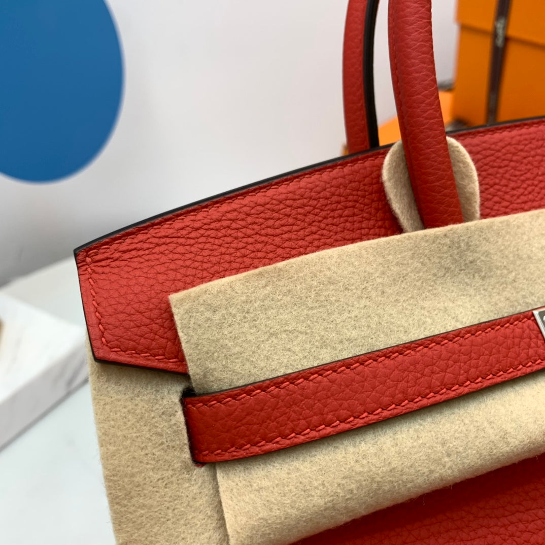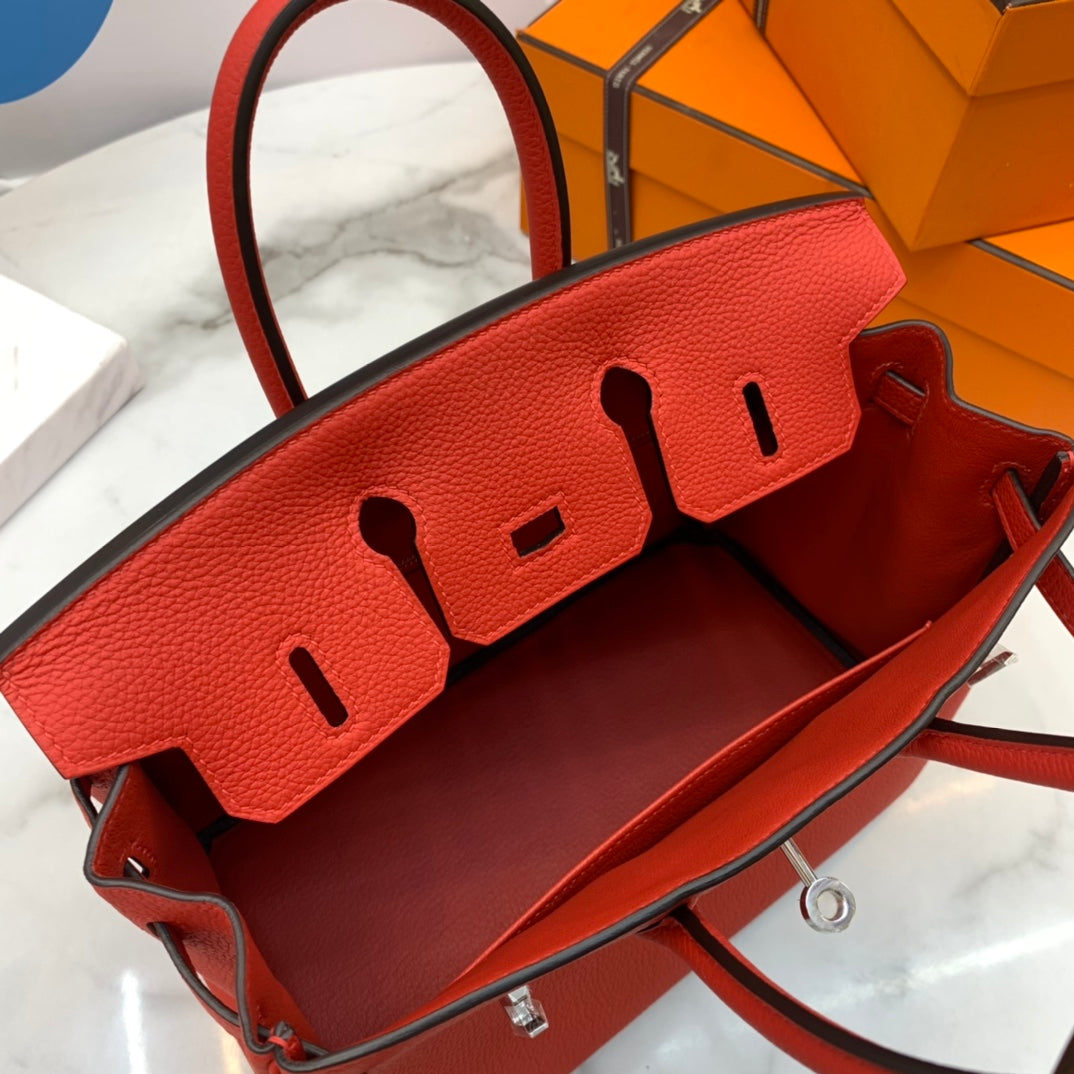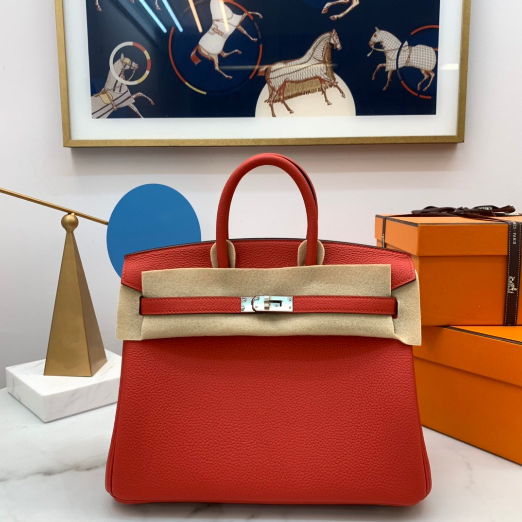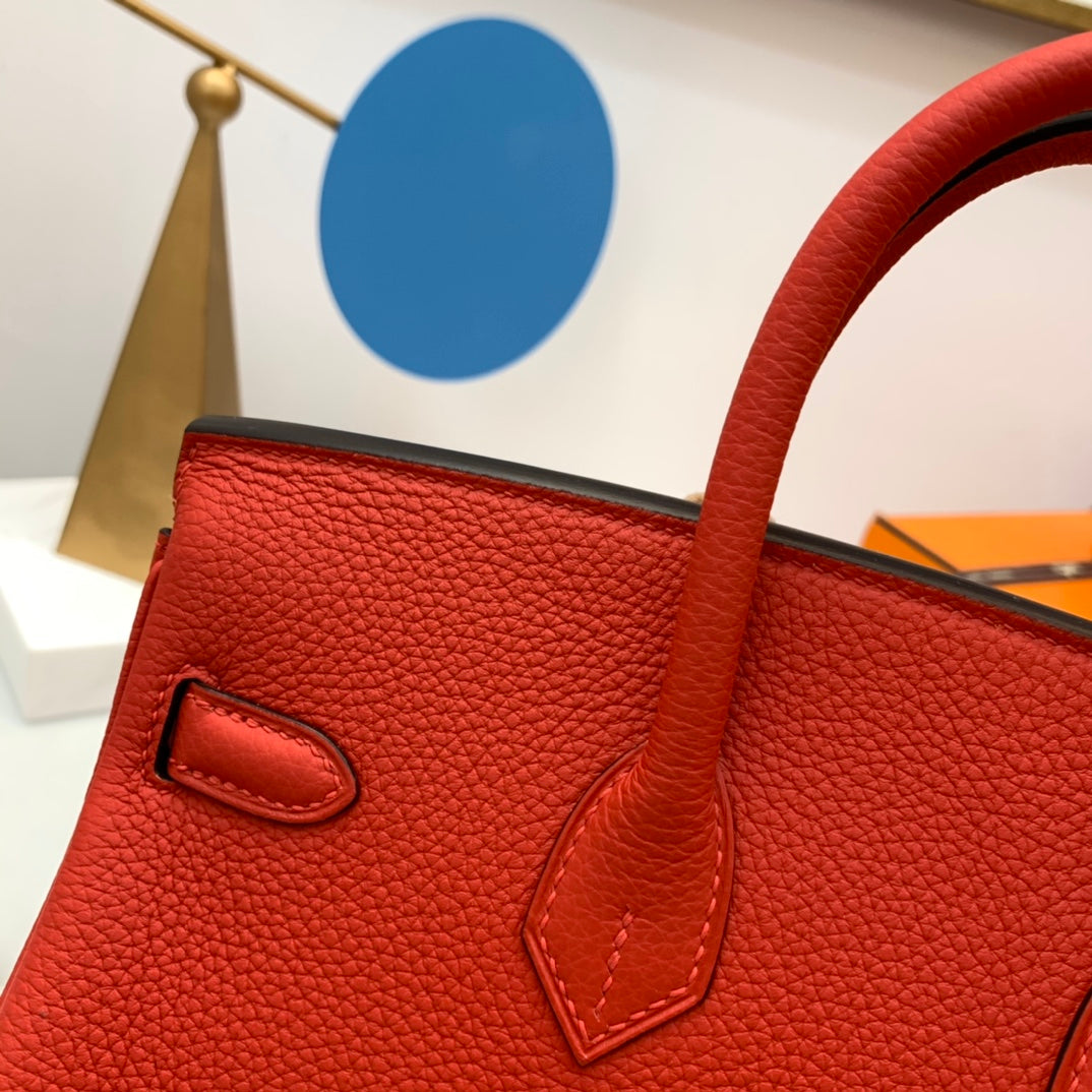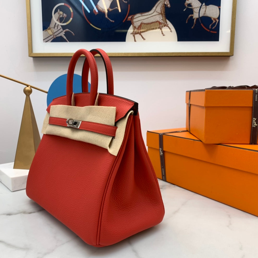 Handmade Birkin 25cm Togo Calfskin Bag with Salmon Red Finish