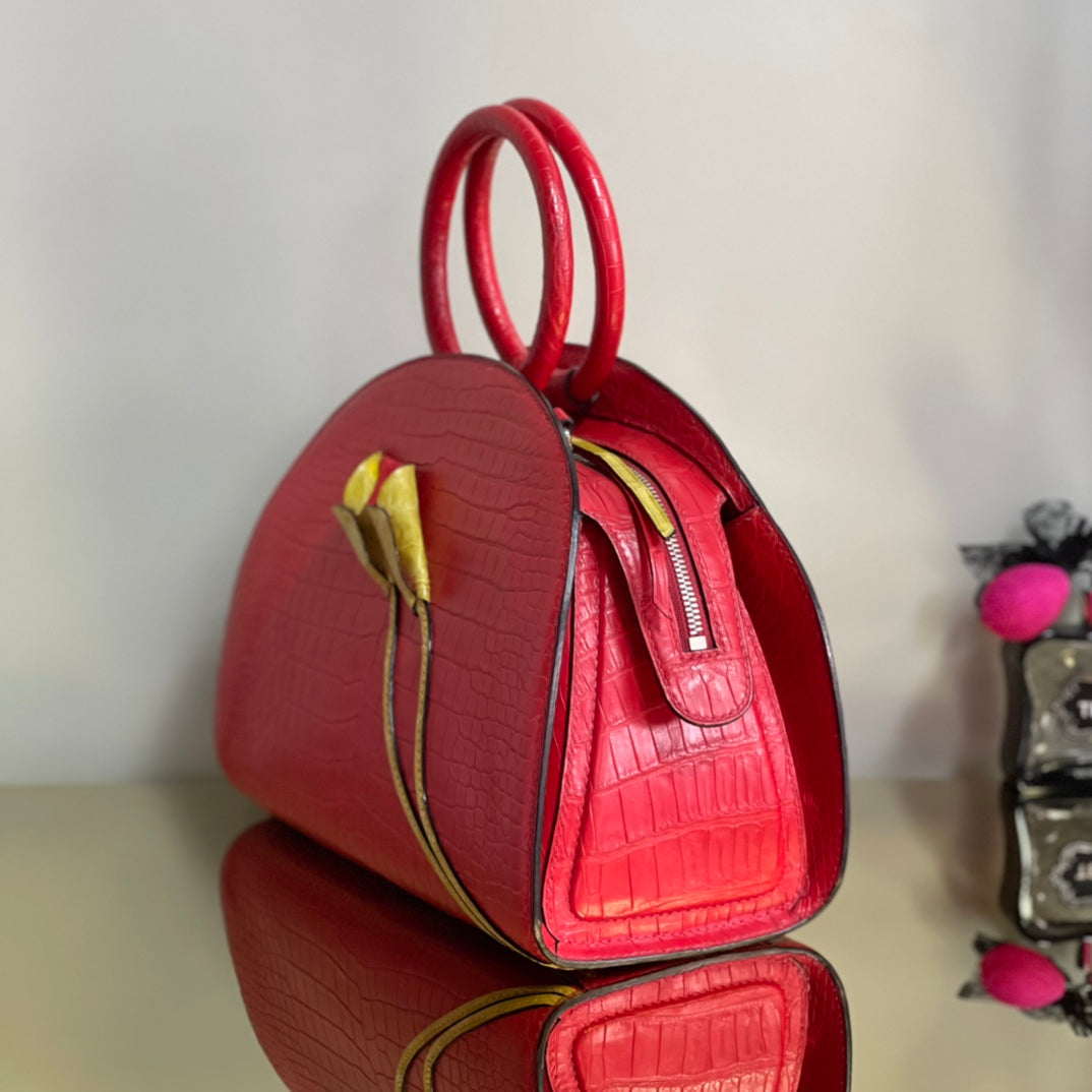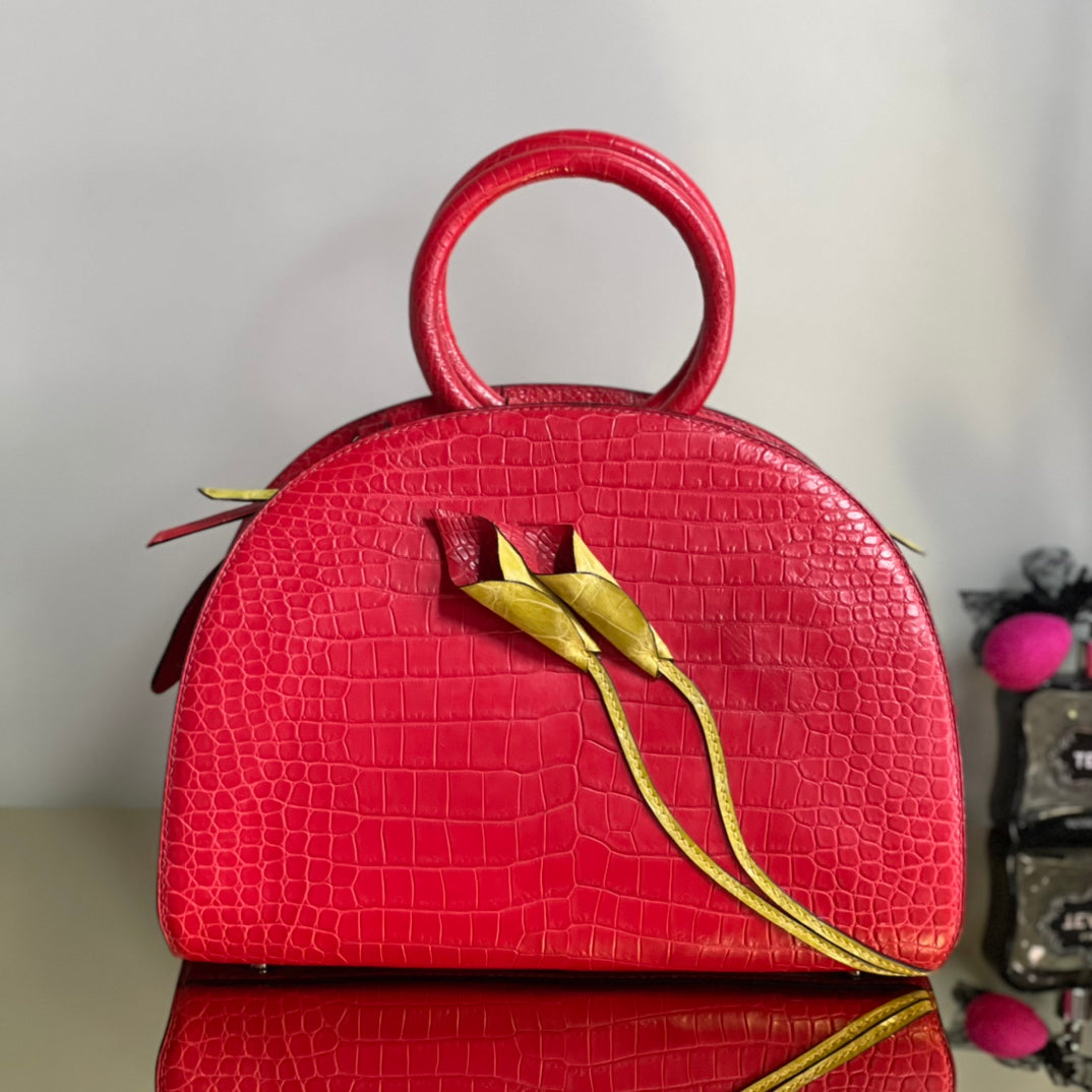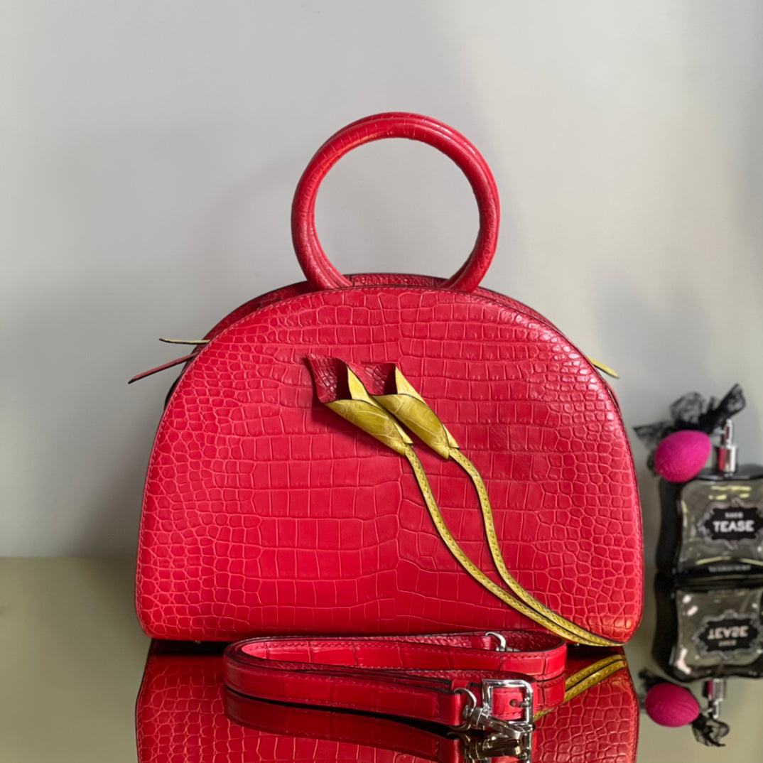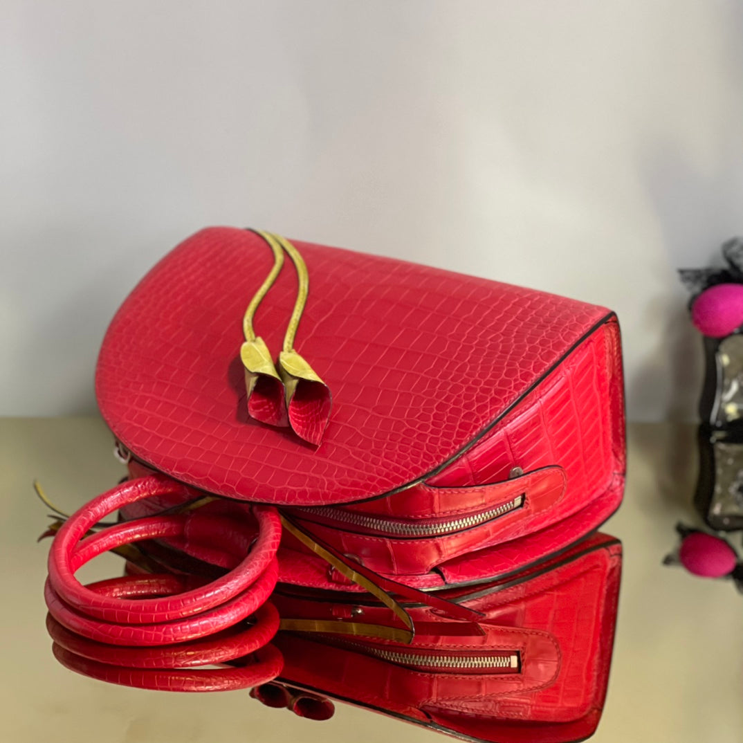 Handmade Crocodile Leather Bag with Cowhide Lining