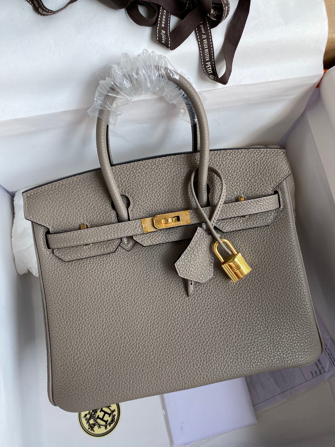 Handmade Leather Birkin 25cm in Asphalt Gray with Gold Accents