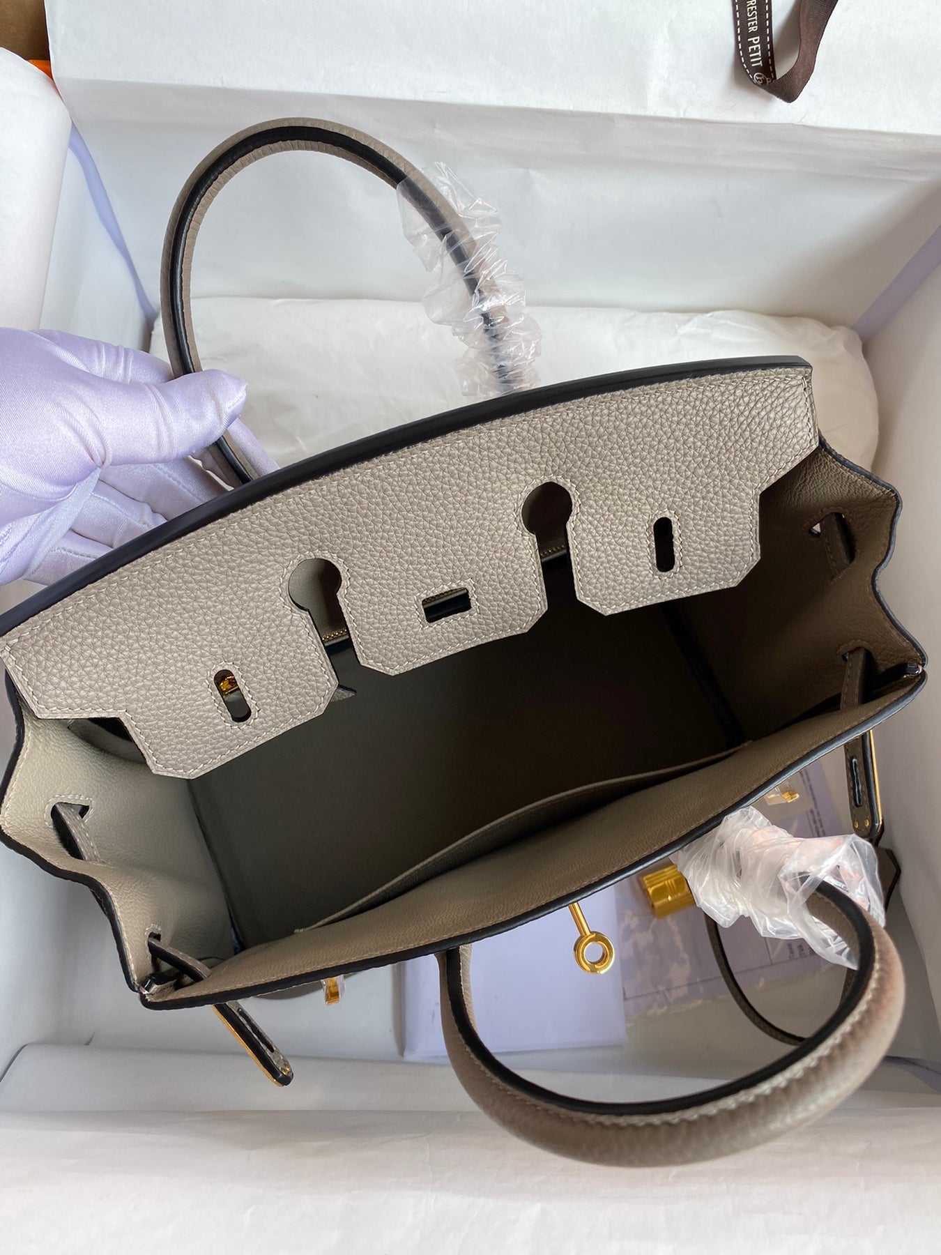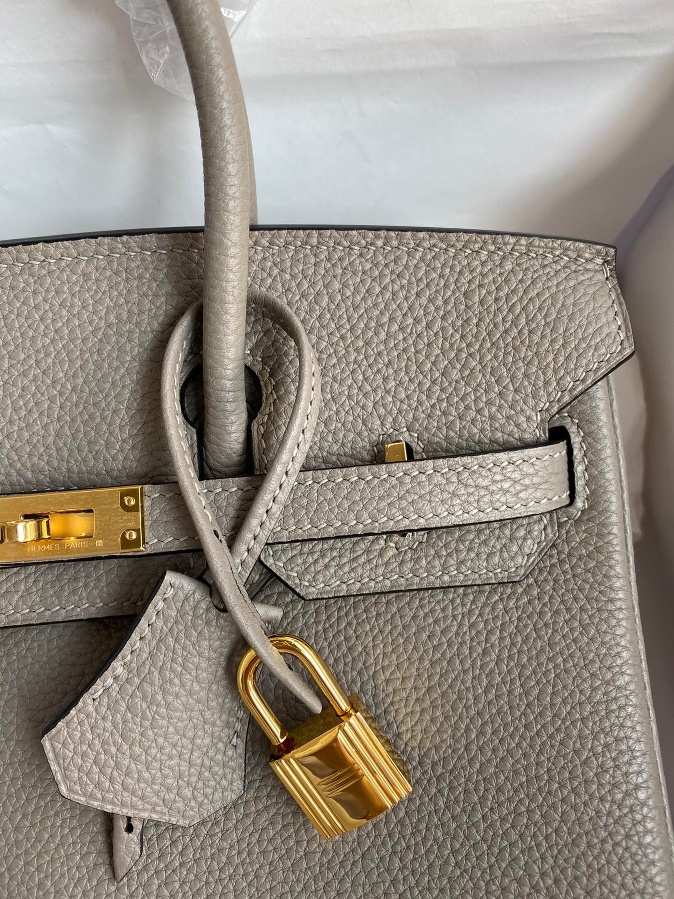 Discover the elegance of our semi-handmade Birkin 25cm bag, crafted from premium imported Togo leather in a sophisticated asphalt gray. This exquisite piece features meticulous beeswax stitching and is adorned with a luxurious gold buckle. Perfect for any occasion, this timeless accessory seamlessly blends style and functionality. Elevate your accessory collection with this original leather masterpiece.