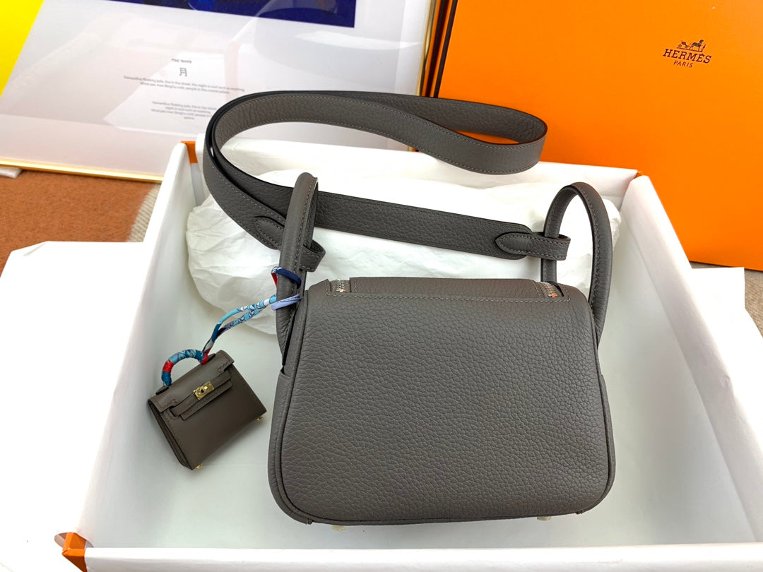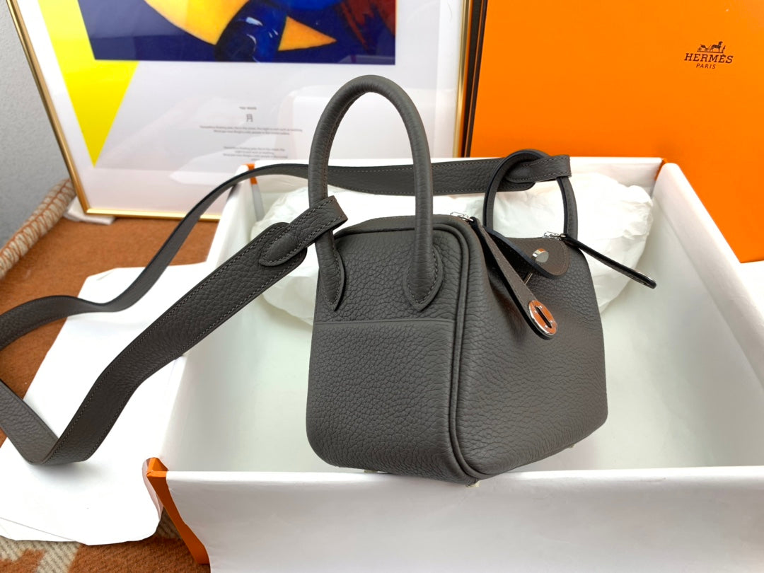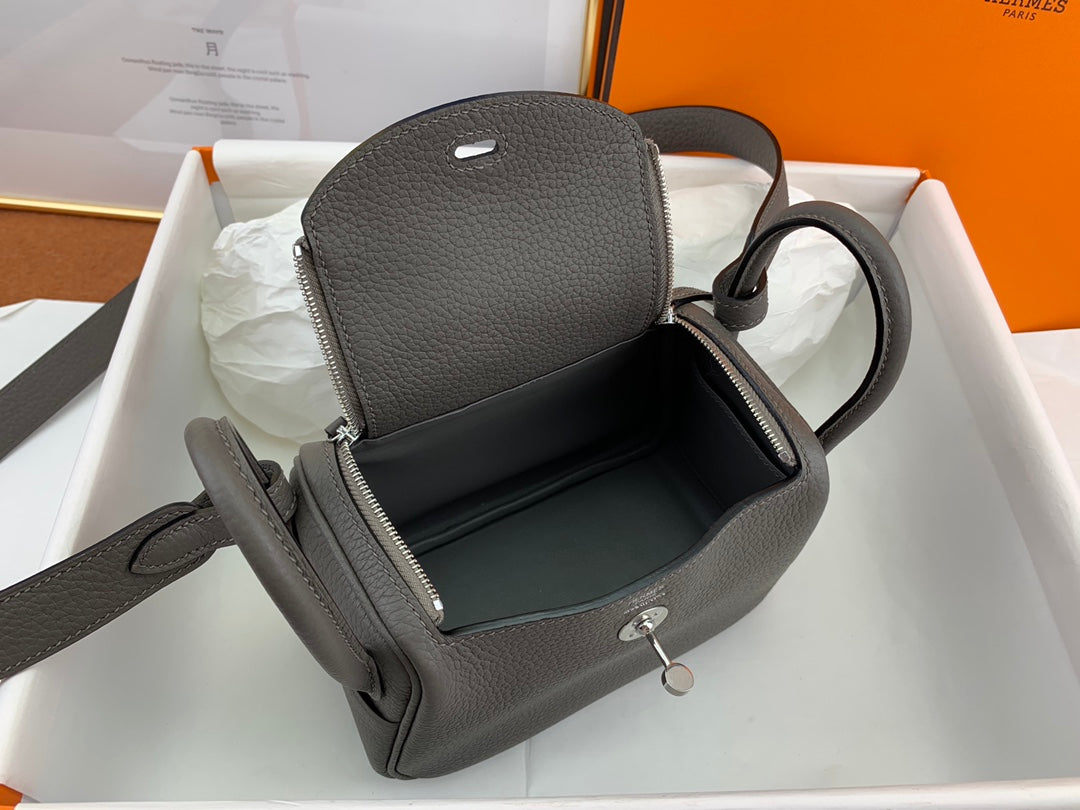 Handmade Mini Leather Bag in Pewter Gray