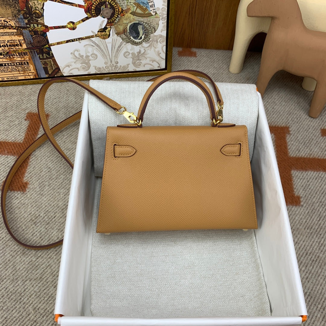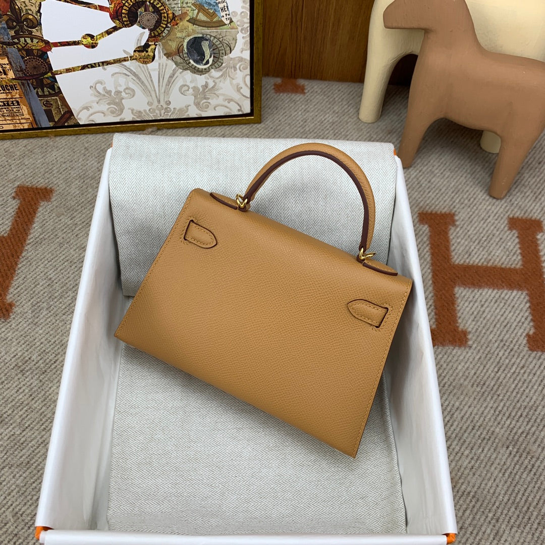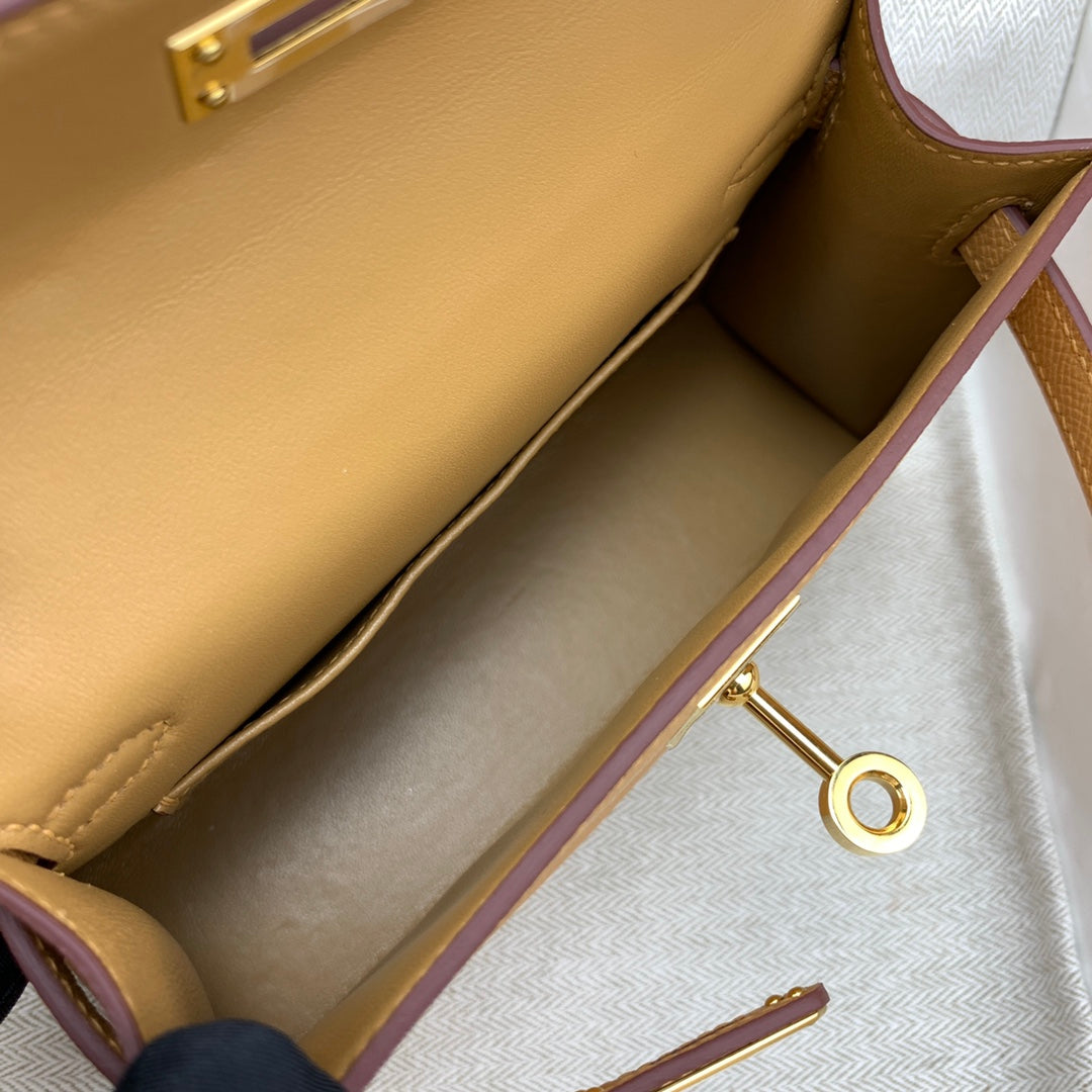 Discover the elegance of the fully handmade Minikelly, now available in stock! This second-generation design features a compact 19cm size crafted from luxurious chevre leather in a sophisticated biscuit color. With its perfect blend of practicality and fashion, this stylish small bag is designed to elevate any outfit, achieving a unique balance of refinement and modern trendiness. Upgrade your accessory collection with this exquisite piece today!