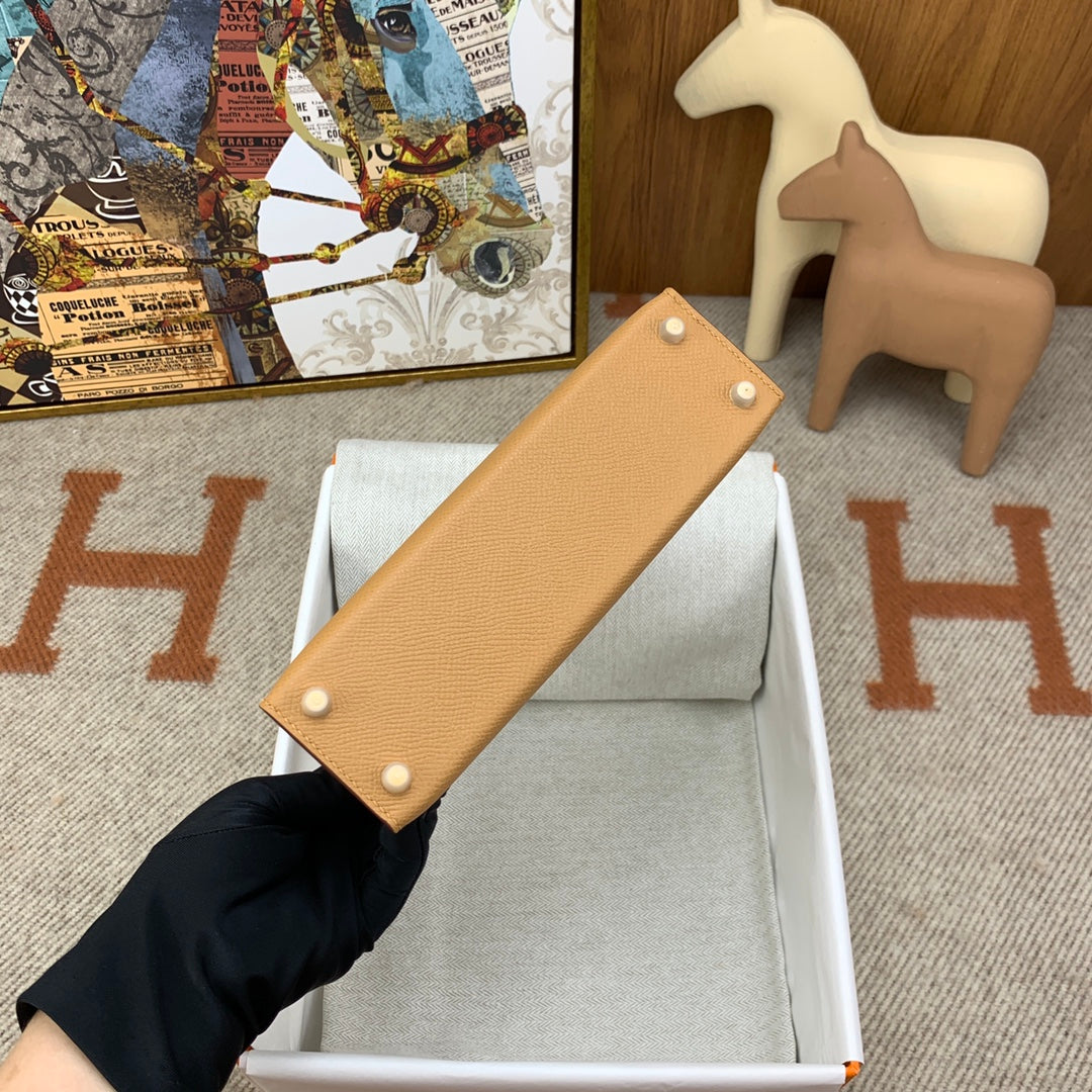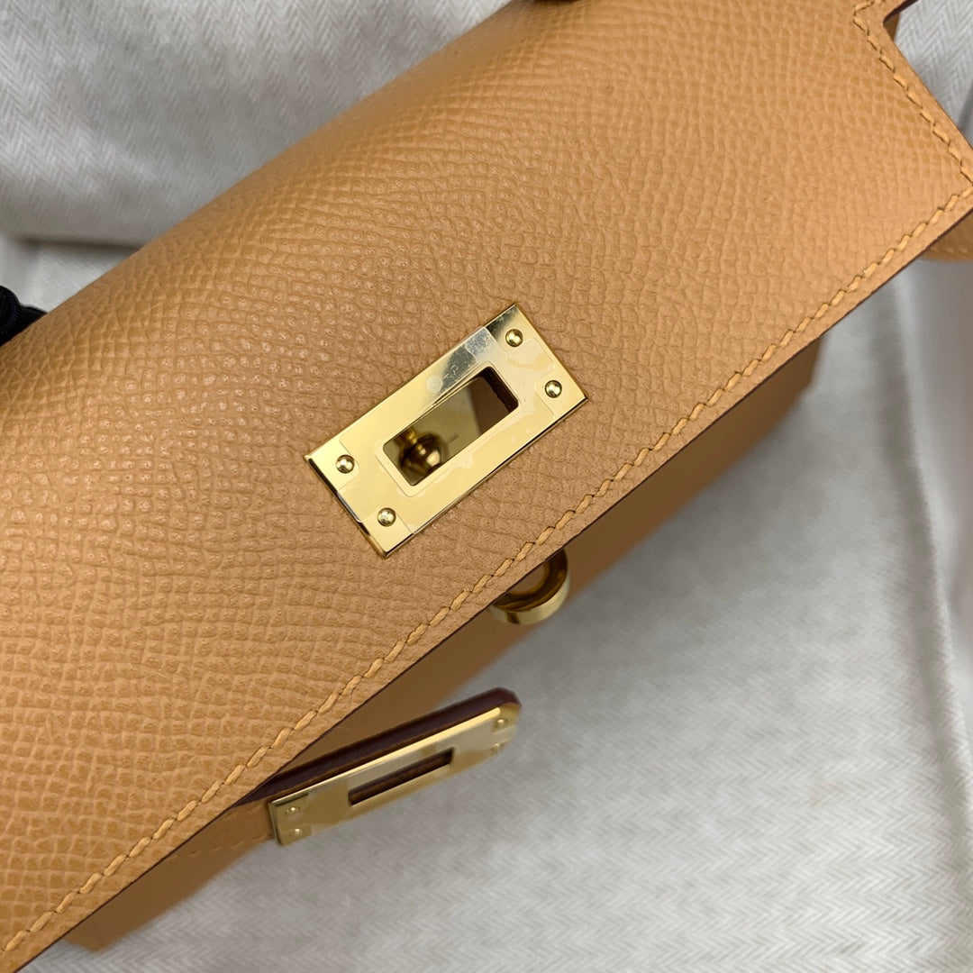 Handmade Minikelly 19cm - Second Generation Chevre Leather in Biscuit Color