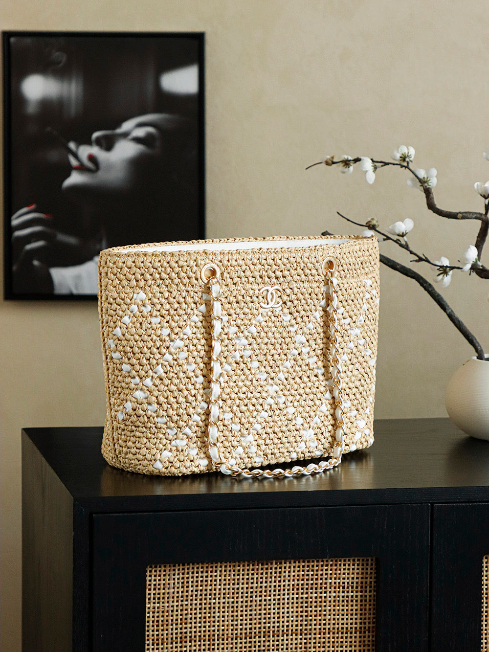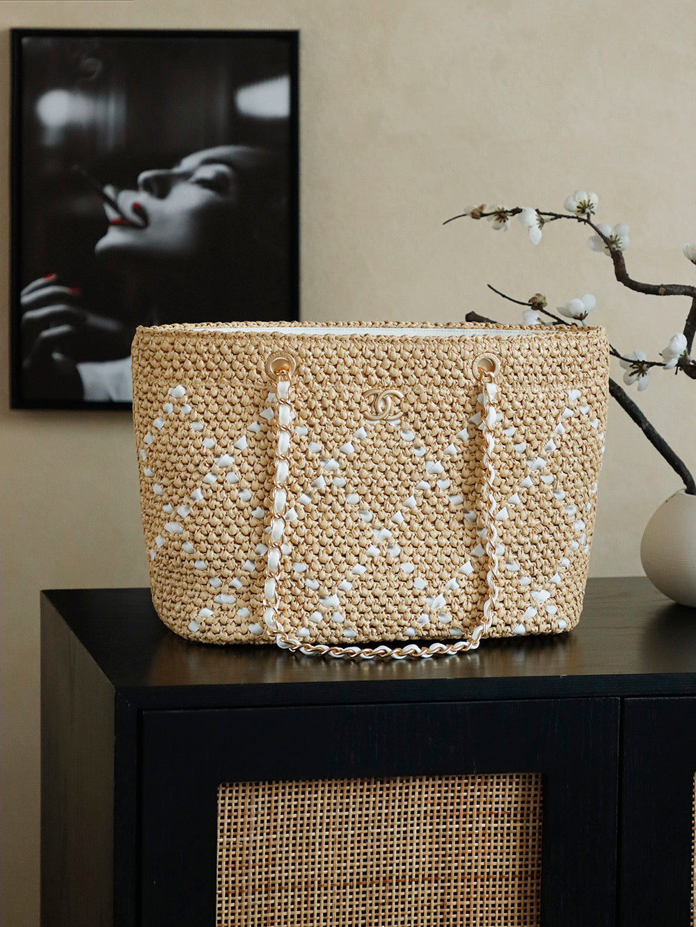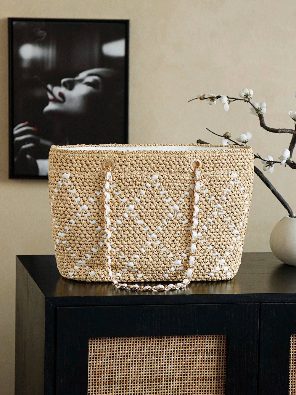Handwoven Raffia and Rattan Shopping Bag - Spring Vacation Essential