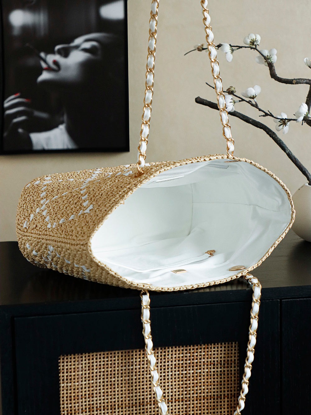 Elevate your spring vacation style with our Handwoven Raffia and Rattan Shopping Bag, available in vibrant colors including a chic large apricot white option. Perfect for summer outings, these bags effortlessly blend functionality with fashion.