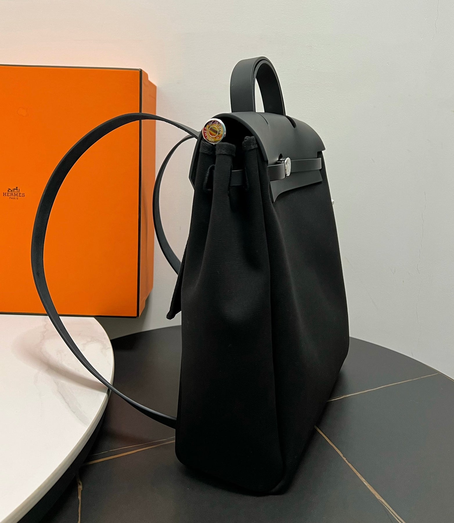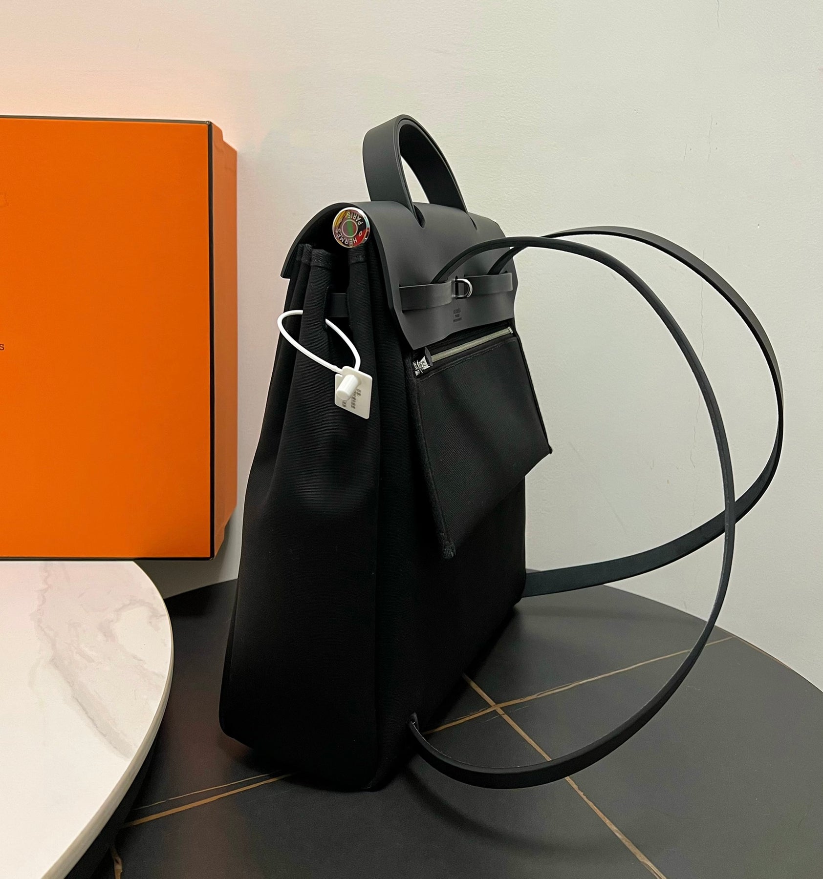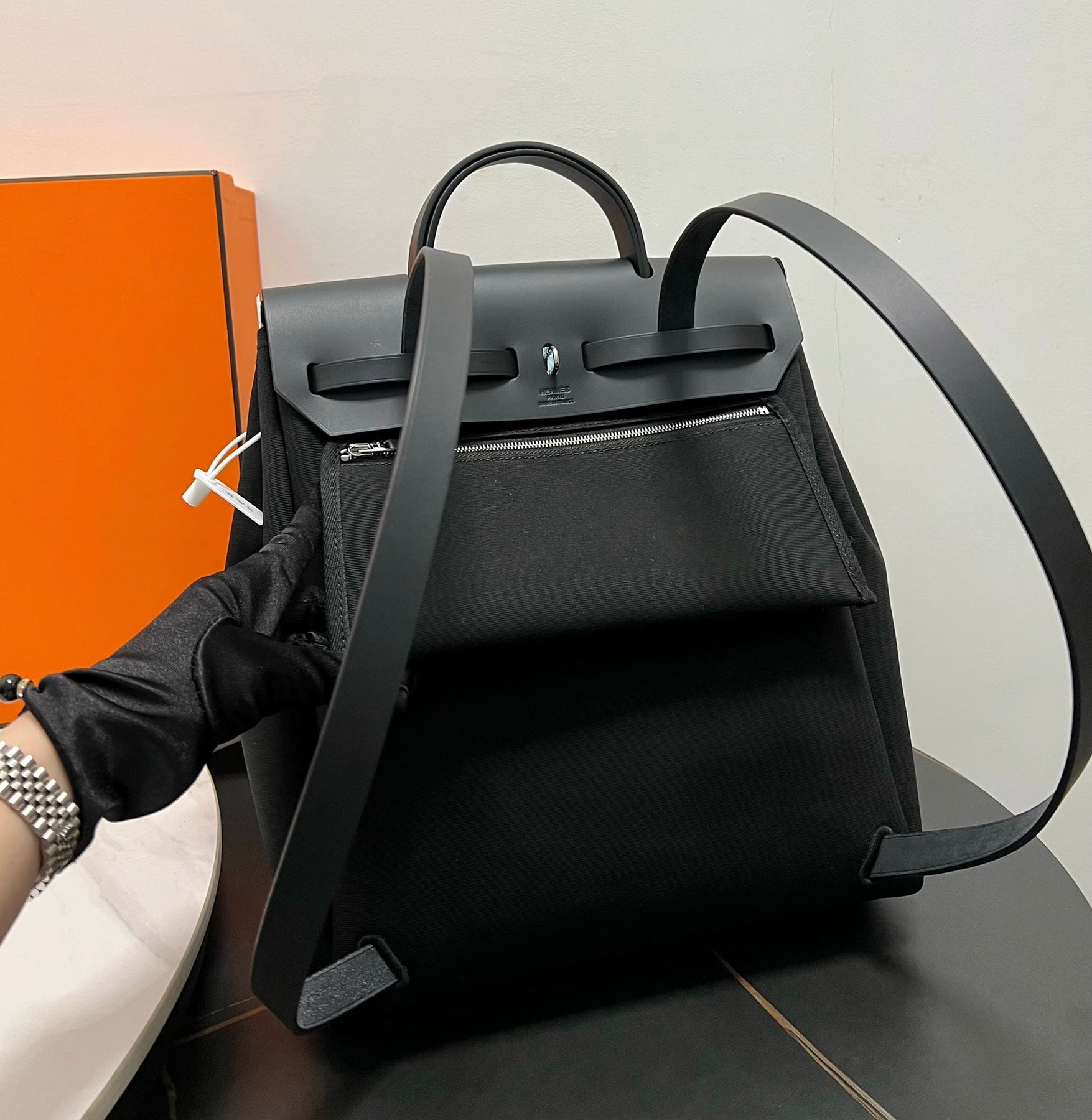 Introducing the HERBAG A DOS backpack series in elegant pure black. This versatile backpack reimagines a classic design, offering both practicality and style. Crafted semi-handmade with beeswax stitching, it transitions effortlessly from a chic handbag for everyday use to a spacious backpack perfect for business trips or travel. Featuring a convenient inner bag with a shoulder strap, you can easily switch between carrying styles to suit your needs. Dimensions: 31x35x10 cm. Elevate your accessory game with this timeless and functional piece.