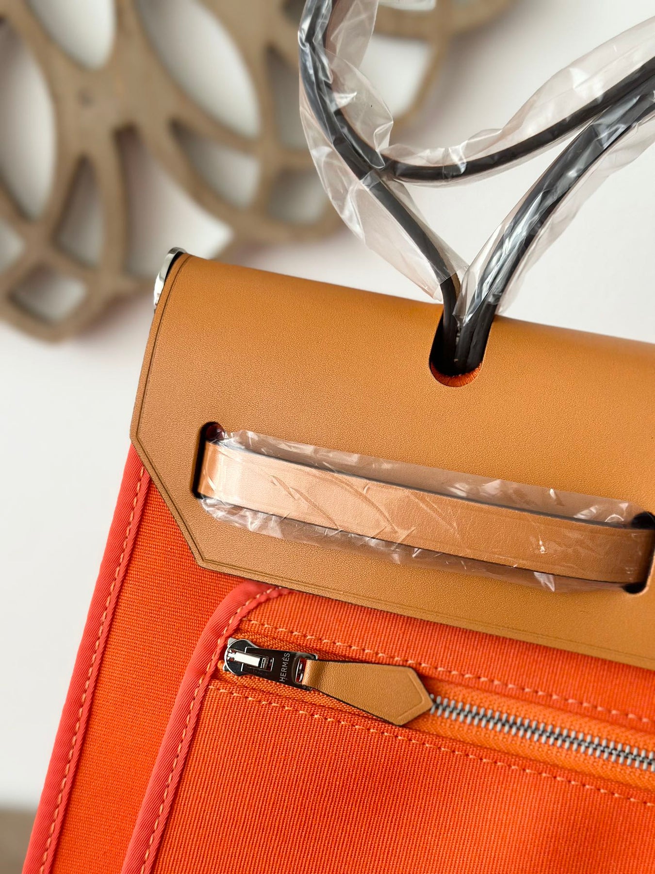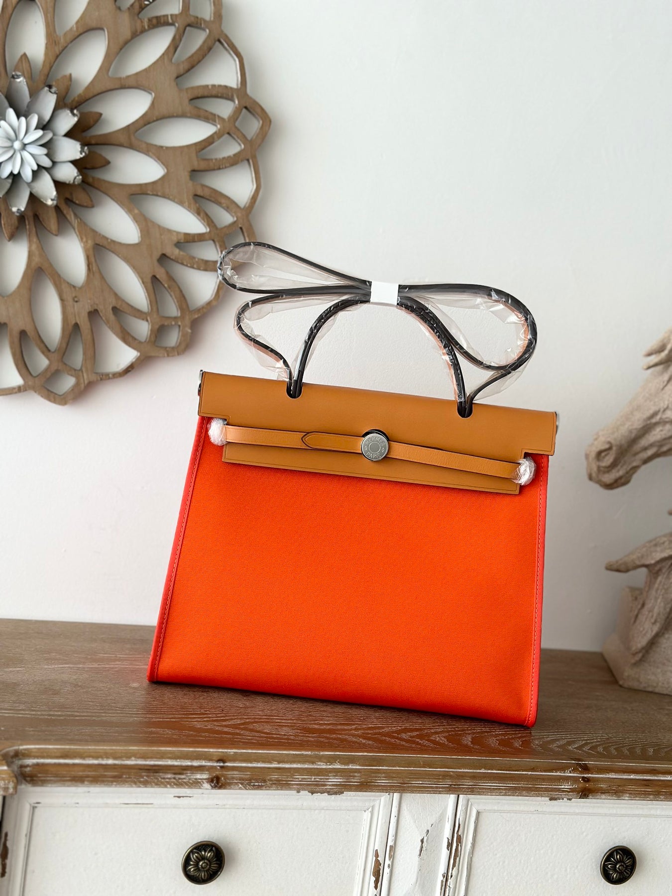 Hermès Herbag 31cm - Handcrafted Orange & Medium Brown Leather Tote