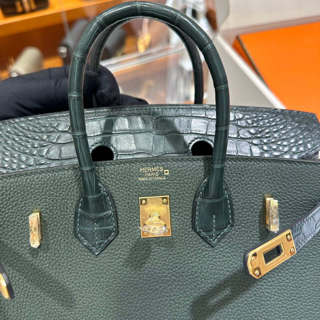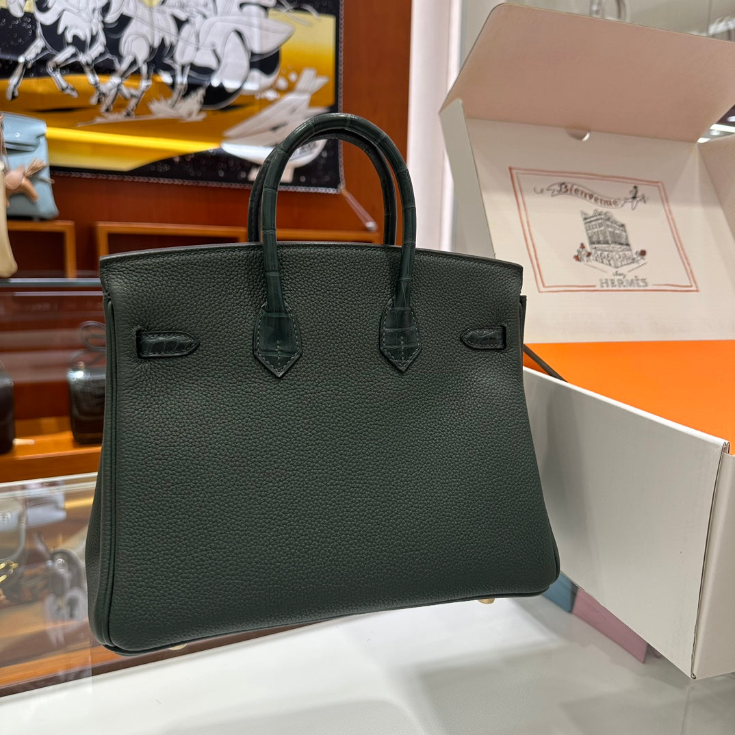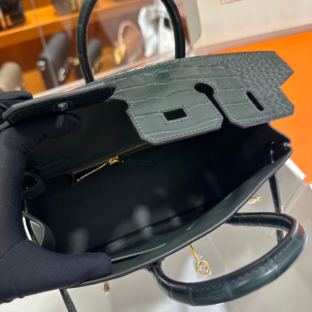 Hermes Birkin Cypress Green Touch 25 Crocodile Handbag