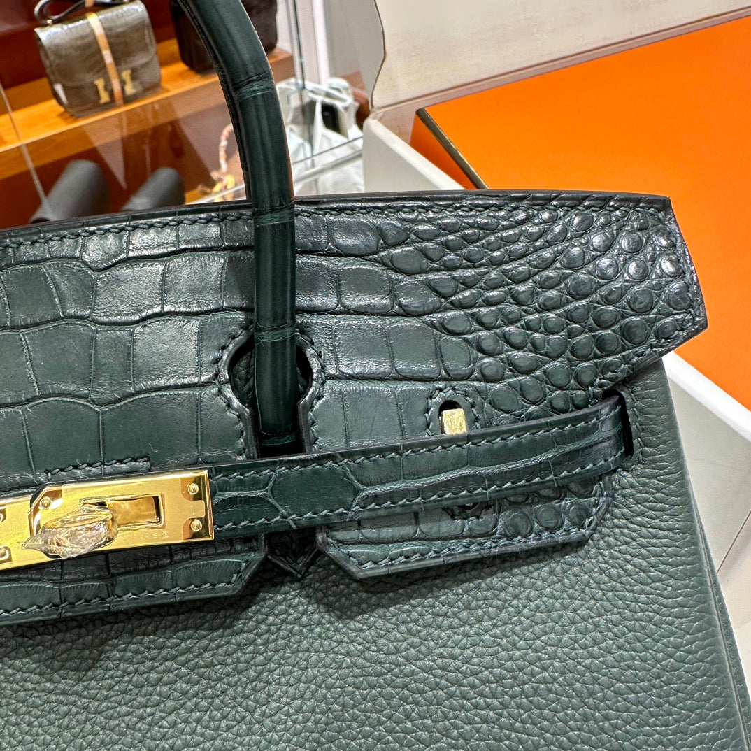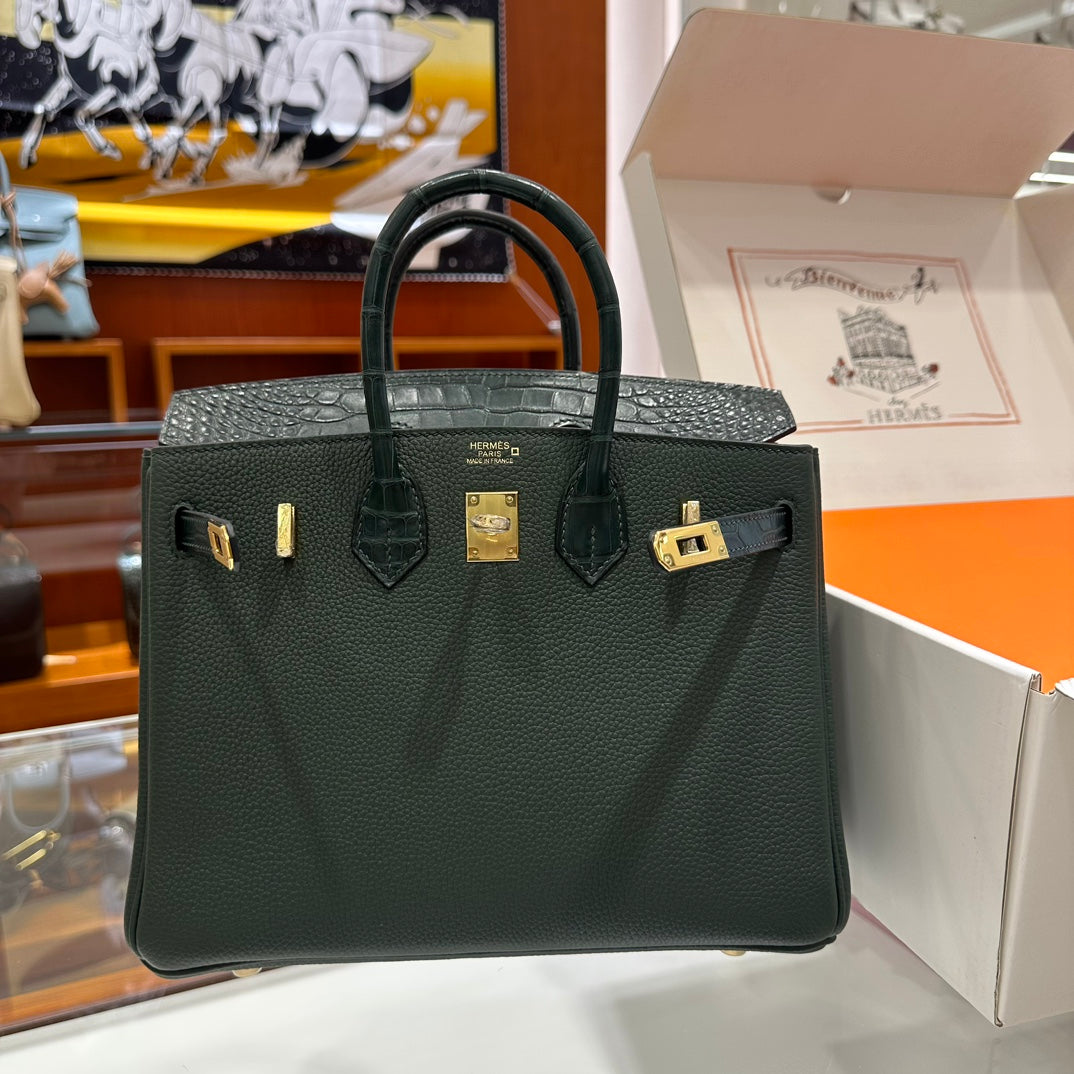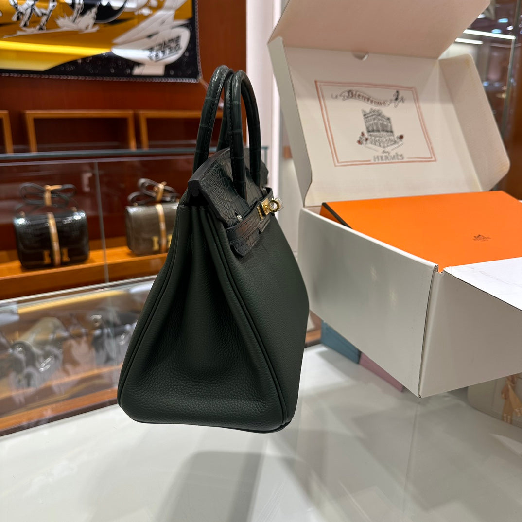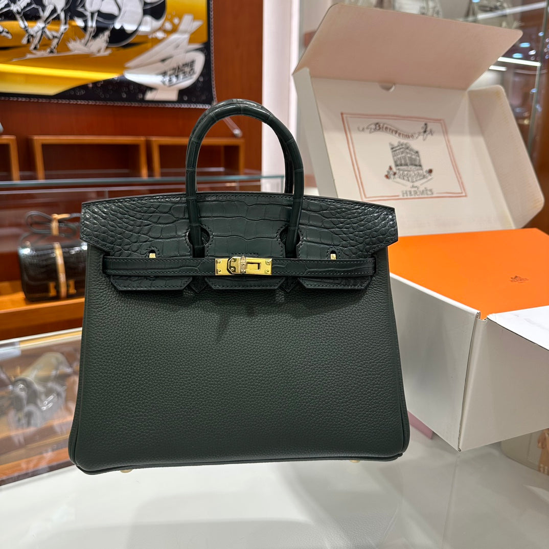 Hermes Birkin Cypress Green Touch 25 Crocodile Handbag