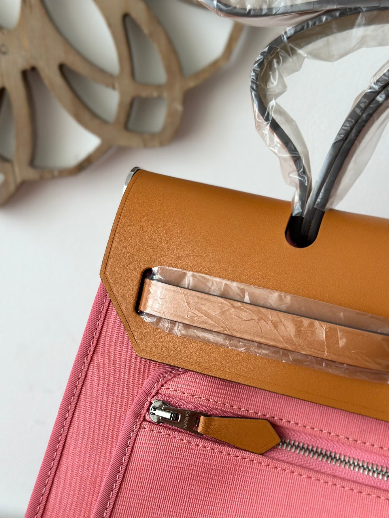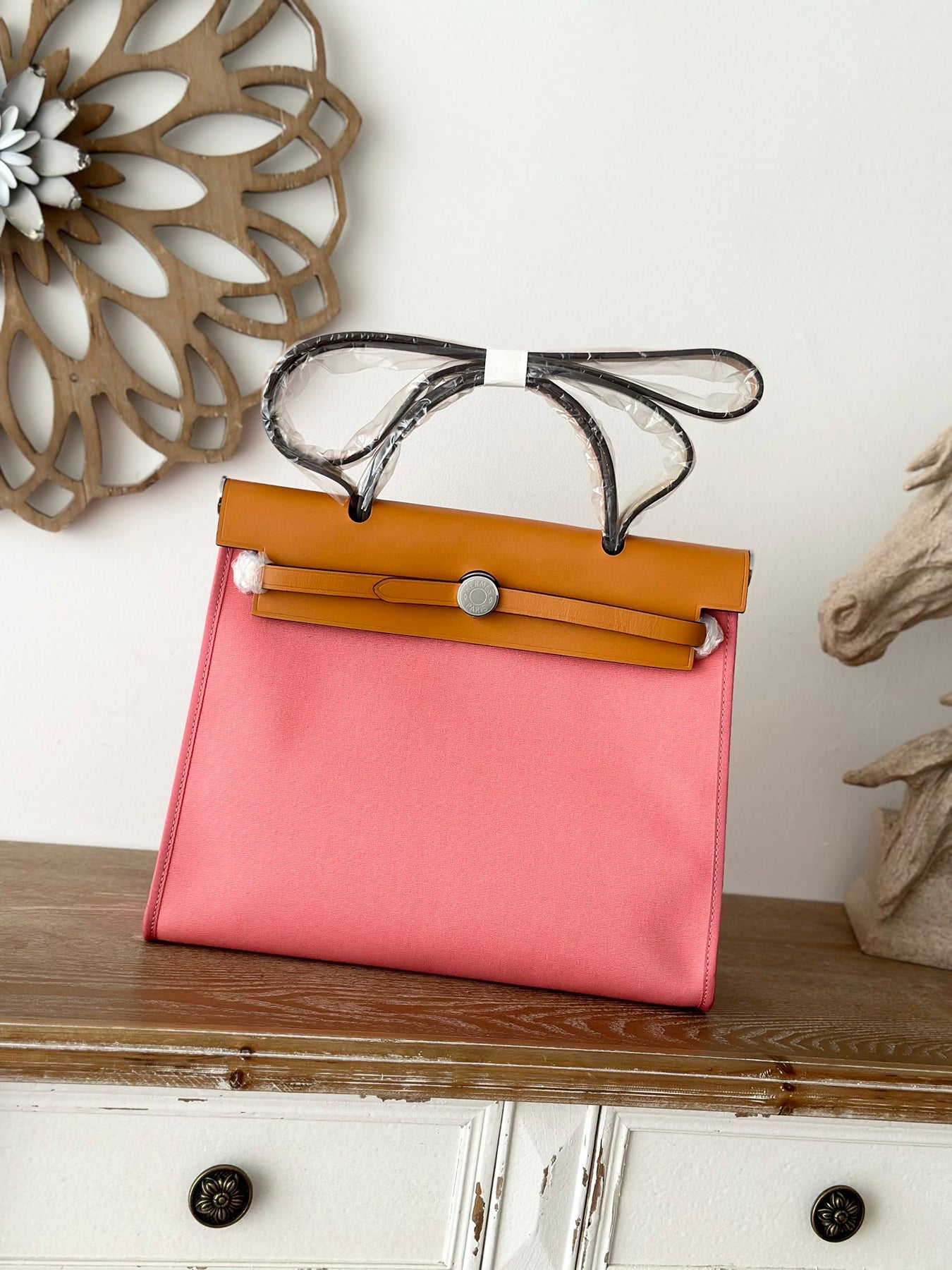Discover the exquisite charm of the Hermes Herbag 31cm in Medium Brown Lipstick Powder, featuring a sleek silver buckle and signature outside seam. This fully handcrafted, upgraded version is a must-have for any fashion enthusiast. Made from the finest imported leather, this bag embodies luxury and durability, offering unbeatable quality compared to any competitor.