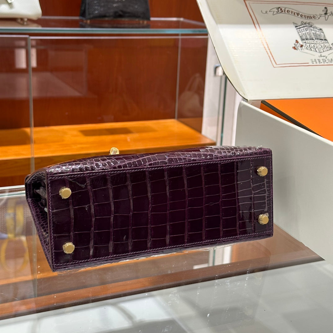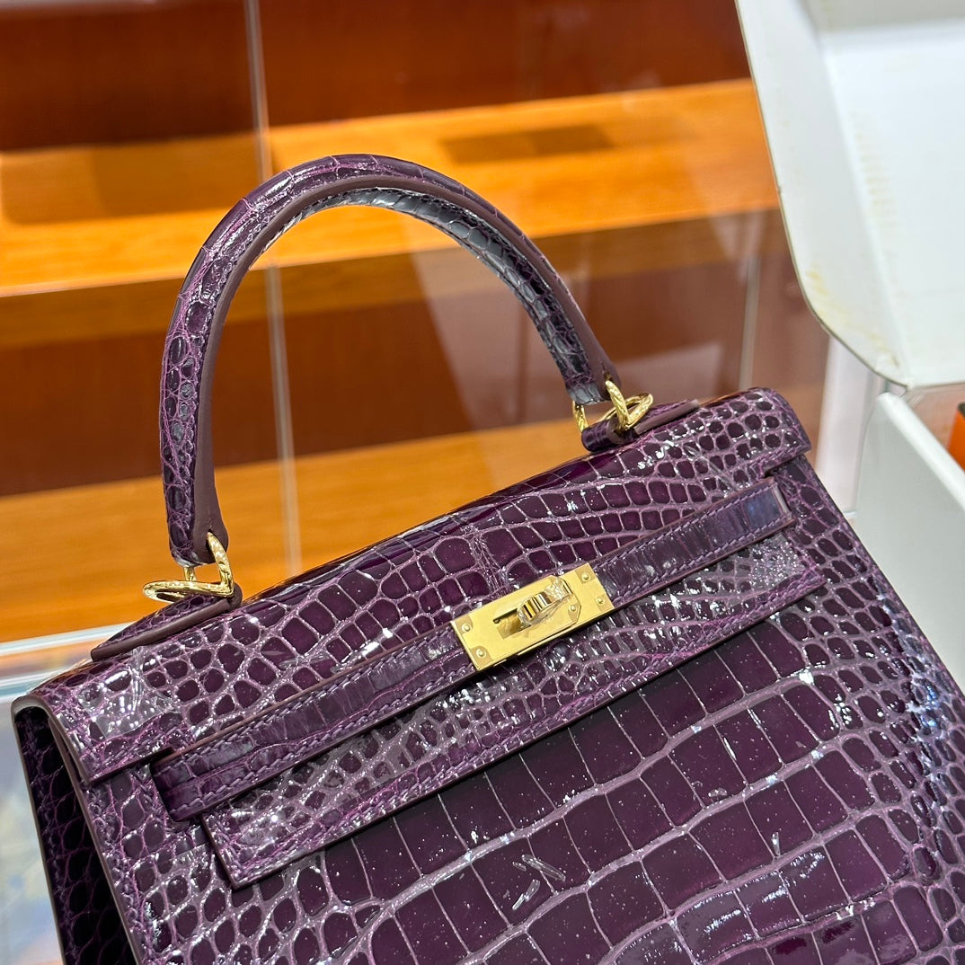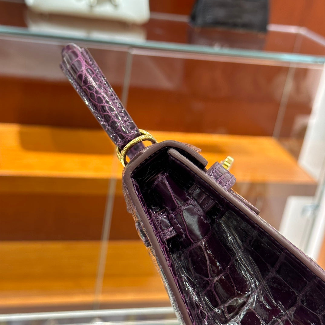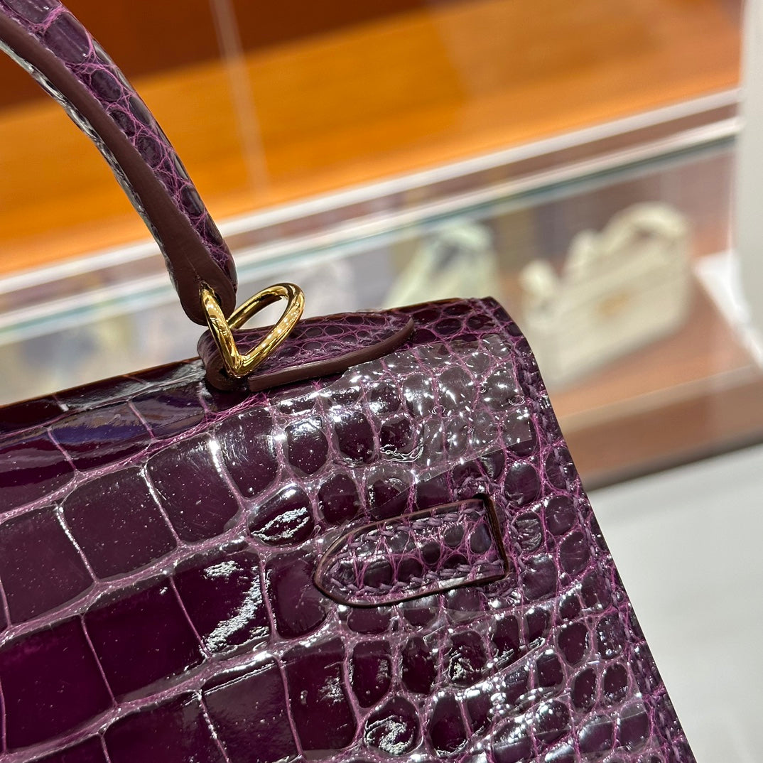 Hermes Kelly Crocodile Skin Bag - Gallon Purple