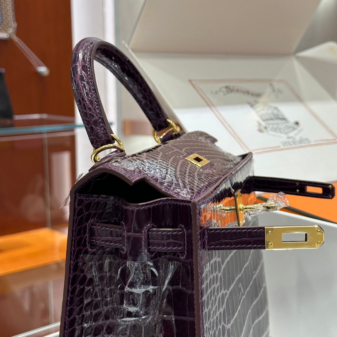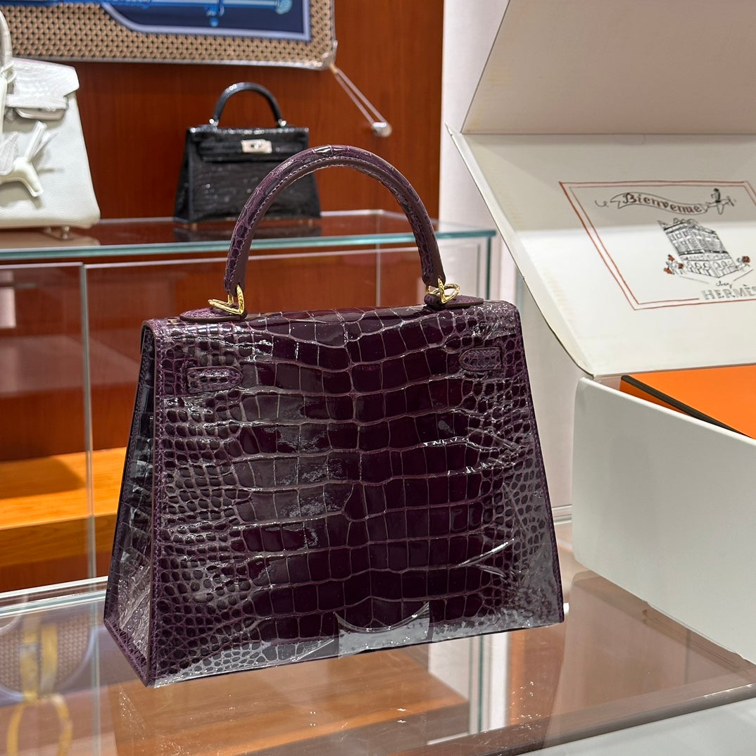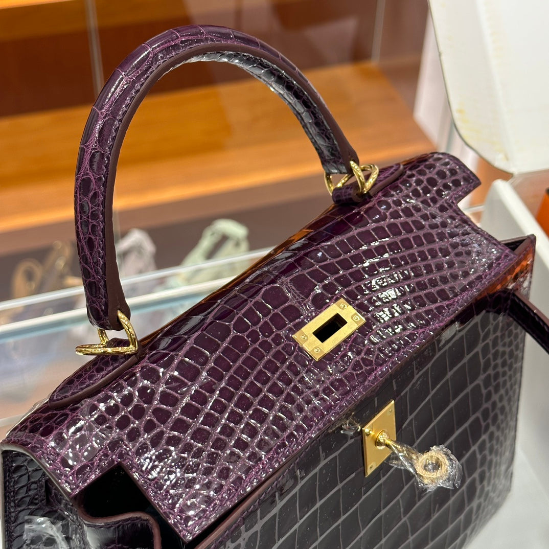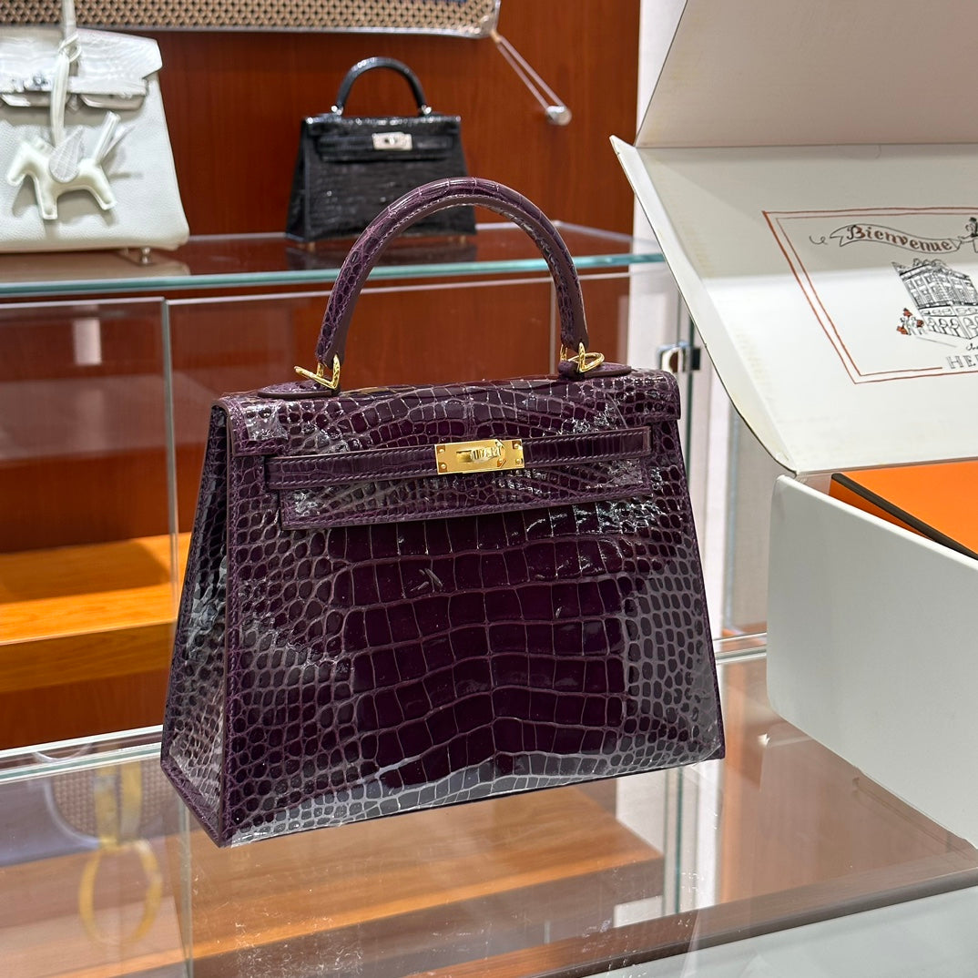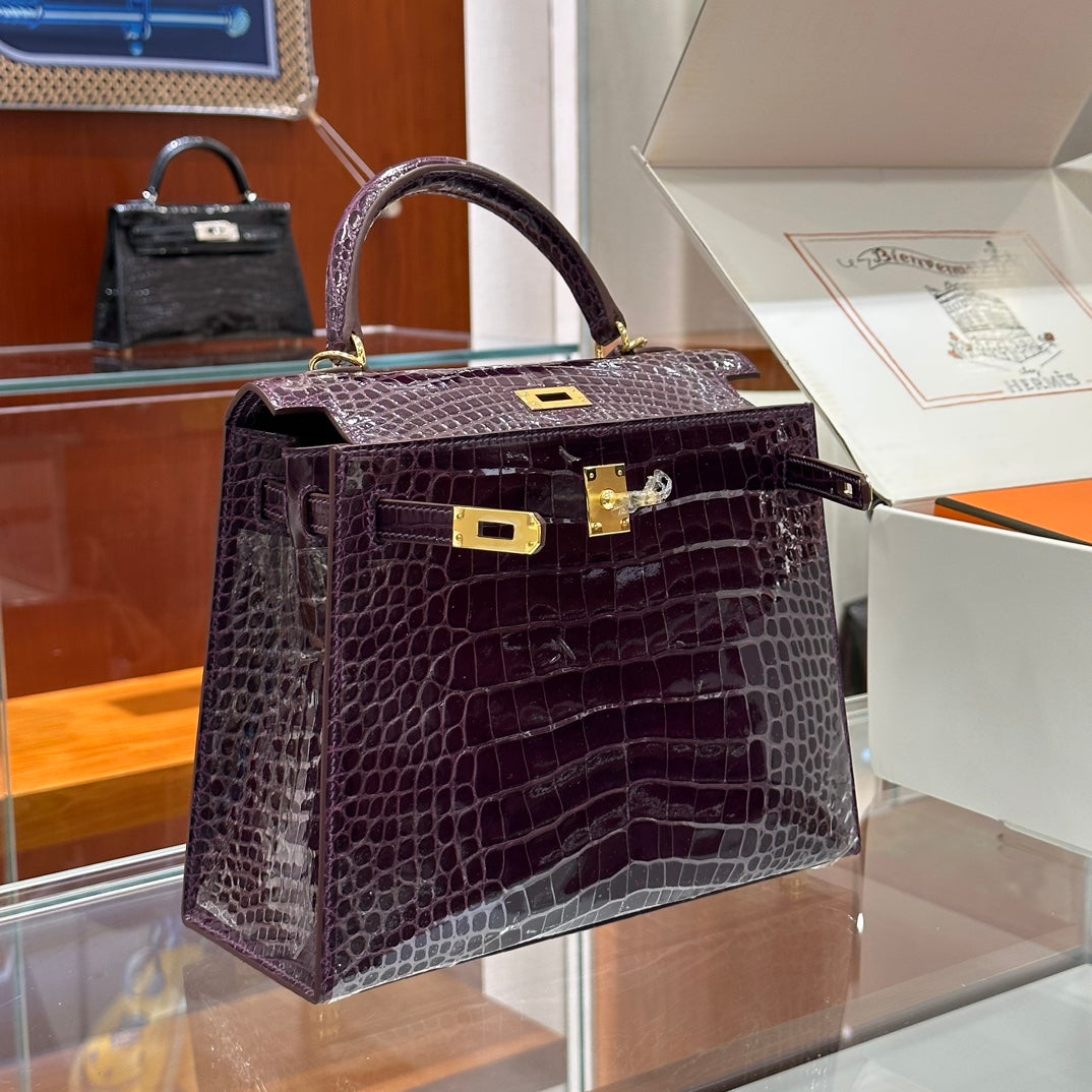 Hermes Kelly Crocodile Skin Bag - Gallon Purple
