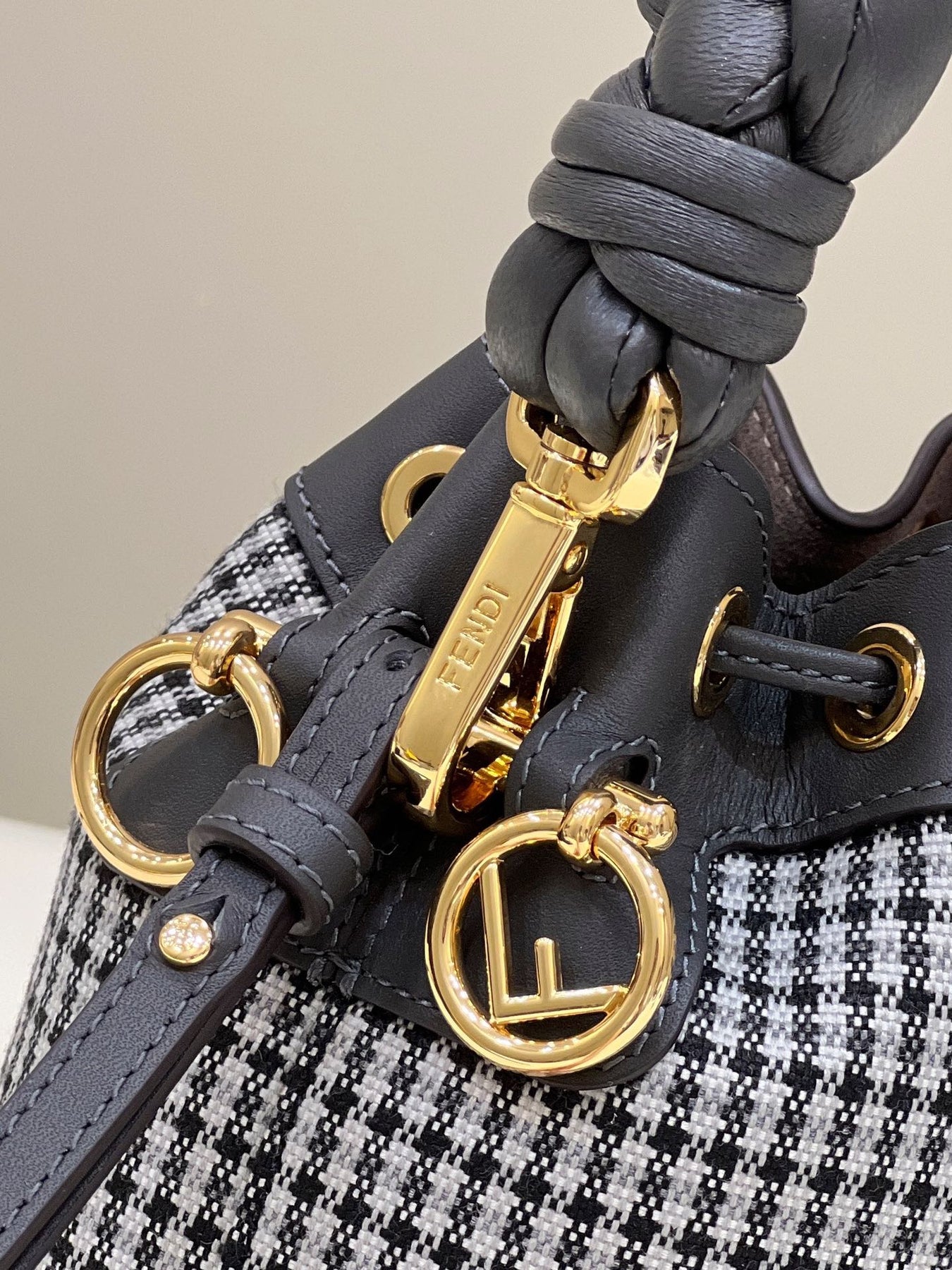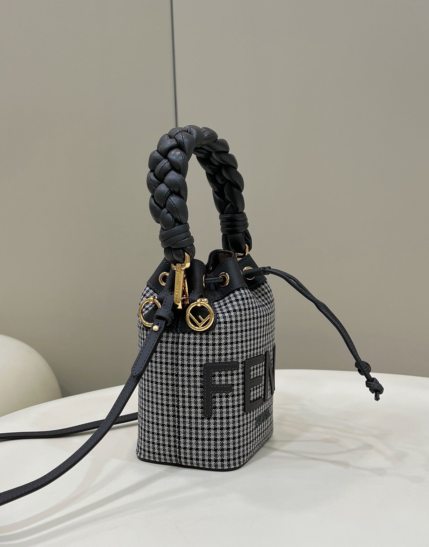 Houndstooth Bucket Bag with Woven Handbag - Stylish and Functional