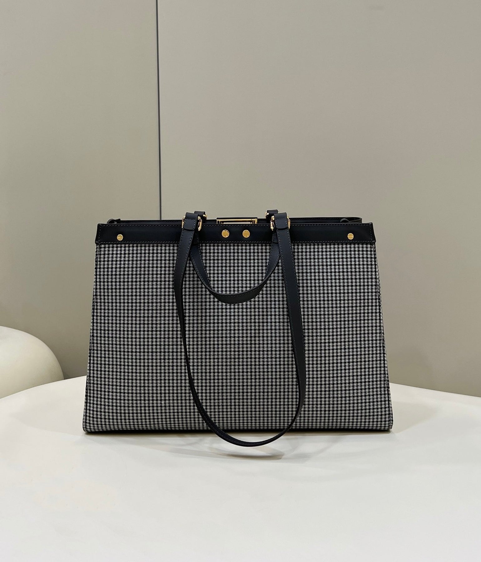Introducing our Houndstooth Presbyopia Double F Embroidery Tote Bag, a perfect blend of craftsmanship and premium materials. This exquisite tote features a striking houndstooth pattern with intricate embroidery, making it an elegant accessory for any occasion. With generous dimensions of 41x13x29 cm, it offers ample space for your daily essentials, ensuring high functionality and convenience. Elevate your style with this must-have tote that is as practical as it is fashionable.