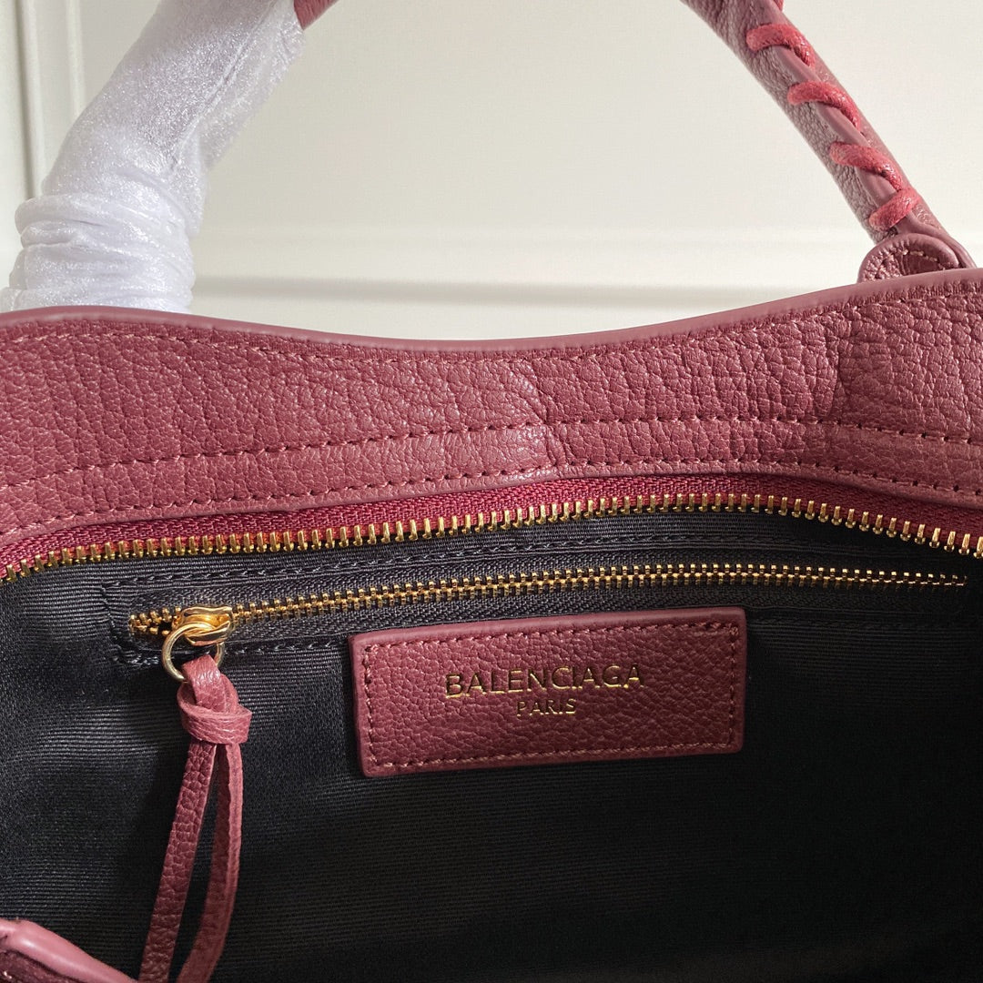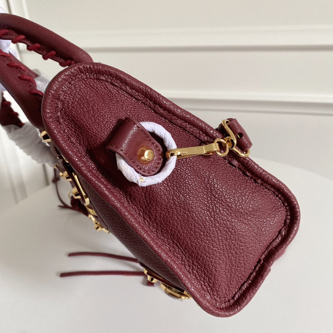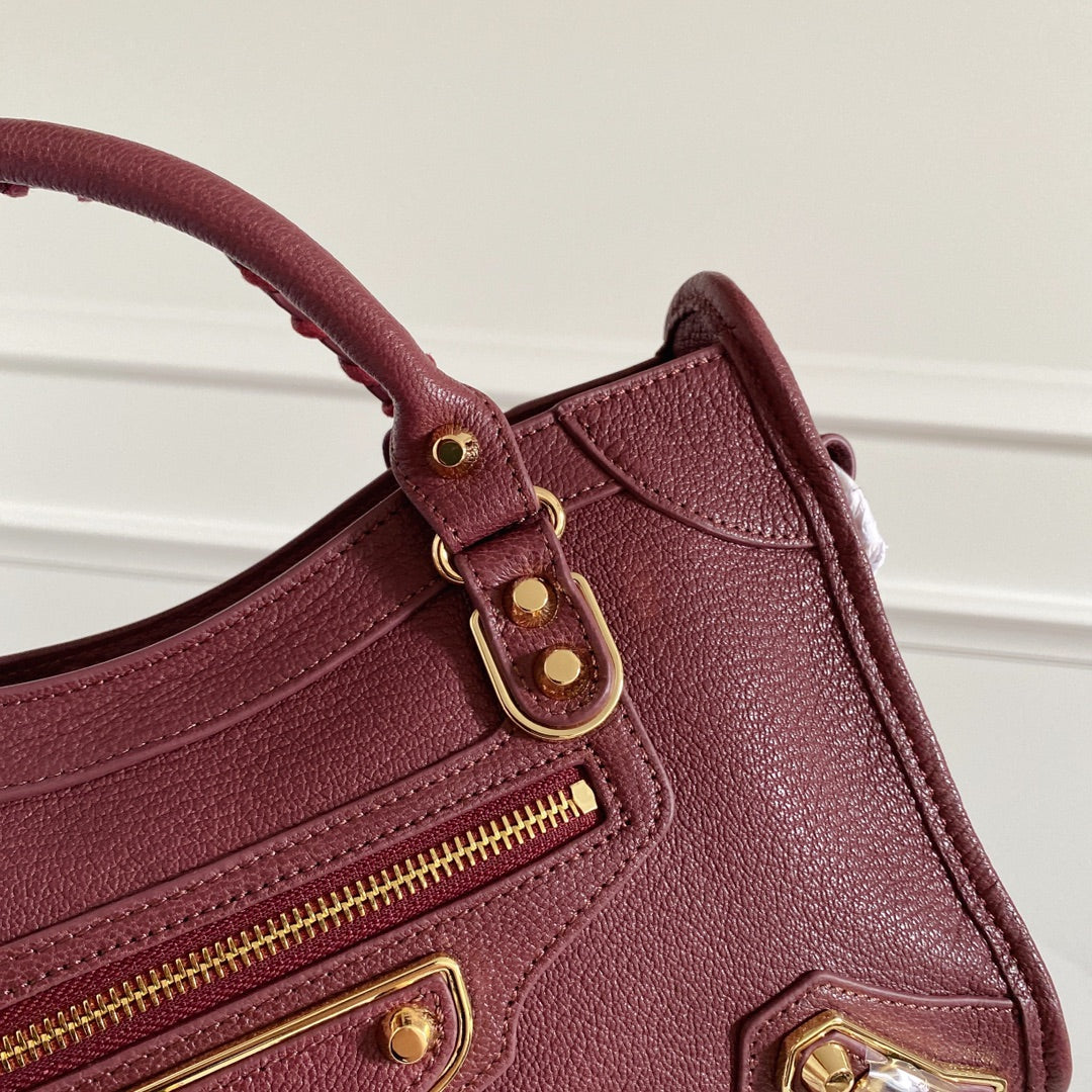 Italian Goatskin Balenciaga Motorcycle Bag - Wine Red with Gold Studs
