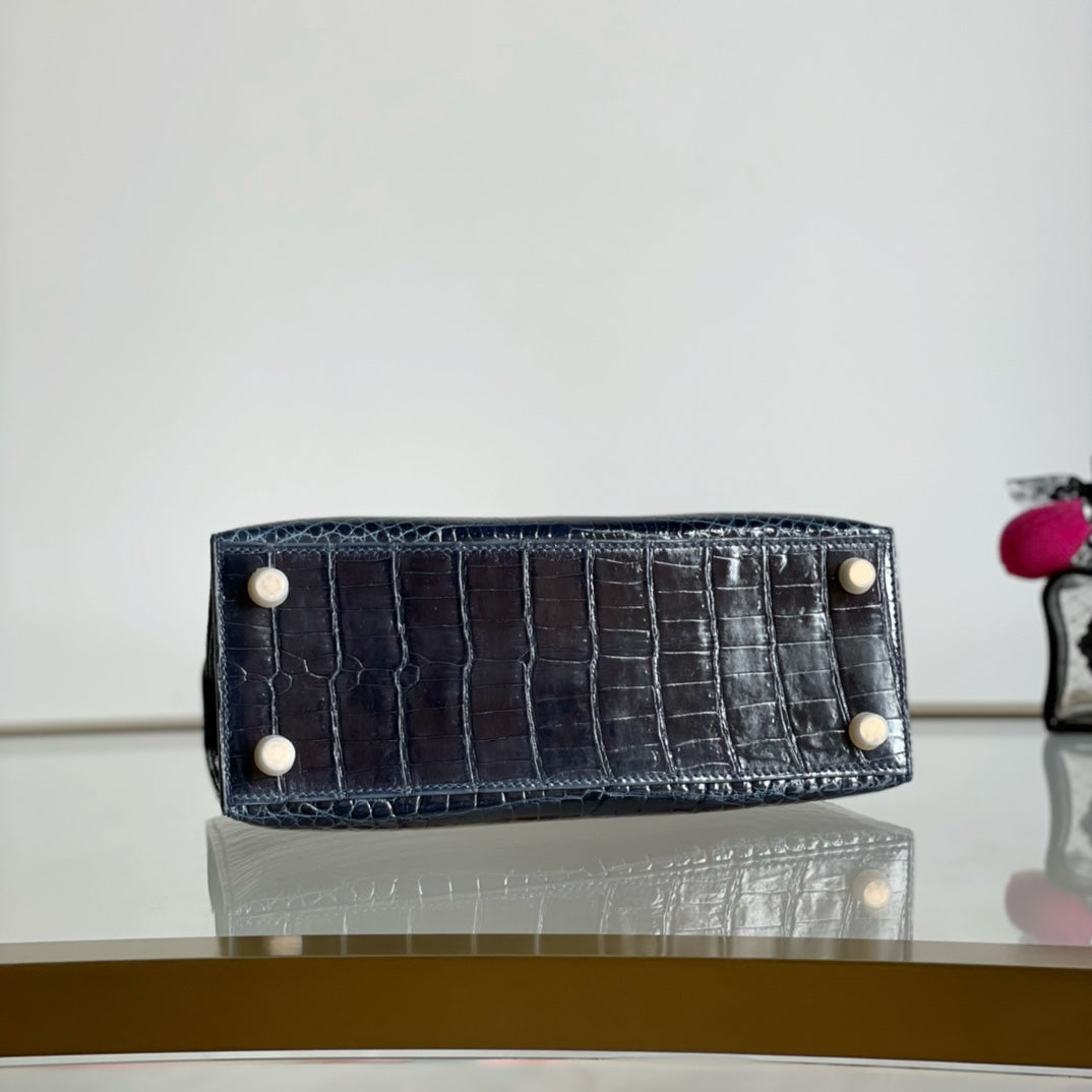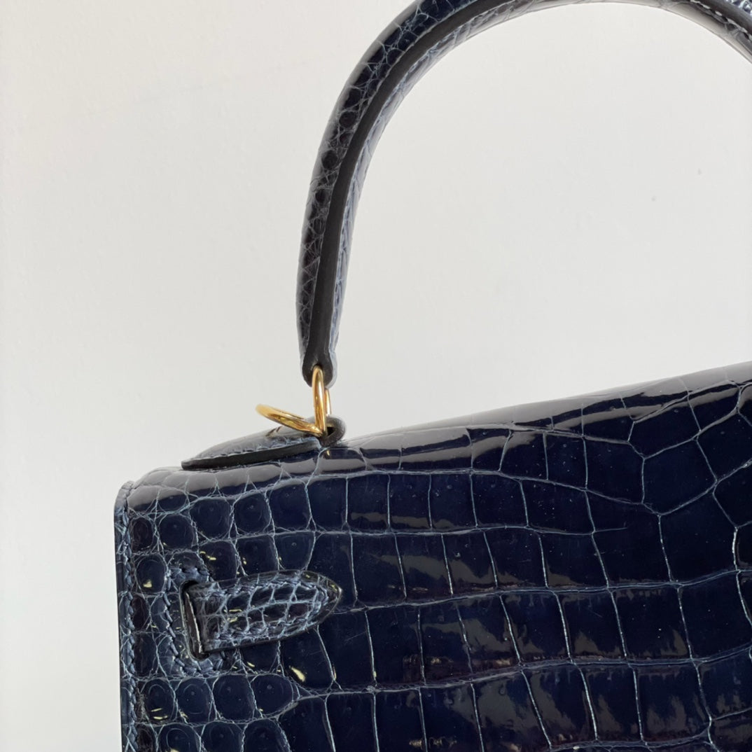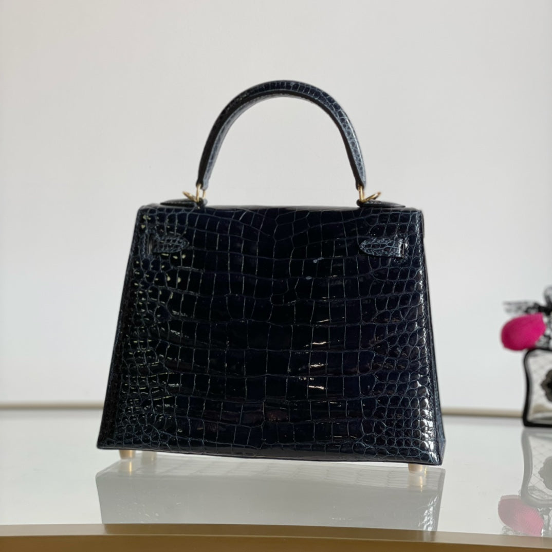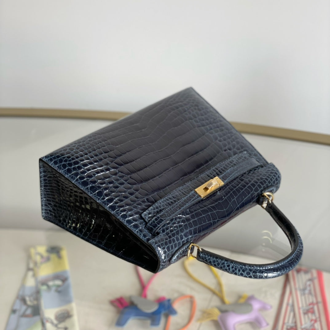Kelly 25 High Gloss Dark Blue Handbag