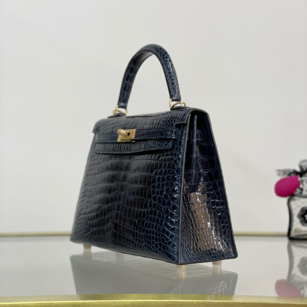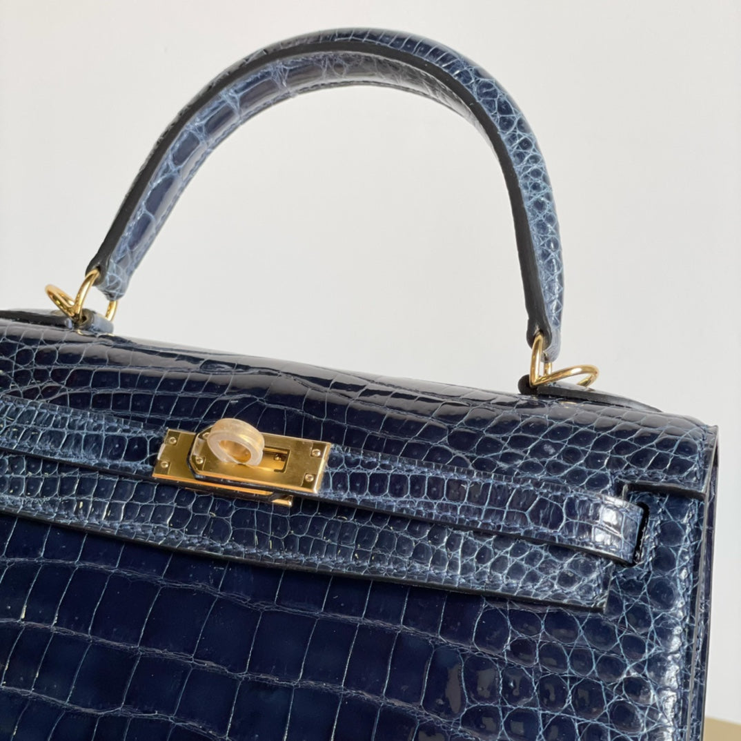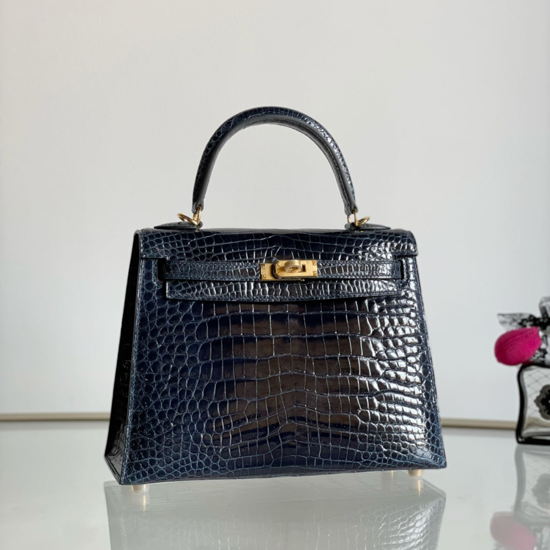 Discover the elegance of the Kelly 25 handbag in a stunning high gloss dark blue finish. This chic accessory combines timeless style with modern sophistication, making it the perfect addition to any wardrobe. Crafted from premium materials, the Kelly 25 is designed for versatility and durability, ensuring it remains a staple piece for years to come. Don’t miss out on this special offer to elevate your accessory collection with the Kelly 25 handbag.