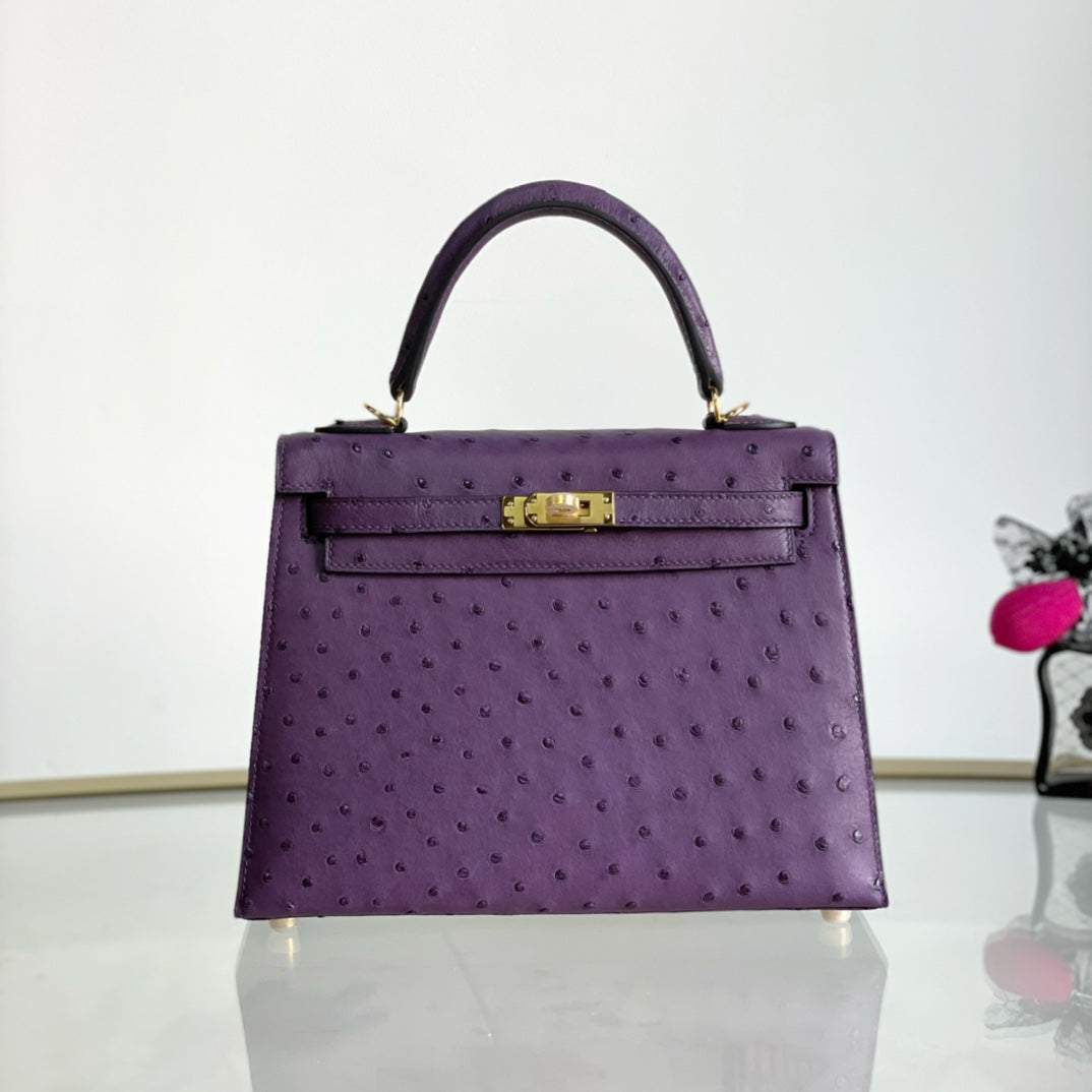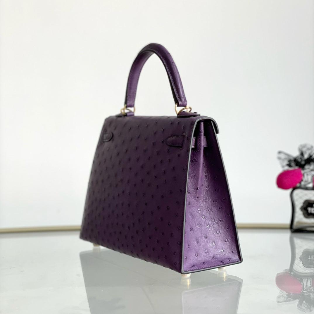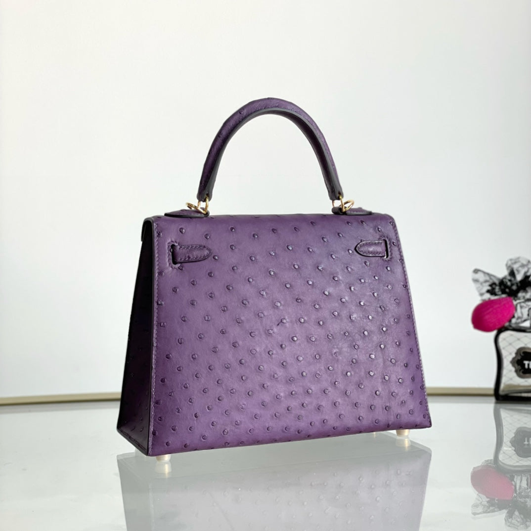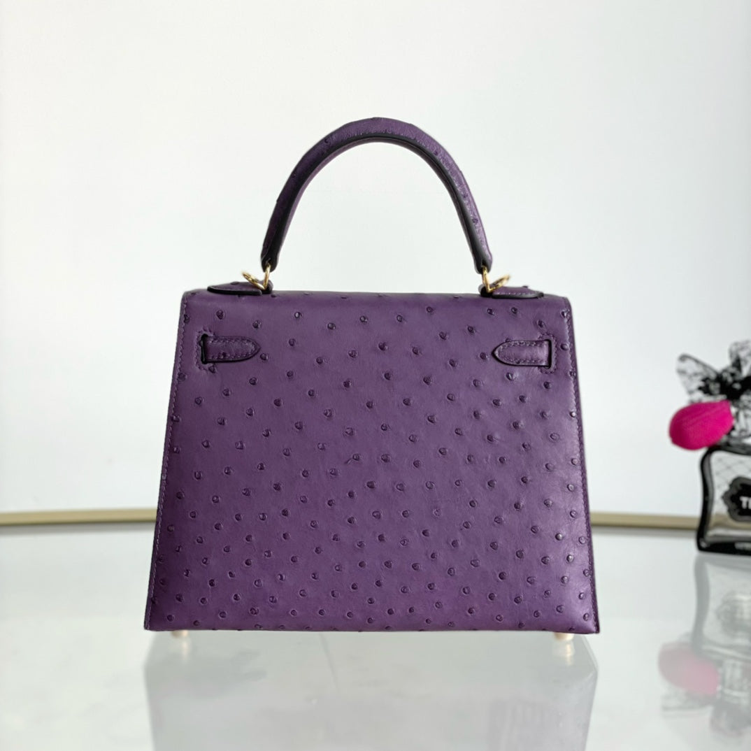 Kelly 25 Ostrich Skin Handbag in Grape Purple