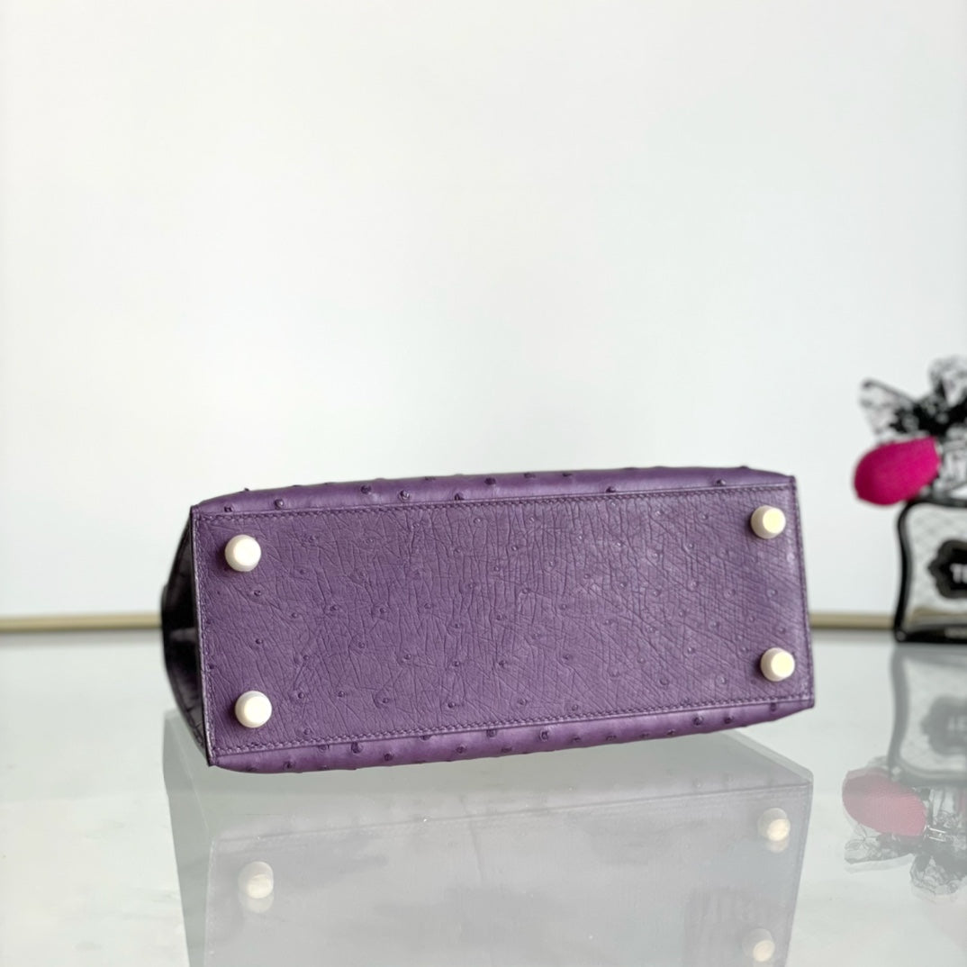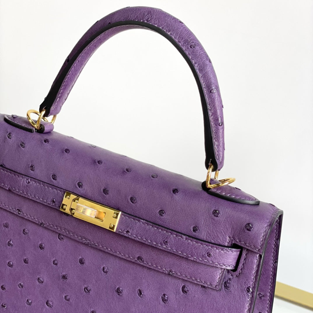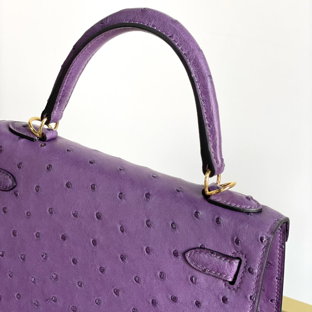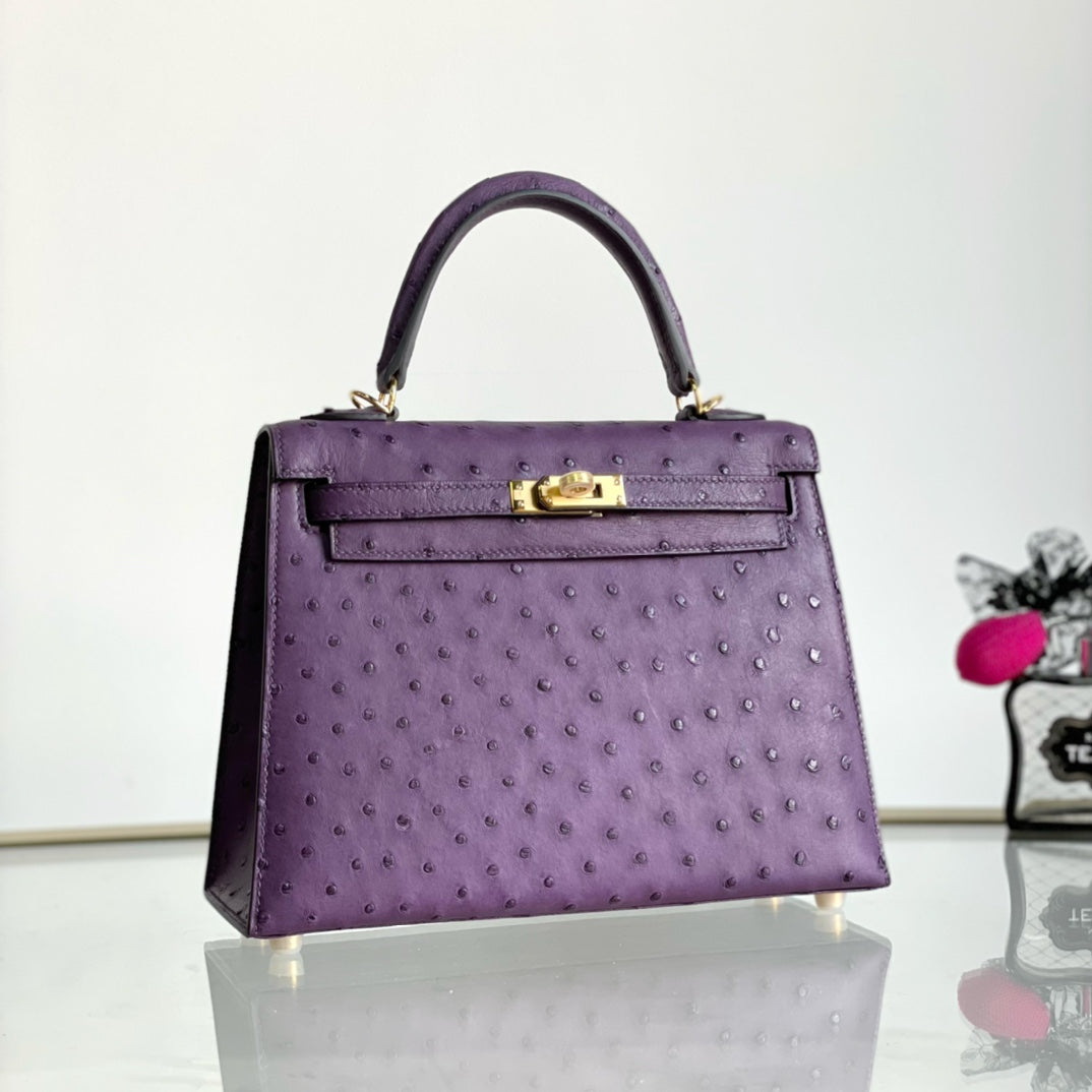 Kelly 25 Ostrich Skin Handbag in Grape Purple