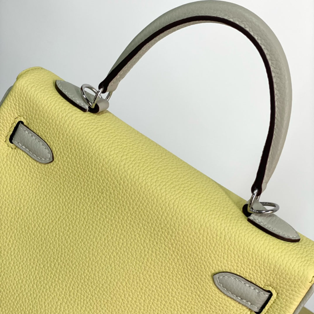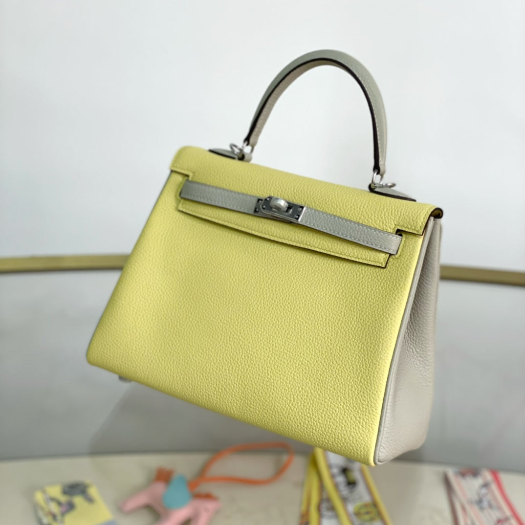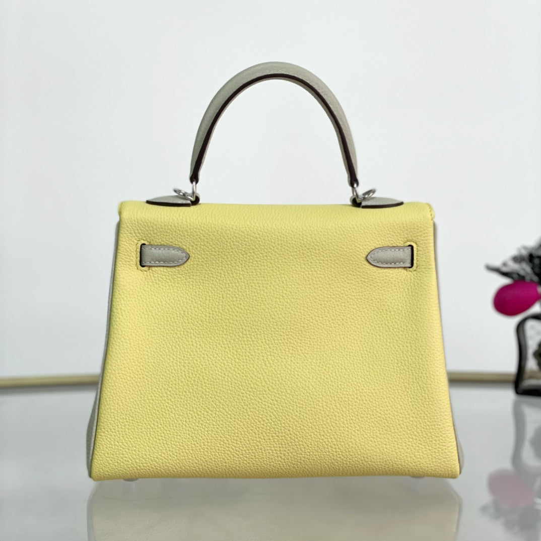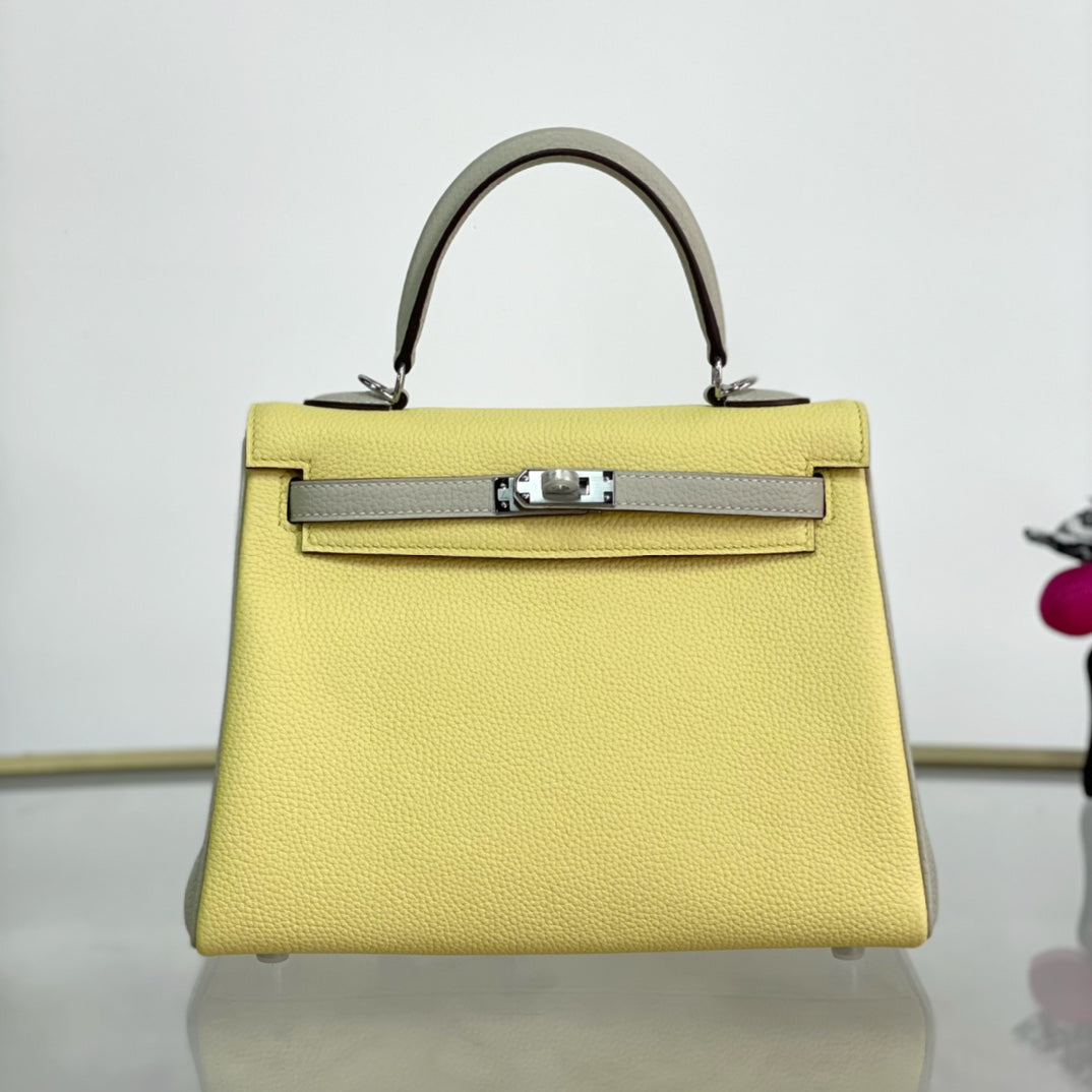 Kelly 25 Togo Leather Handbag - Chick Yellow & Pearl Gray