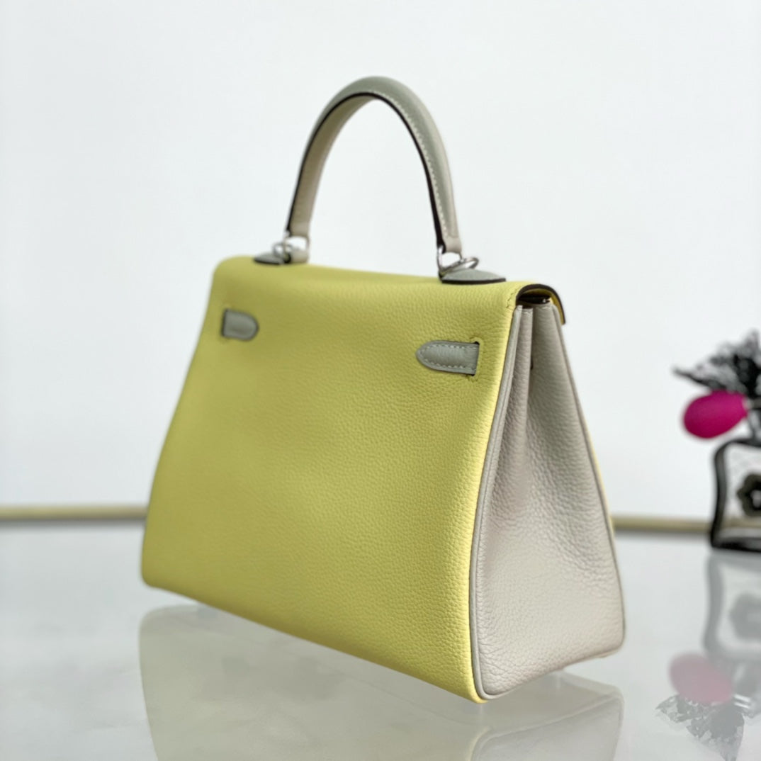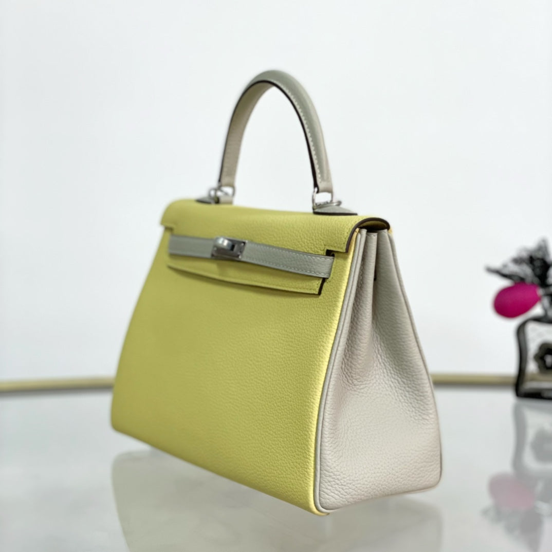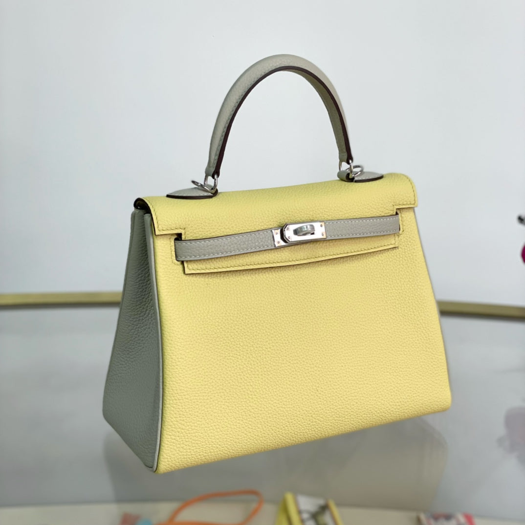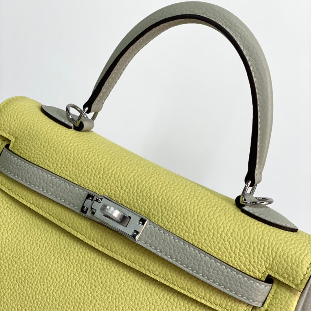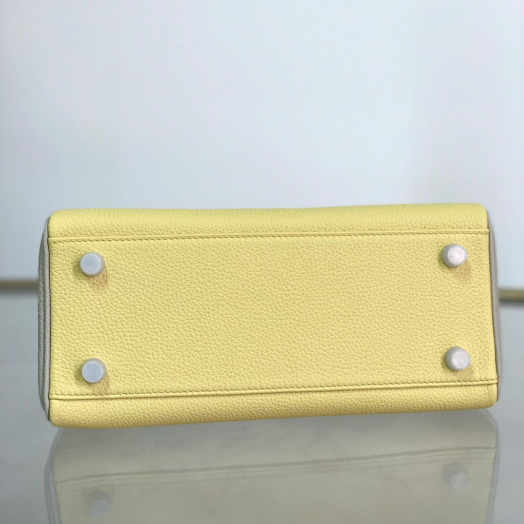 Kelly 25 Togo Leather Handbag - Chick Yellow & Pearl Gray