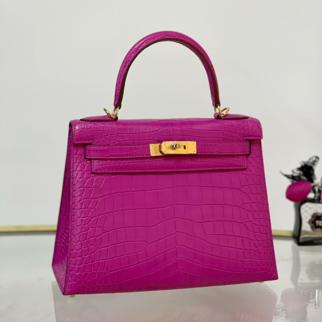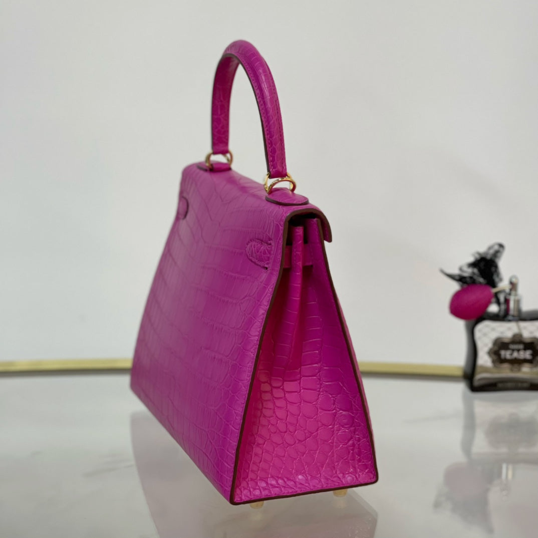 Elevate your style with the Kelly 28 Matte Bag, featuring a stunning Arabian Nights Purple finish complemented by elegant gold buckles. This chic and sophisticated accessory is designed for those who appreciate the fusion of luxury and practicality. Perfect for both day and evening wear, the Kelly 28 effortlessly enhances any outfit, making it a must-have addition to your collection. Enjoy unmatched quality and timeless elegance with this exquisite piece.