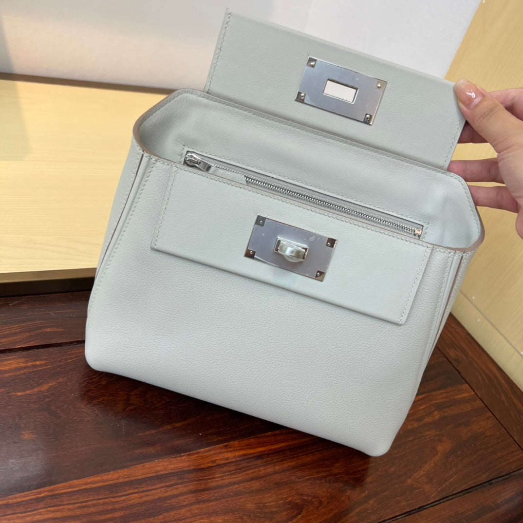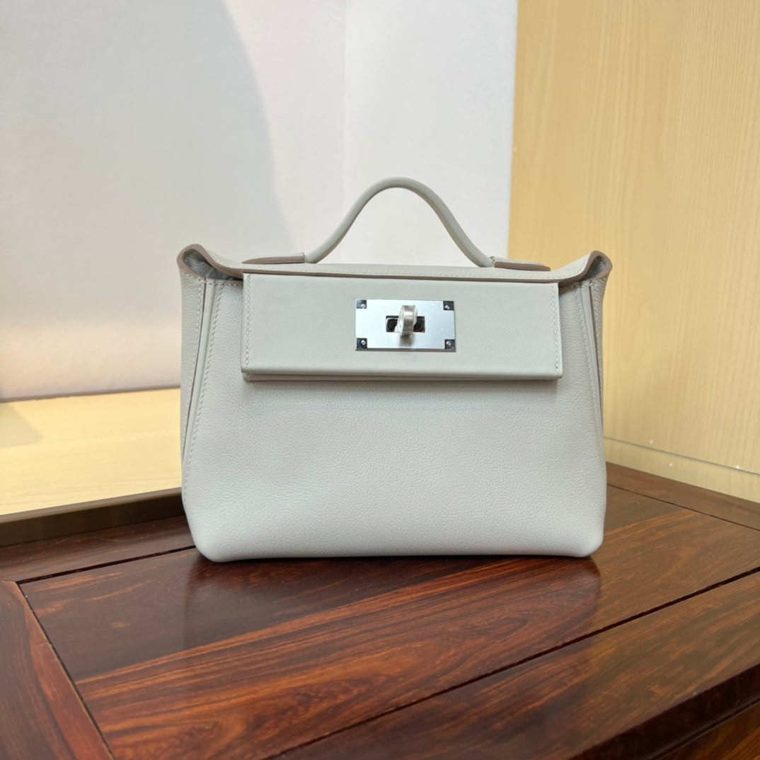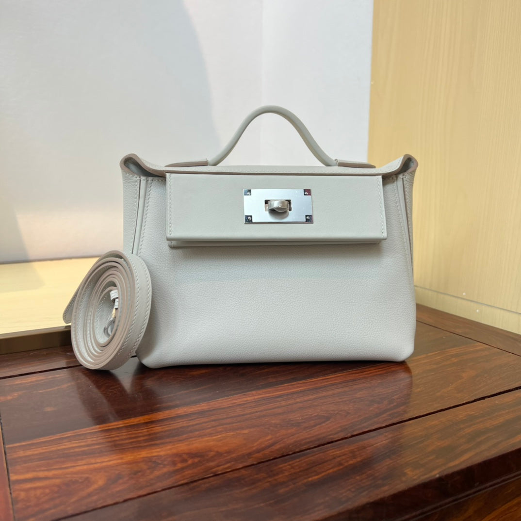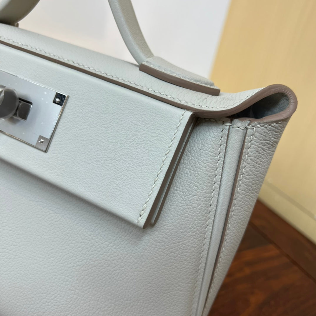 Kelly Mini 2424 - Elegant Glacier White Leather Bag
