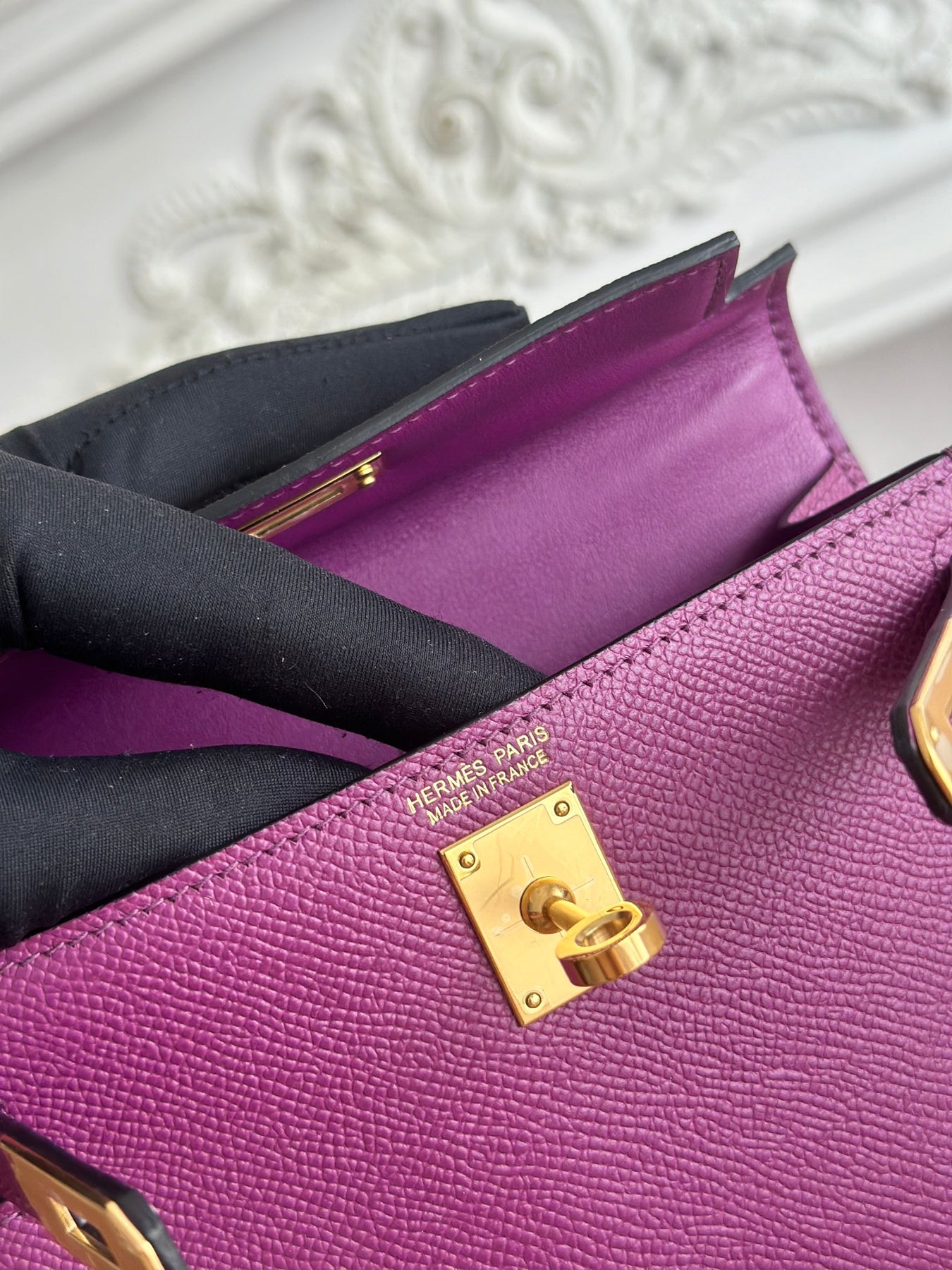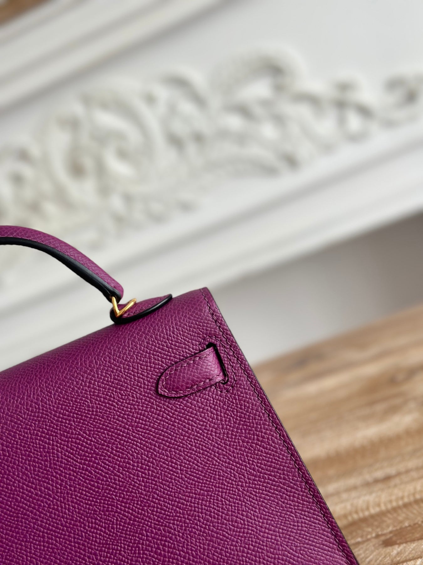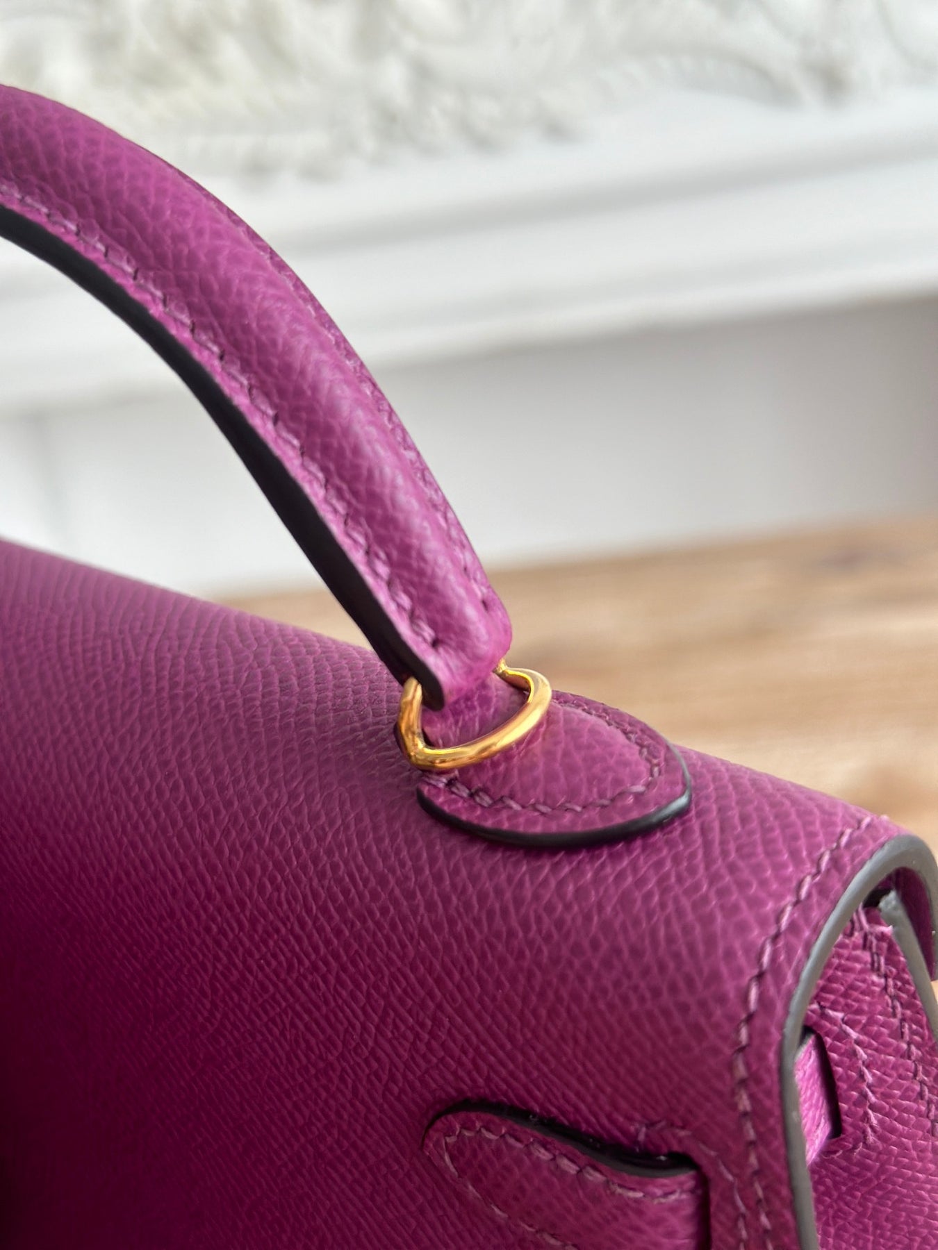 Introducing the second generation Kelly Mini Bag in a stunning anemone purple hue. Crafted from imported epsom leather and elegantly semi-handmade with durable wax thread, this exquisite accessory merges sophistication with timeless style. With a compact size of 19cm, it’s perfect for everyday use or special occasions. Elevate your ensemble with this chic and versatile mini bag.