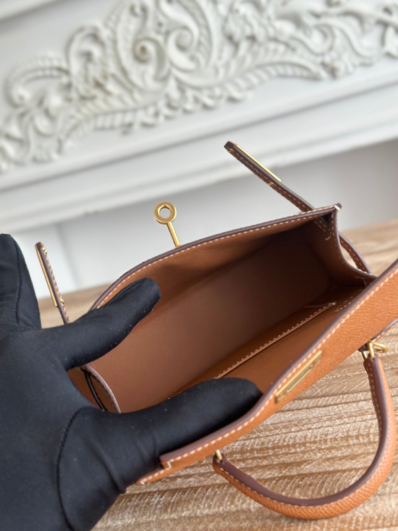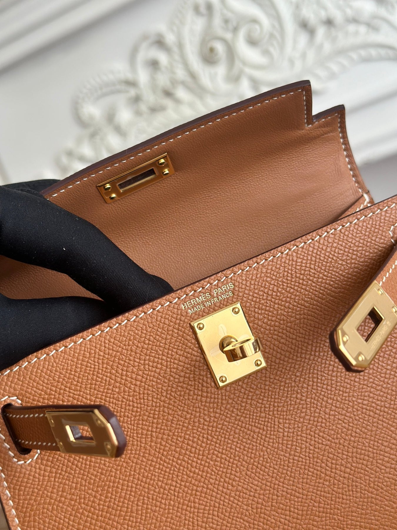 Introducing the second-generation Kelly Mini Bag, a perfect blend of luxury and craftsmanship. Made from imported Epsom leather in a sophisticated sesame color, this semi-handmade bag features meticulous wax thread detailing for durability and style. With a compact size of 19cm, it’s an ideal accessory for any occasion, combining elegance with functionality. Upgrade your collection with this timeless piece today!