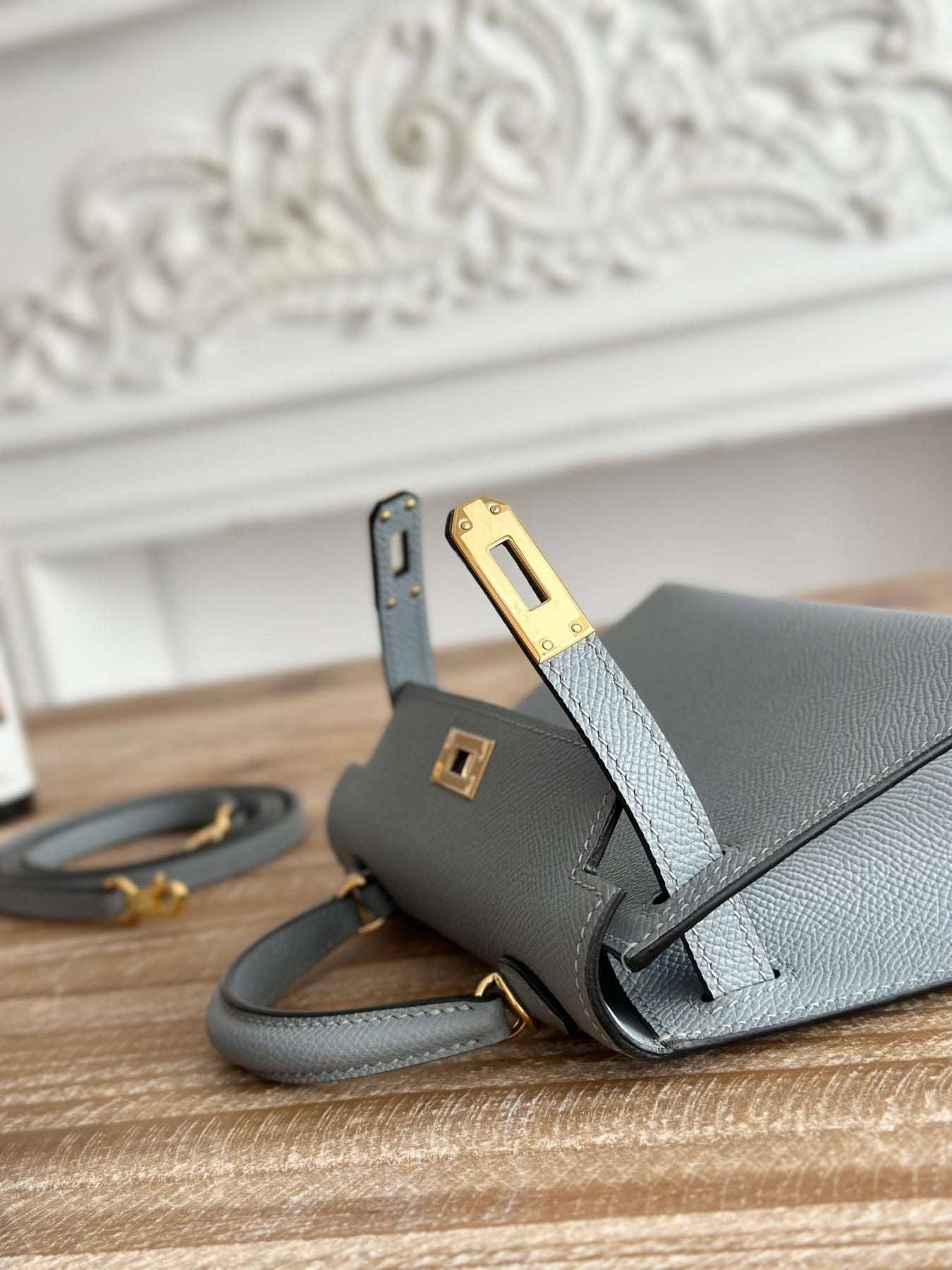 Introducing the Kelly Mini Bag, a stunning second-generation piece crafted from imported Epsom leather in an elegant linen blue hue. This semi-handmade accessory features durable wax thread construction, ensuring both style and longevity. With a compact size of 19cm, it’s perfect for carrying your essentials while making a fashionable statement. Elevate your collection with this chic mini bag today!