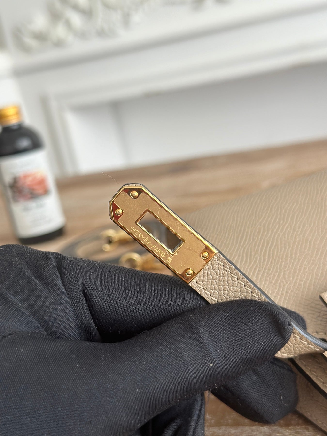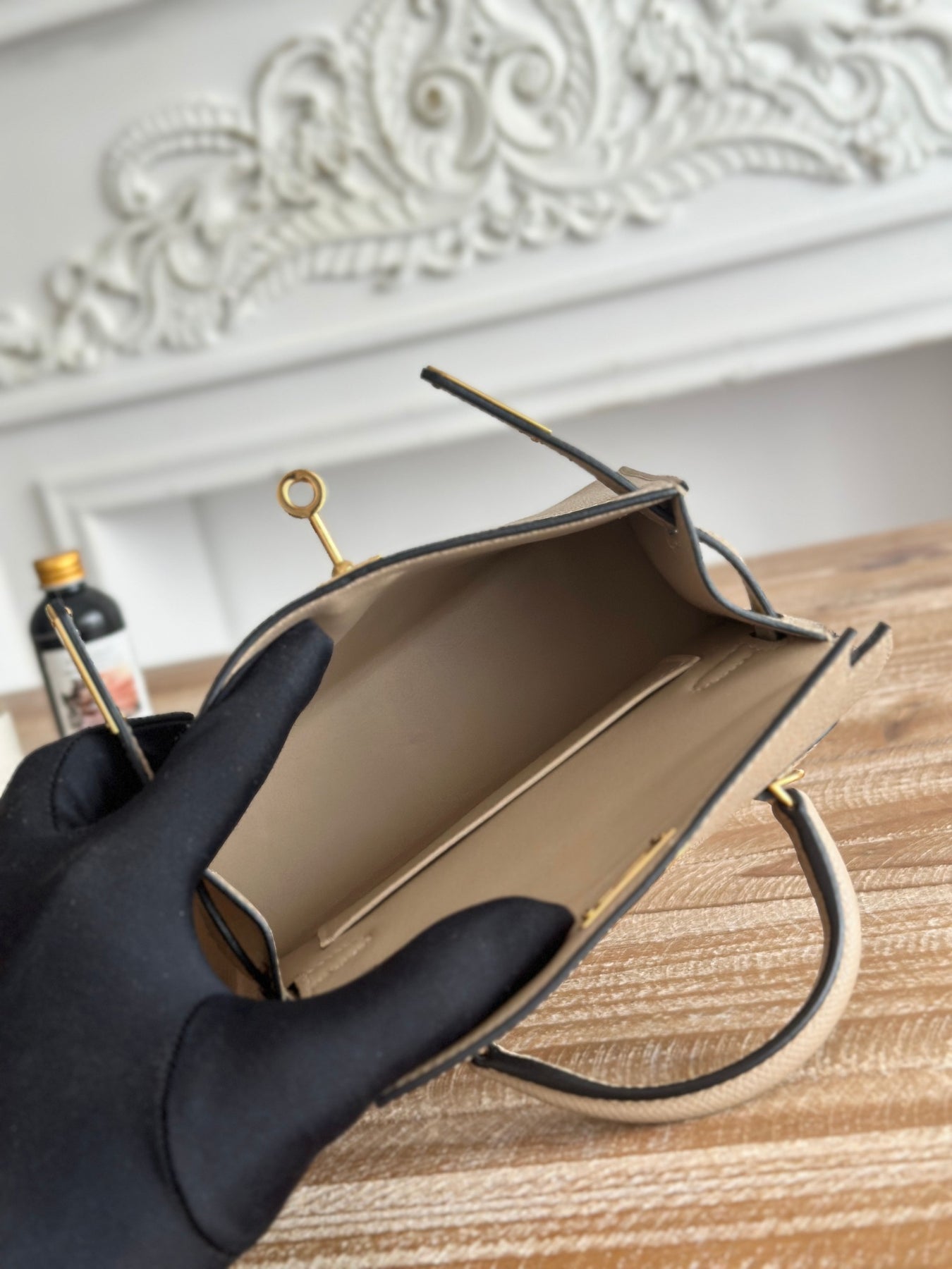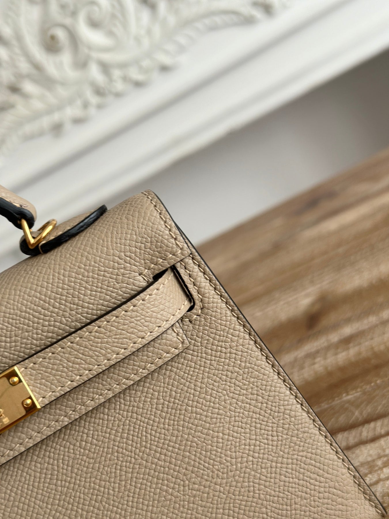 Introducing the second generation Kelly Mini Handbag in a sophisticated windbreaker gray. Crafted with imported Epsom leather, this semi-handmade piece features durable wax thread stitching, ensuring both elegance and quality. Compact at 19cm, it's the perfect accessory for any occasion, combining functionality with timeless style. Elevate your wardrobe with this chic mini handbag today!