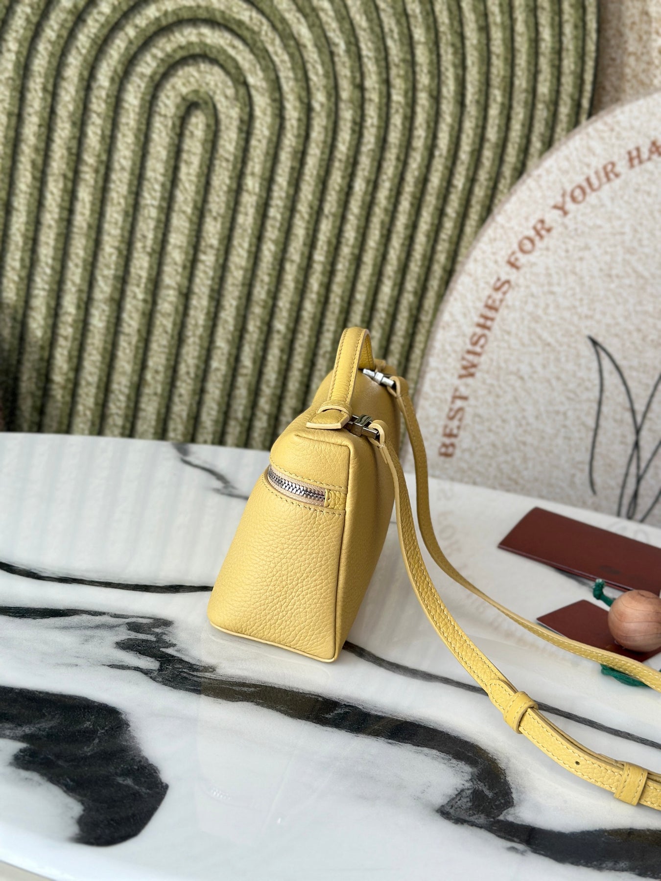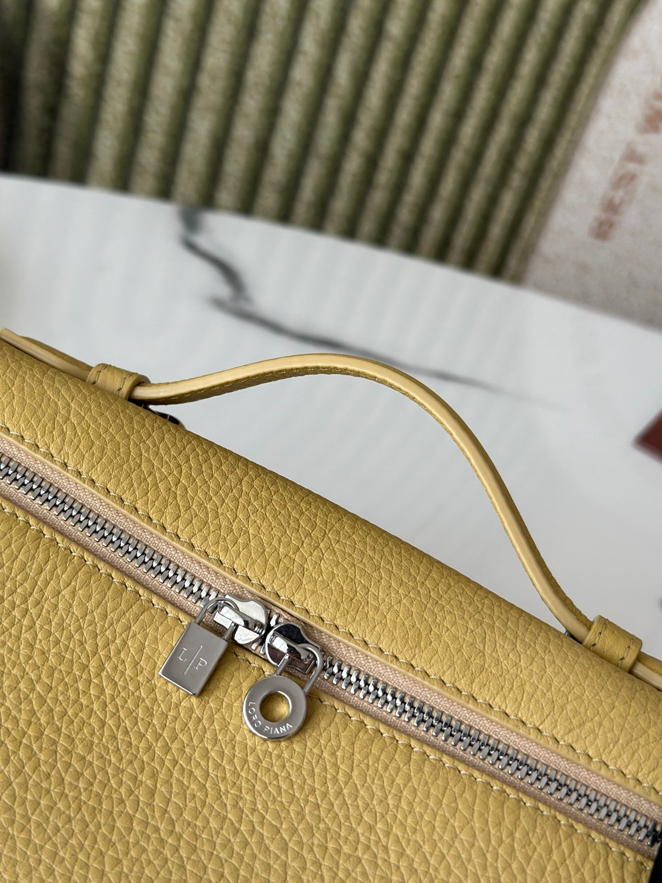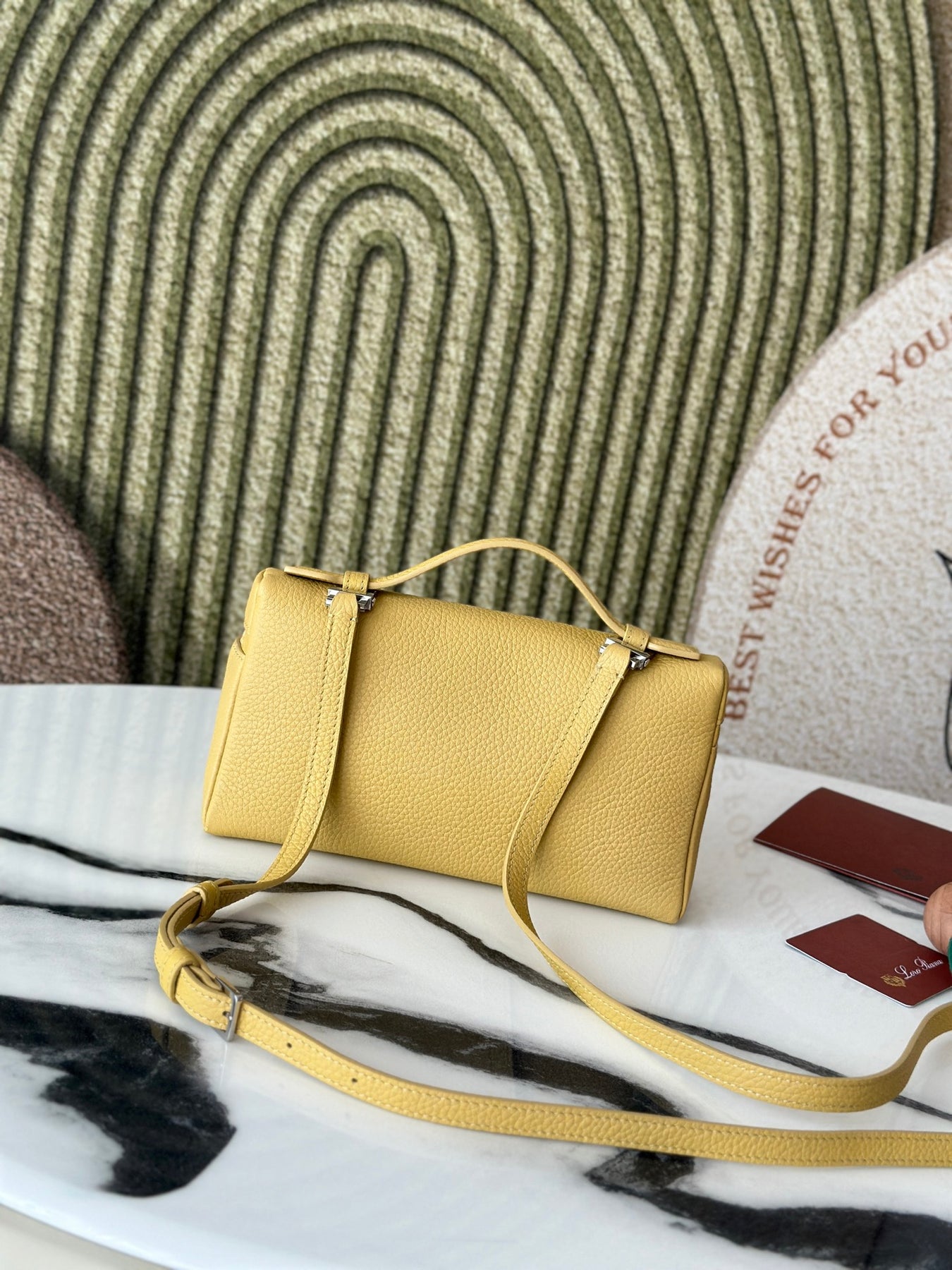 Introducing the L19 Handbag, a stylish and functional accessory perfect for any occasion. This new version features a sleek cream yellow design, complemented by an elegant silver buckle.