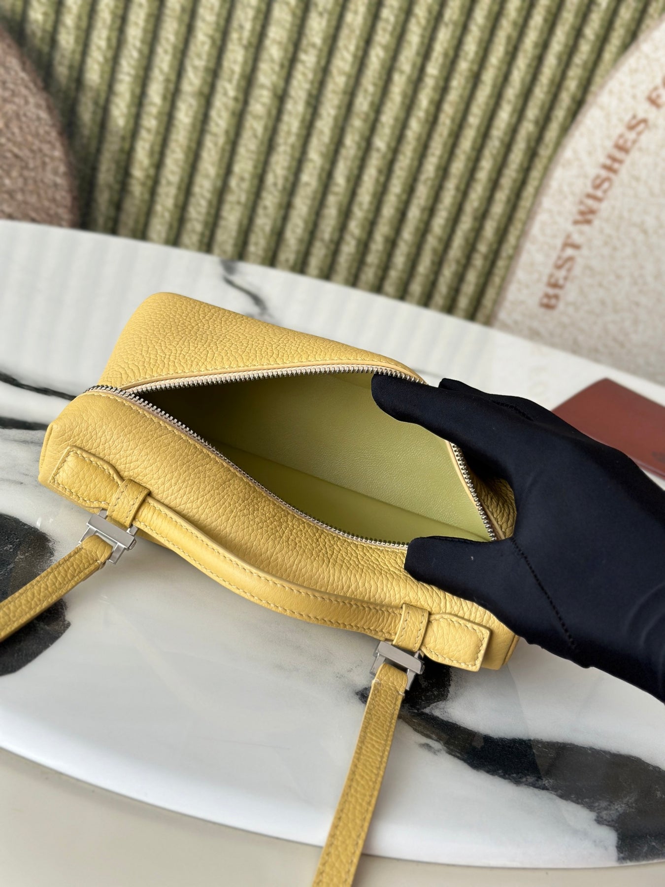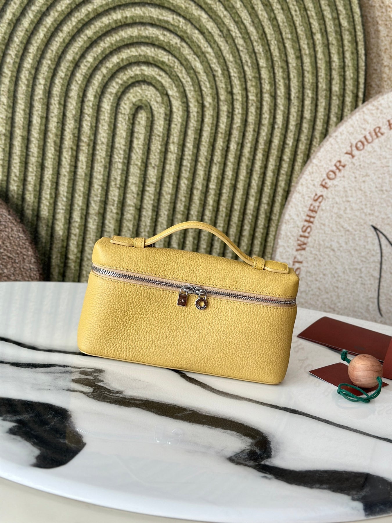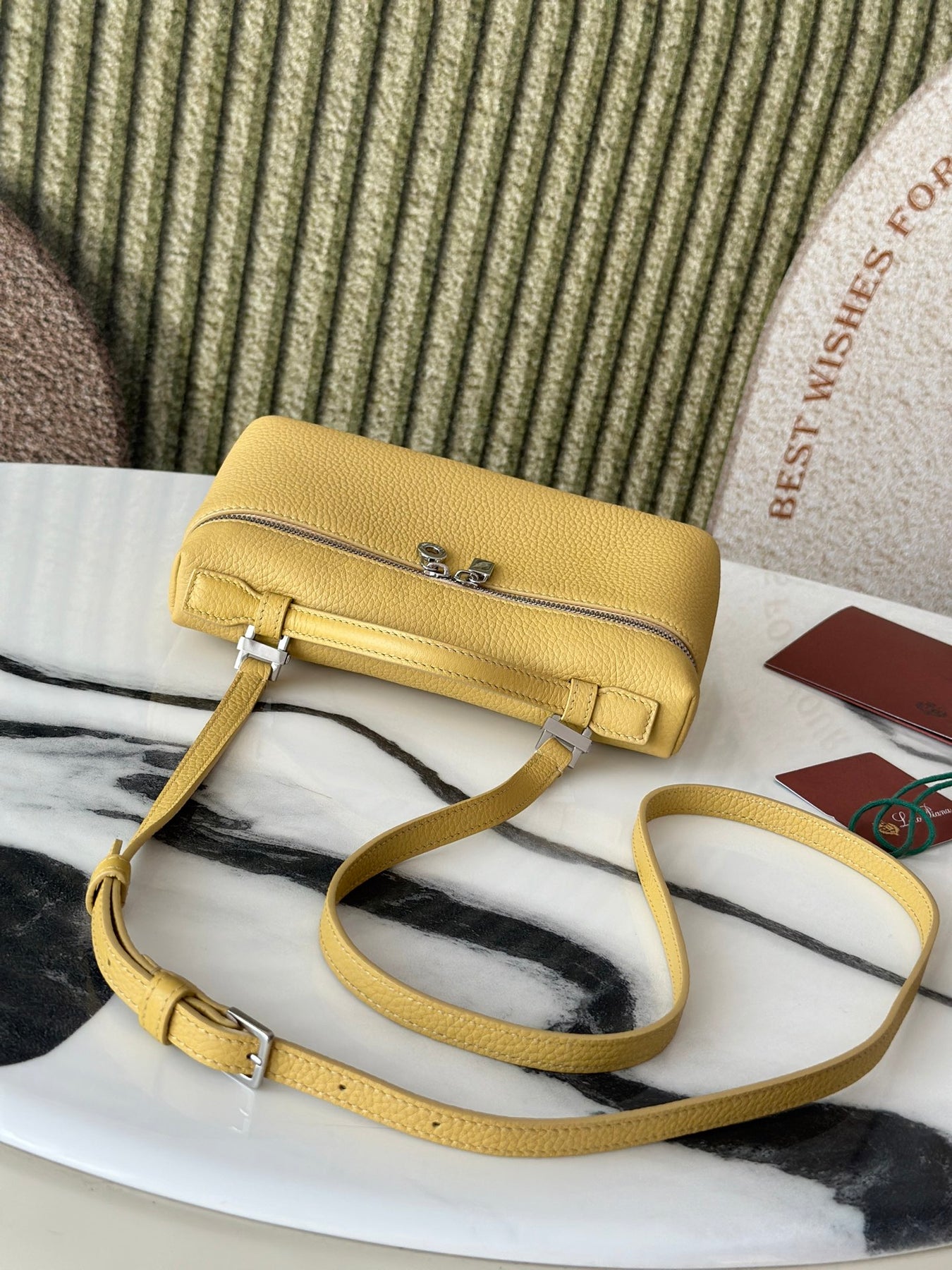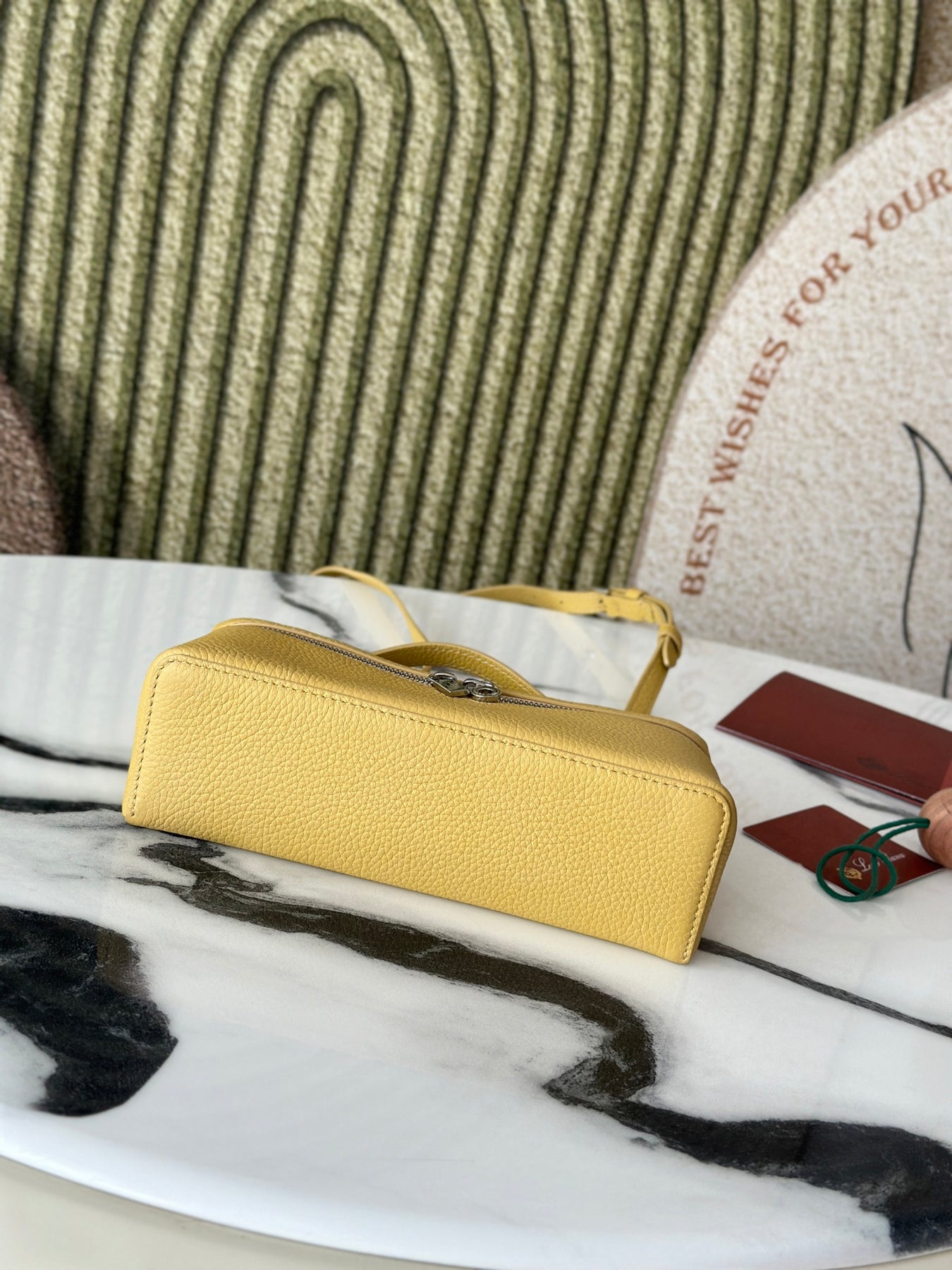 Introducing the L19 Handbag, a stylish and functional accessory perfect for any occasion. This new version features a sleek cream yellow design, complemented by an elegant silver buckle.
