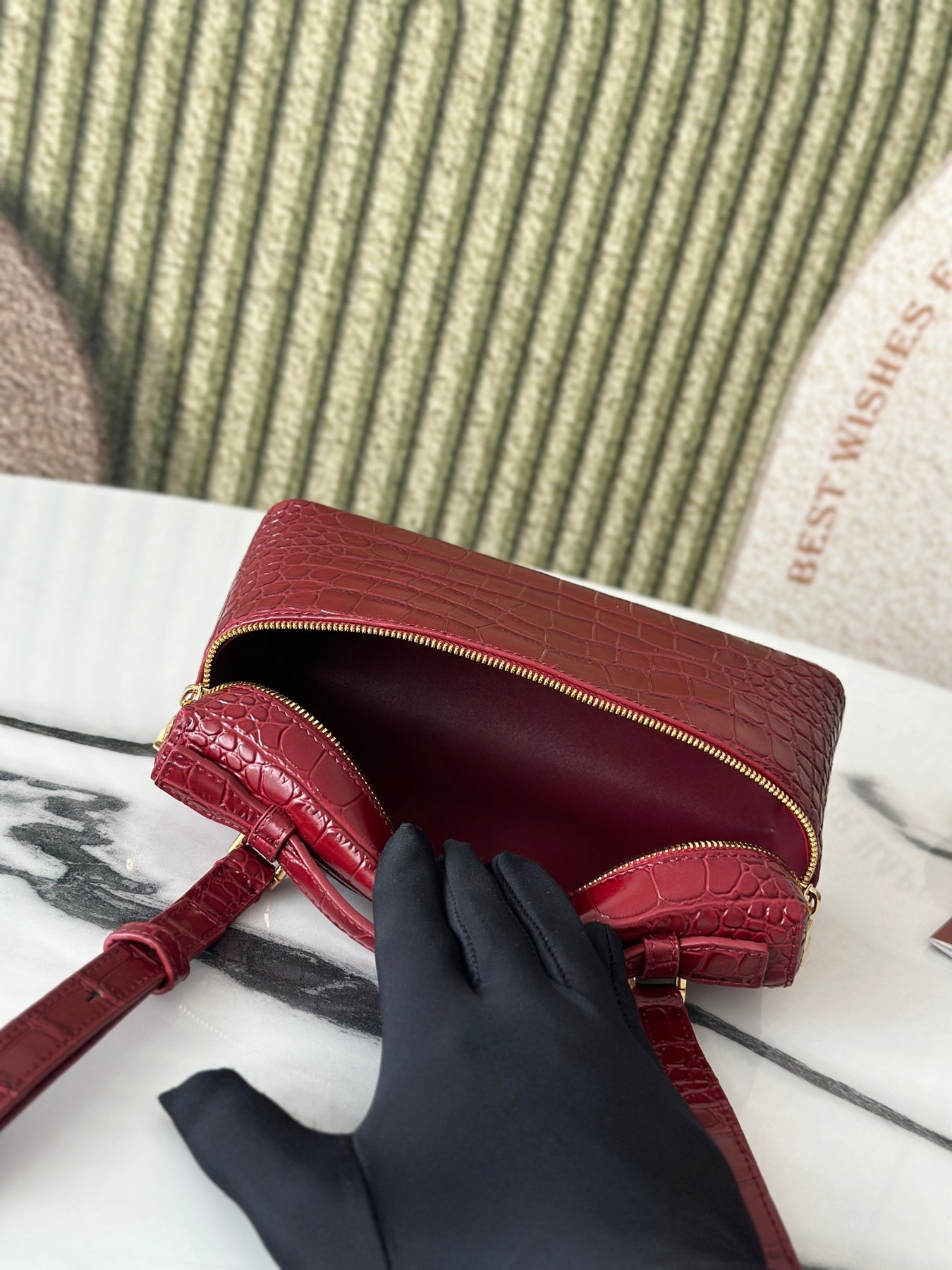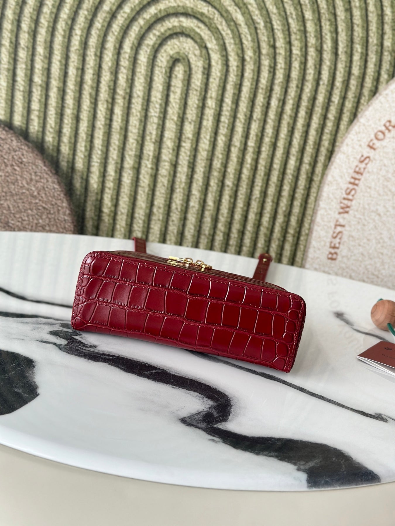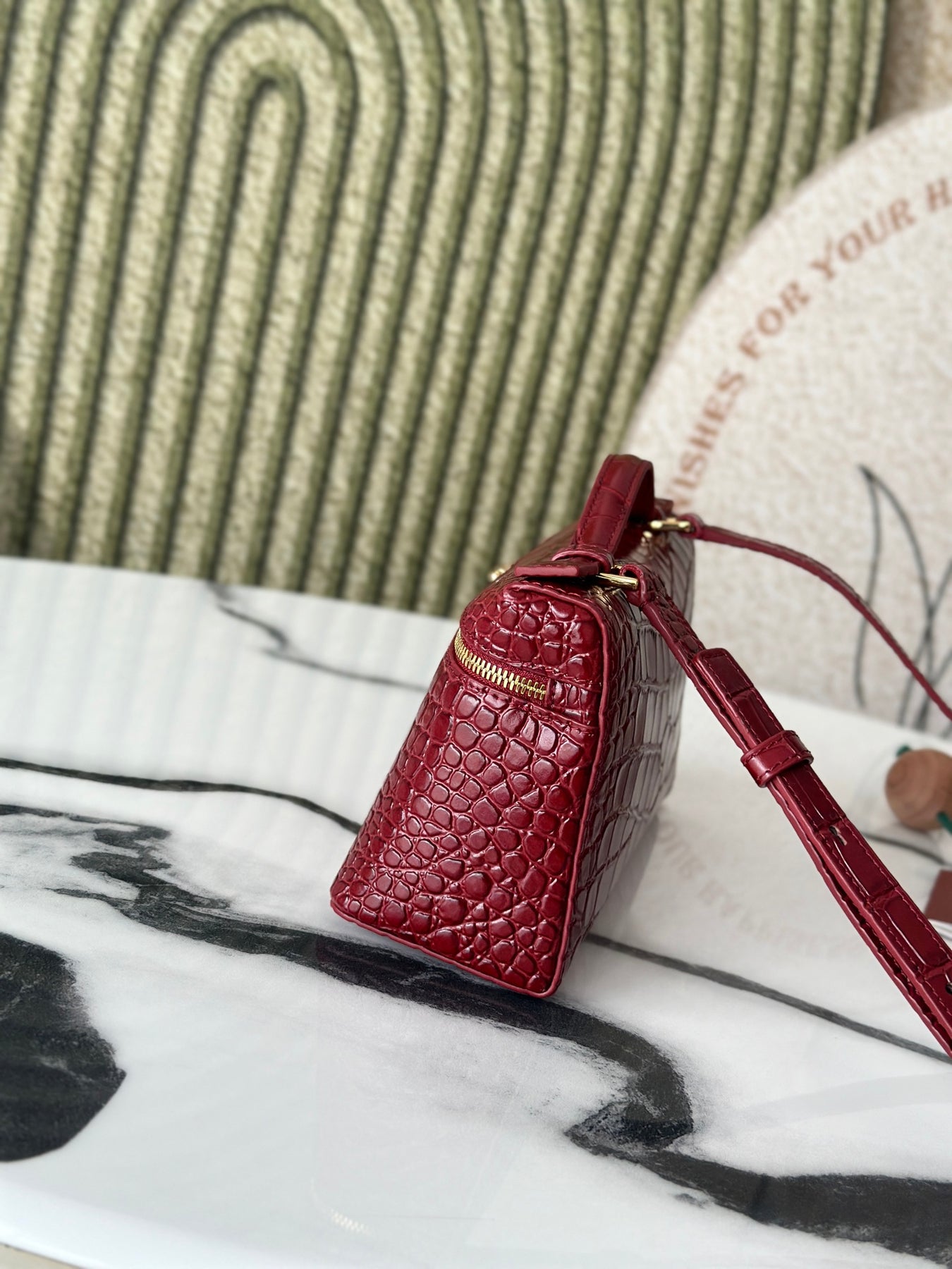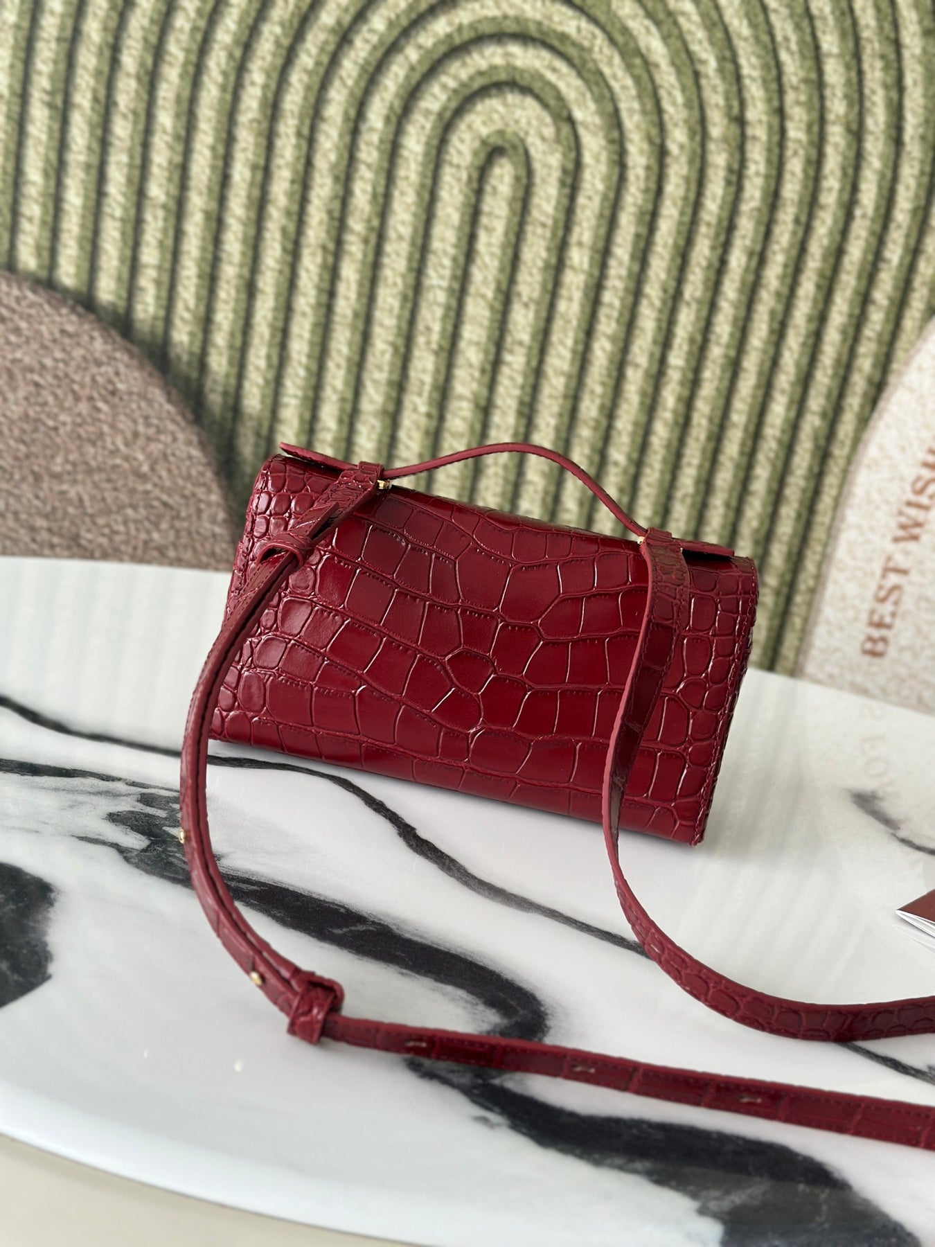 L19 Crocodile Pattern Pomegranate Red Handbag - Luxe Cowhide Design