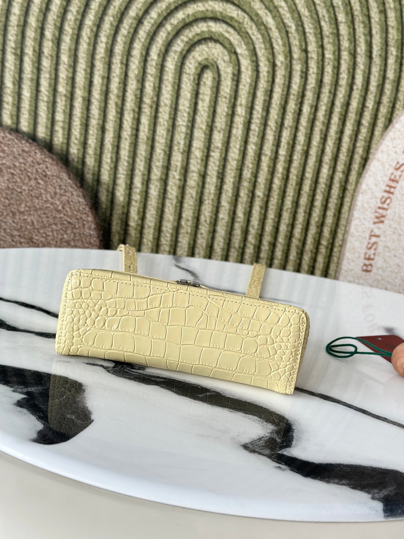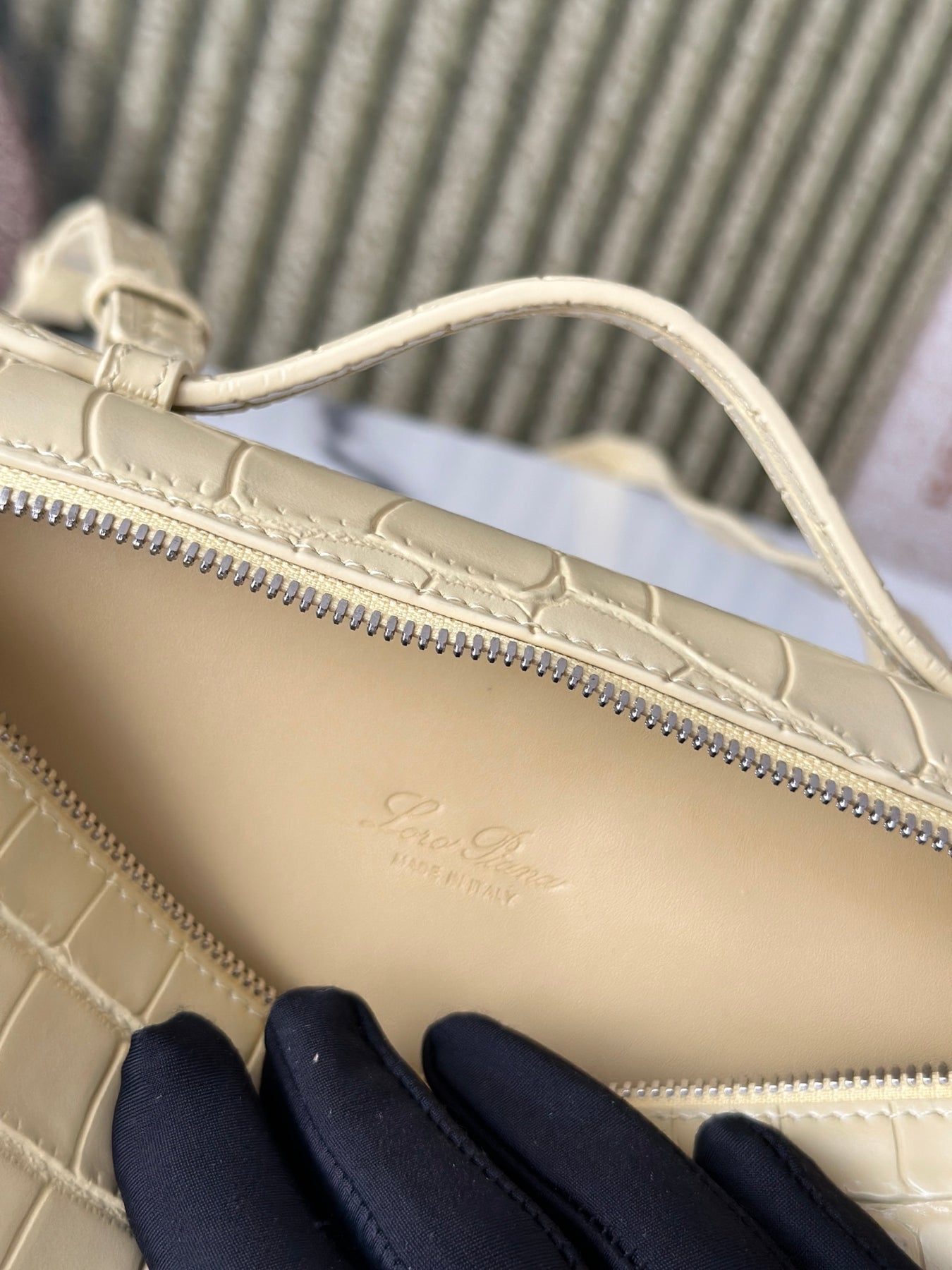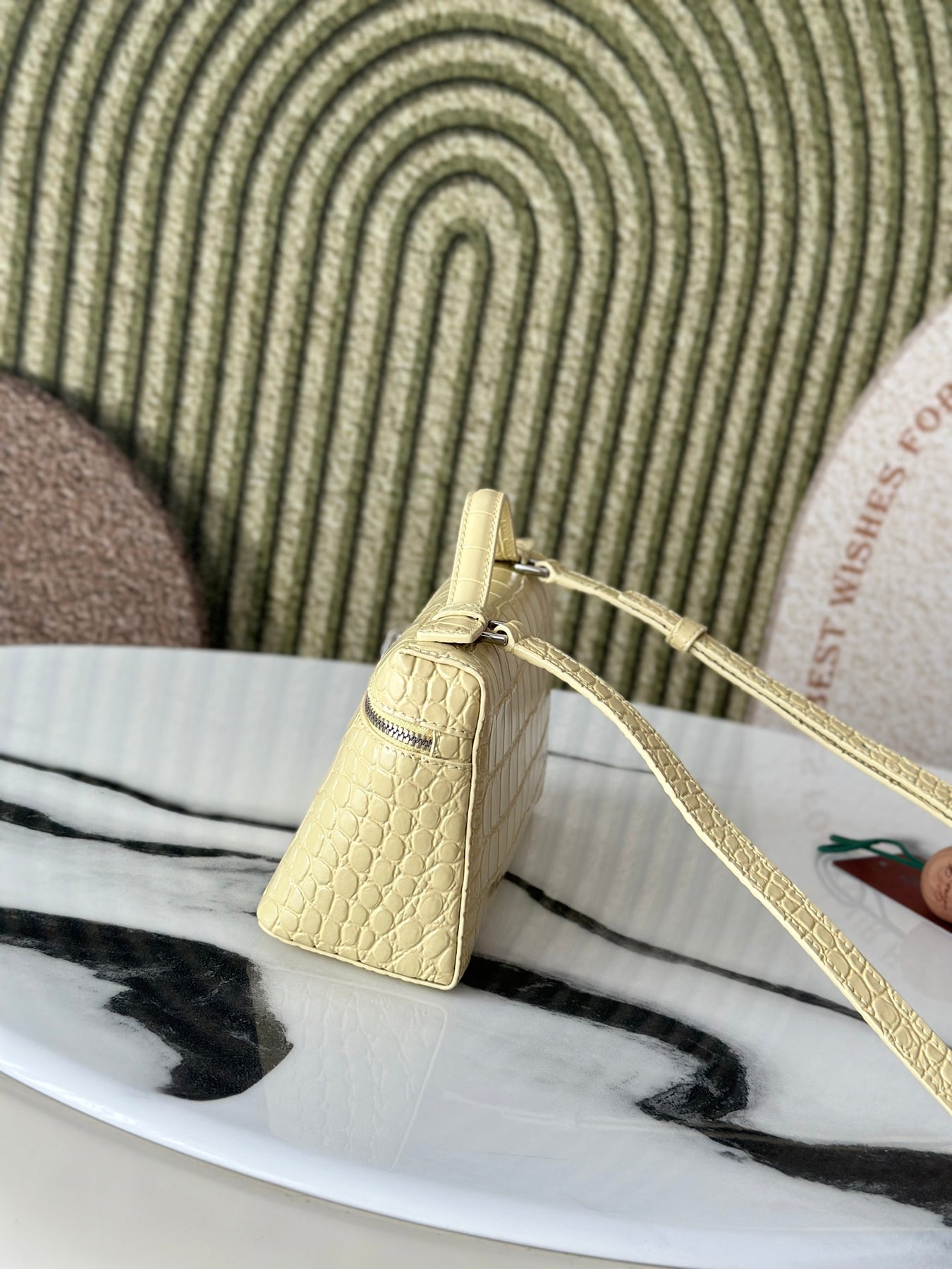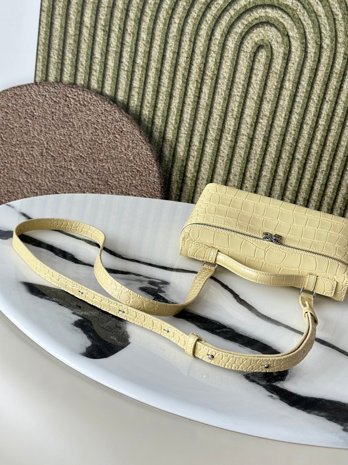 Introducing the Loró Piana Extra Pocket L19 Series Handbag, crafted from first-layer cowhide and featuring a luxurious crocodile pattern in a vibrant chick yellow. This second-generation buckle design embodies elegance without the need for complex styling. Its smooth, simple silhouette is reminiscent of a chic cosmetic case, making it a striking addition to any outfit.