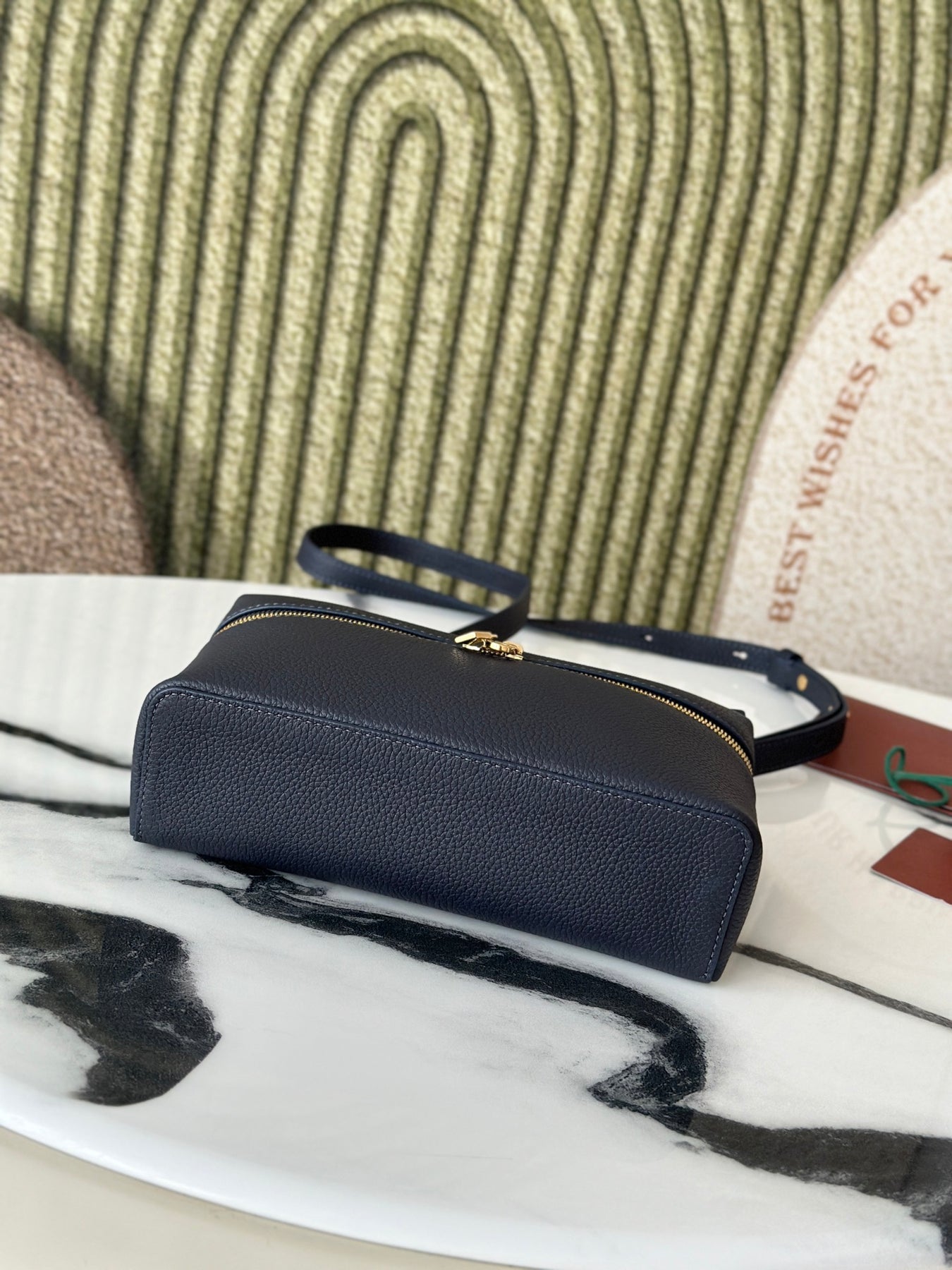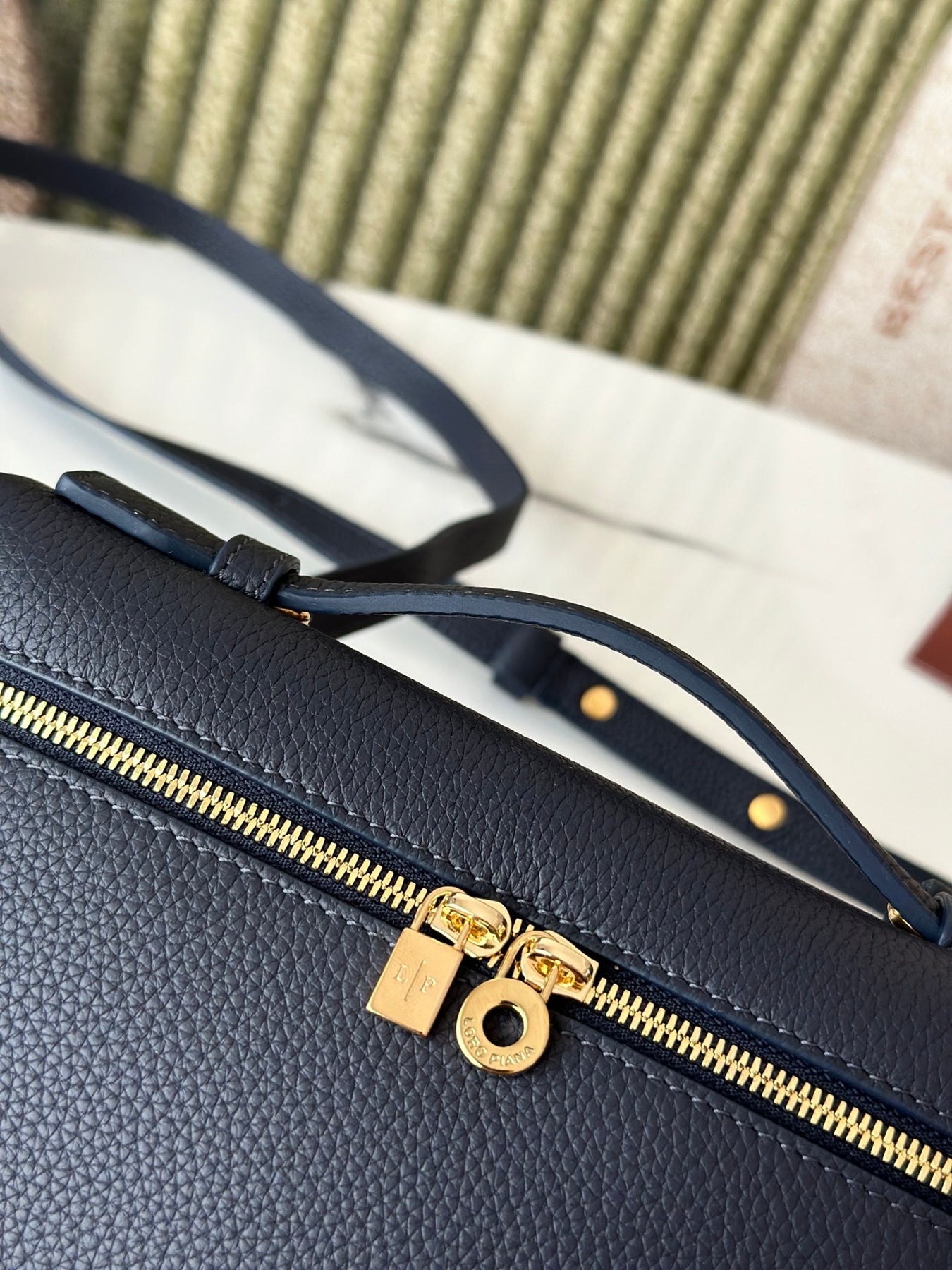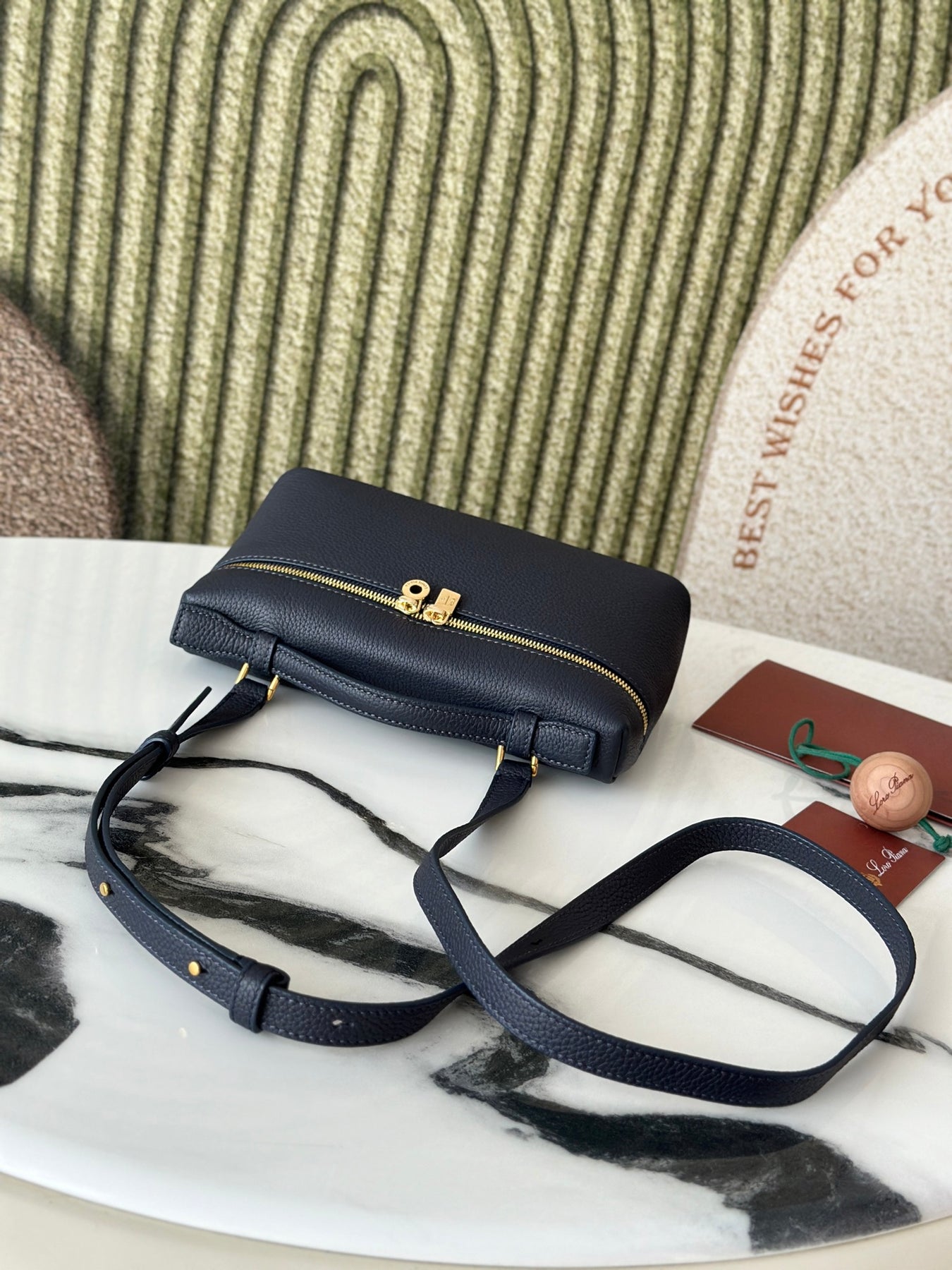 Discover the elegance of the L19 Navy Blue Handbag, featuring a luxurious gold buckle and an updated shoulder strap design. Crafted with precision, this handbag doubles as a crossbody bag, perfect for any occasion. With a size of 19 cm in length, 7 cm in width, and 12 cm in height (including the shoulder strap), it offers ample space for your essentials. The exclusive Loro Piana extra pocket adds functionality and style, making it a must-have accessory for your wardrobe. Elevate your fashion game with this chic and versatile handbag.