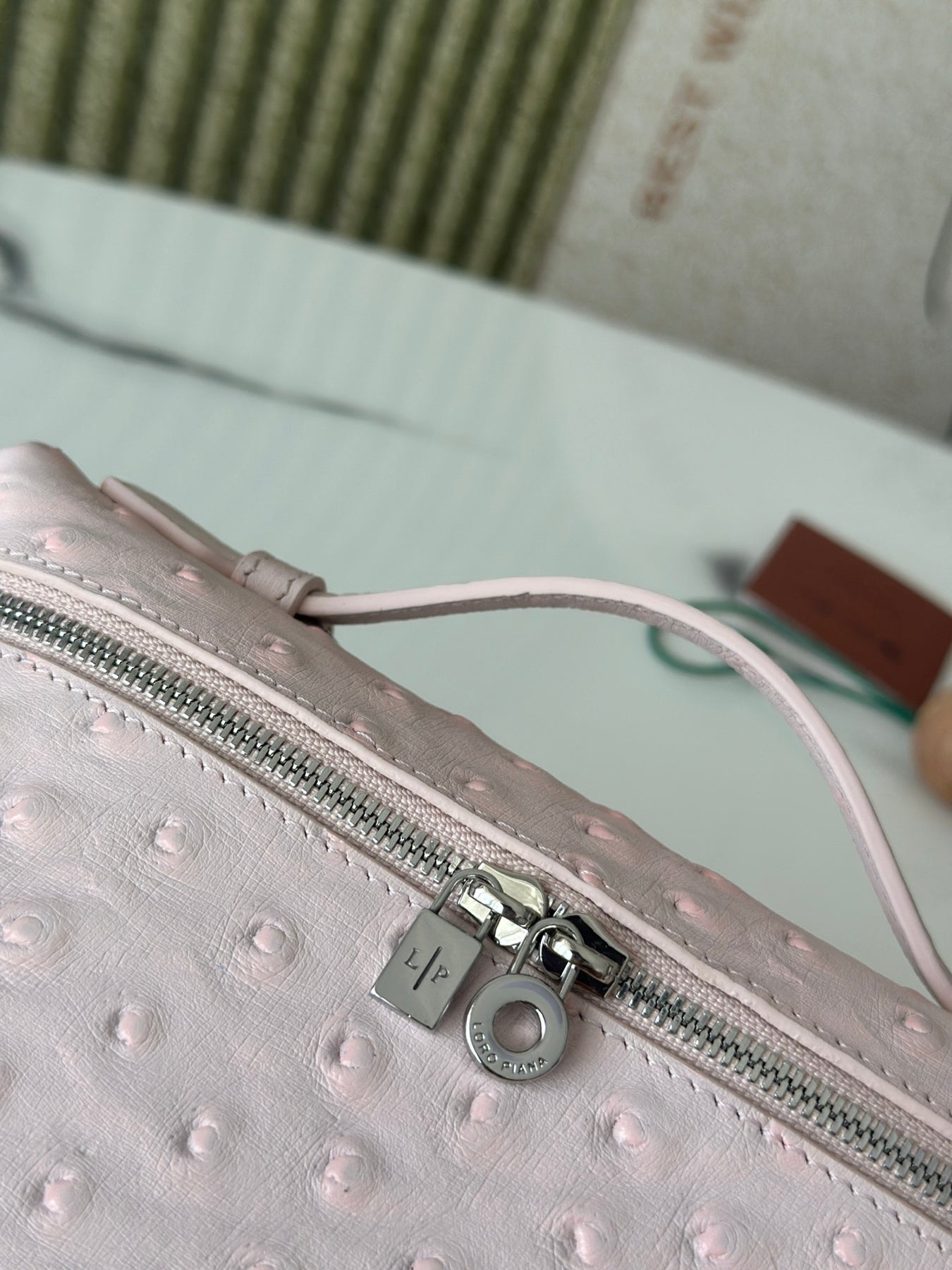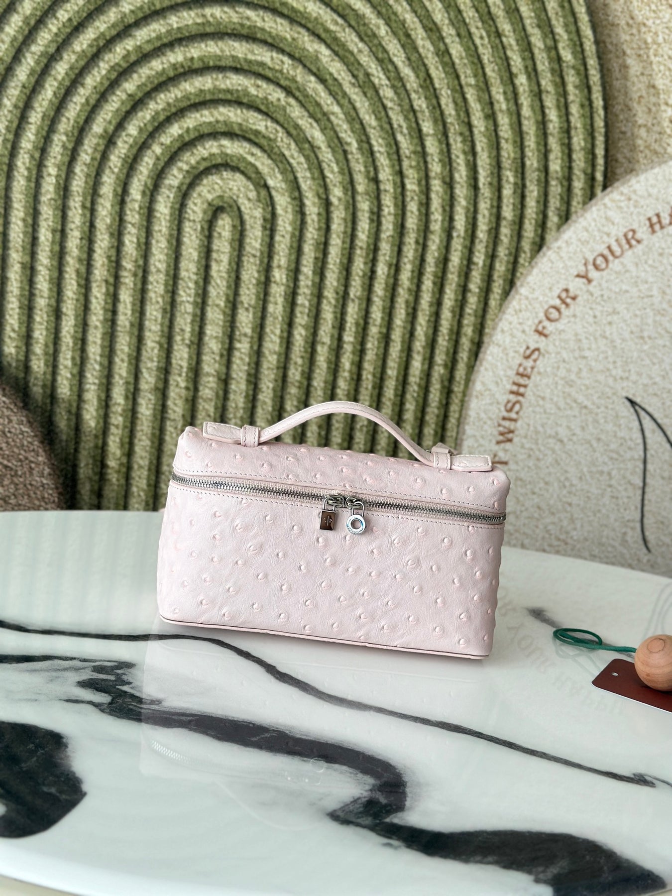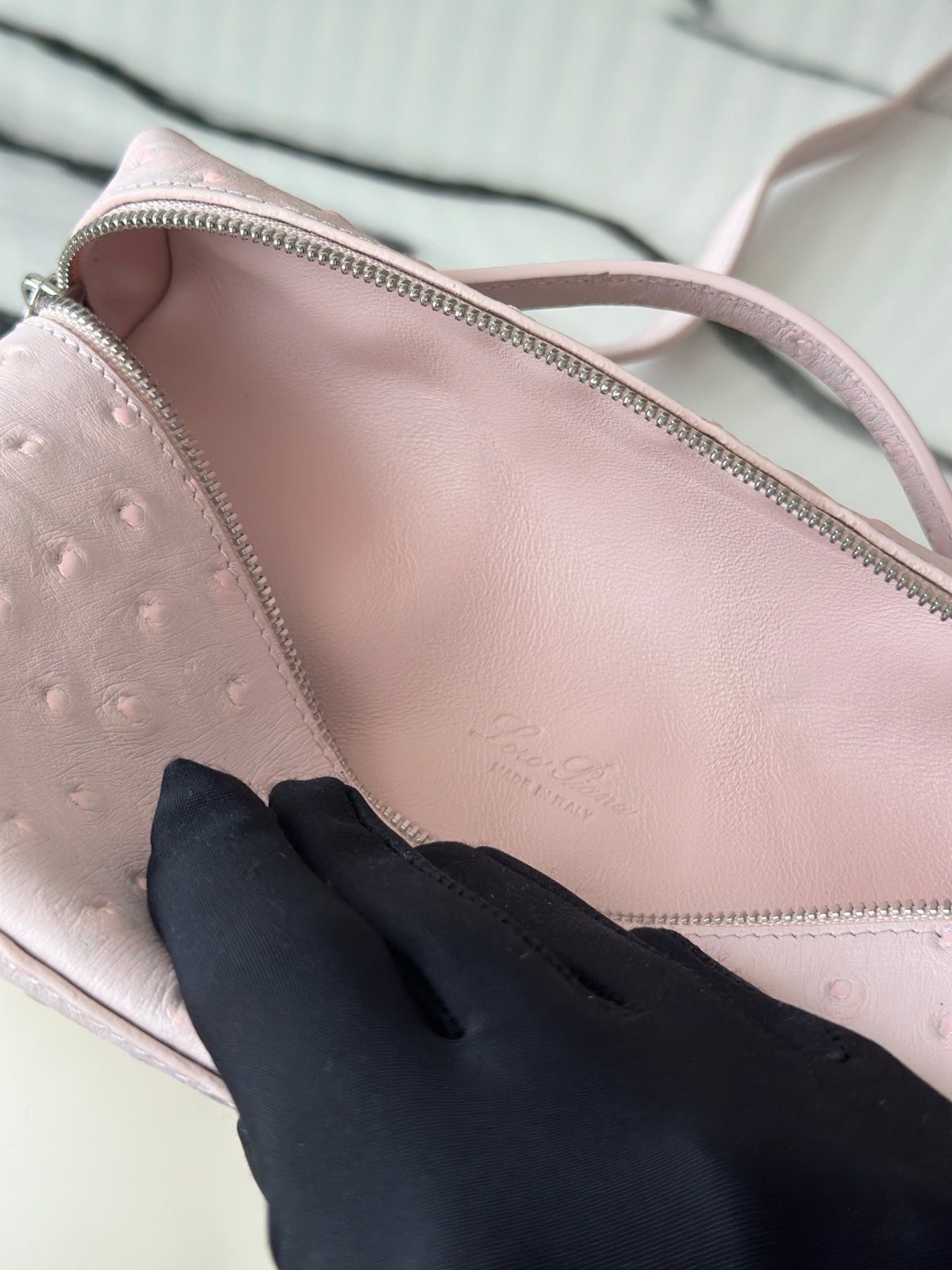 Discover the L19 Ostrich Spoon Medicinal Powder handbag from the Lorò Piana Extra Pocket Collection. This exquisite bag effortlessly blends sophistication with casual elegance, making it a favorite among fashion-forward influencers. Its streamlined design sets it apart, ensuring you make a statement wherever you go.
