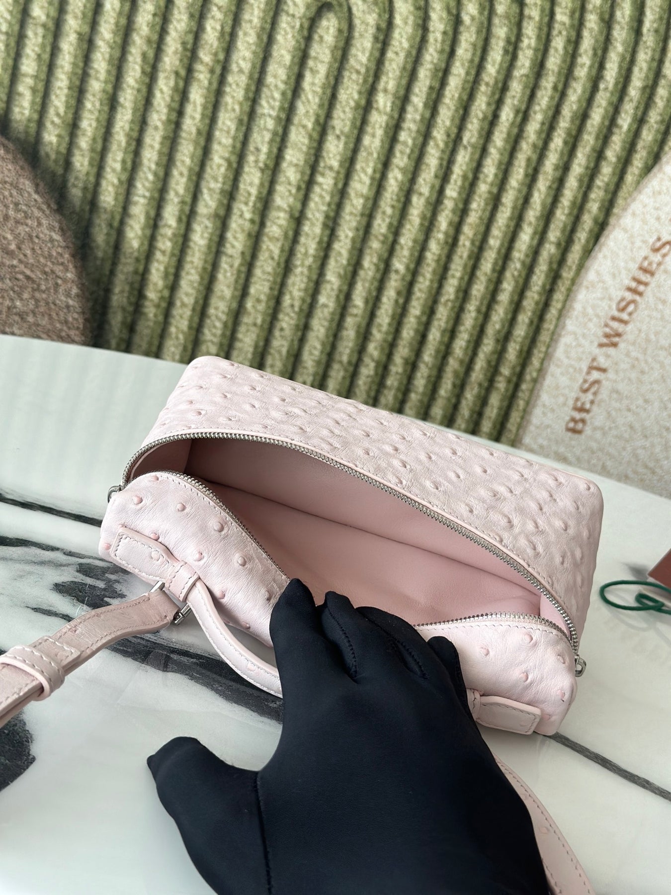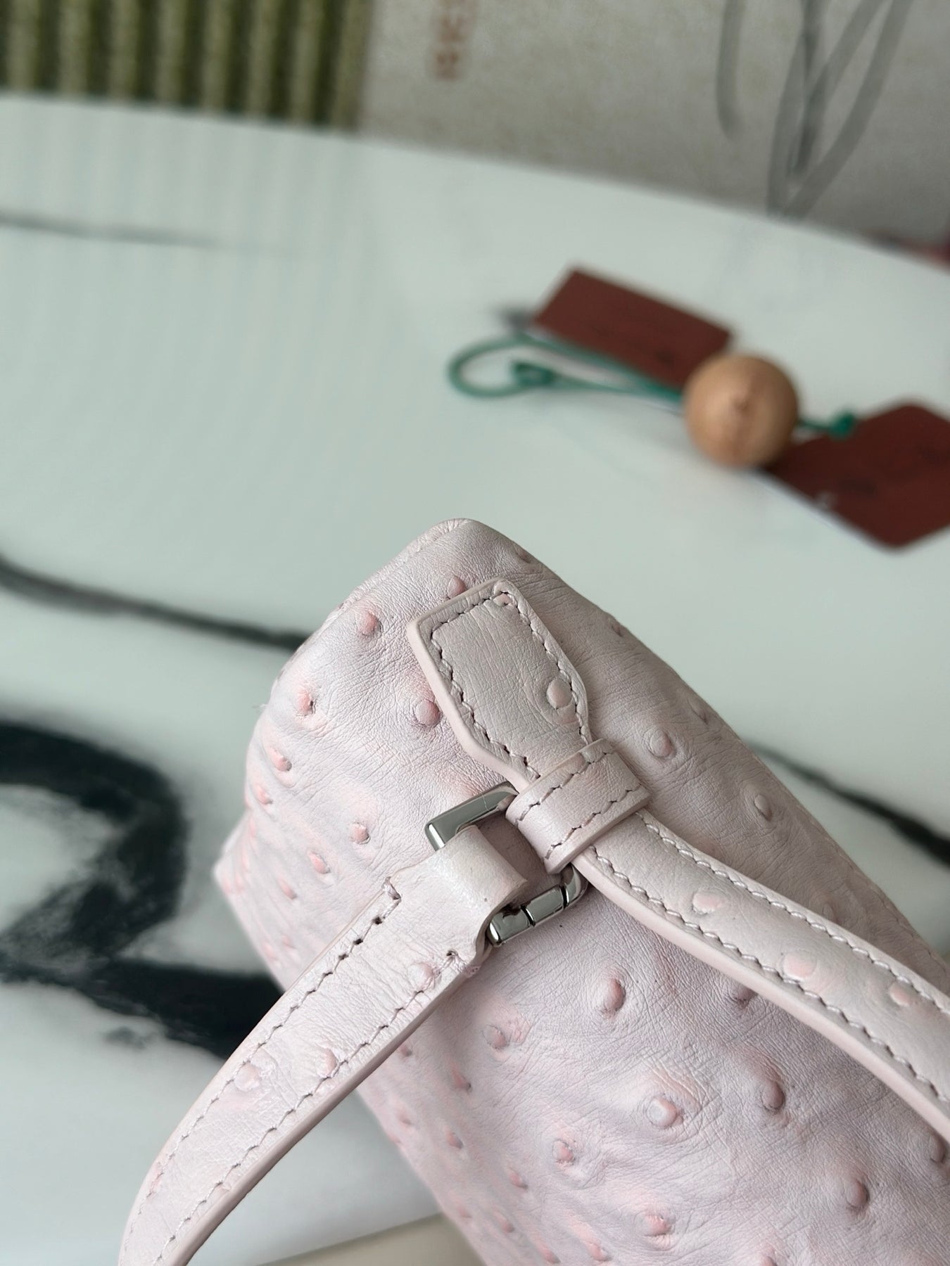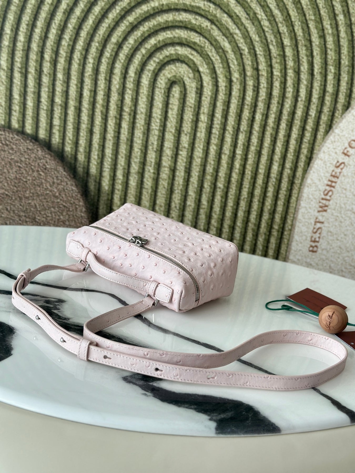Discover the L19 Ostrich Spoon Medicinal Powder handbag from the Lorò Piana Extra Pocket Collection. This exquisite bag effortlessly blends sophistication with casual elegance, making it a favorite among fashion-forward influencers. Its streamlined design sets it apart, ensuring you make a statement wherever you go.