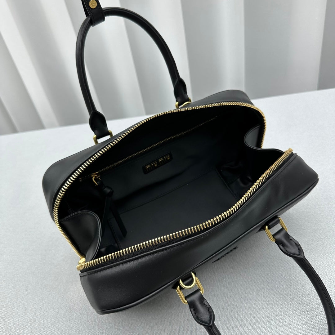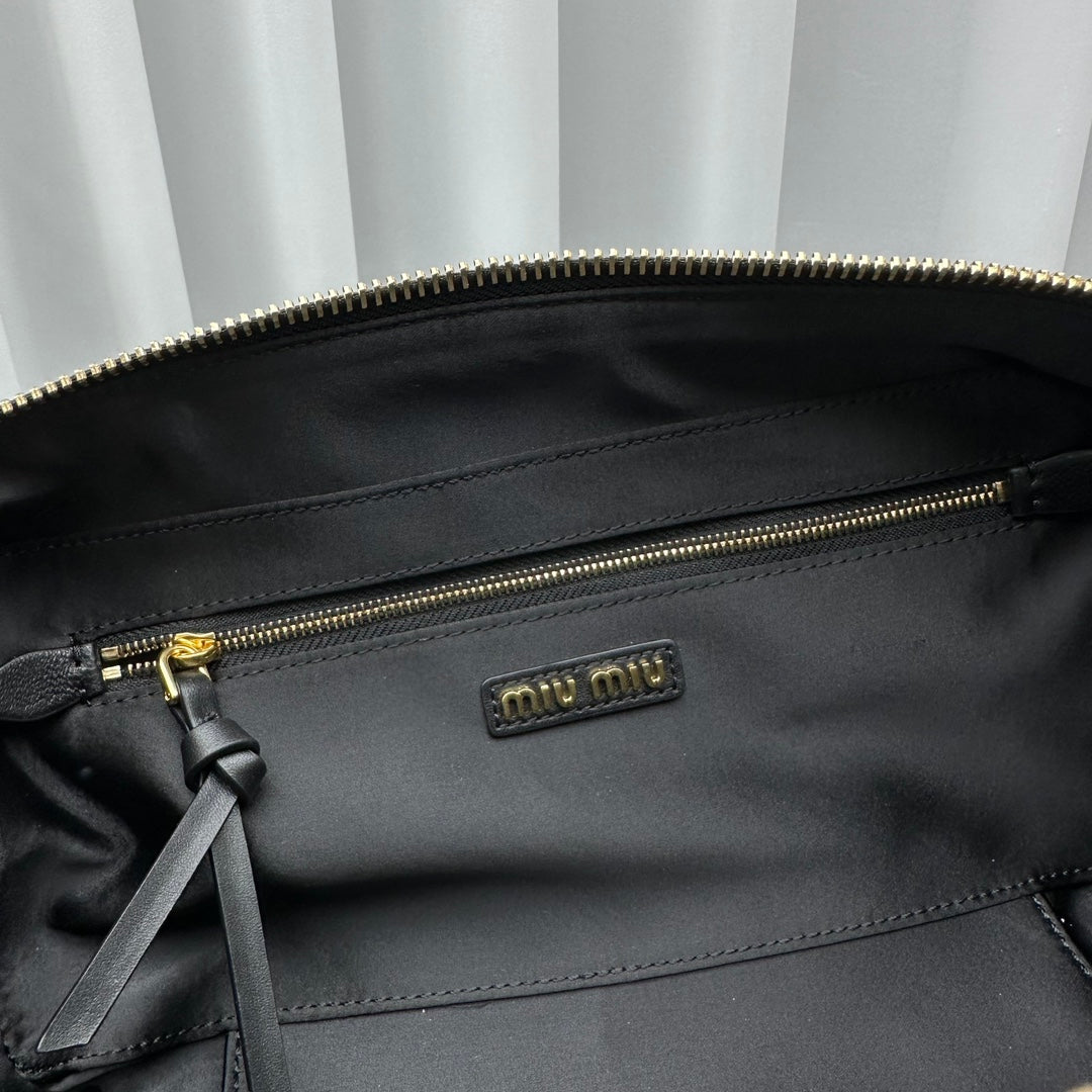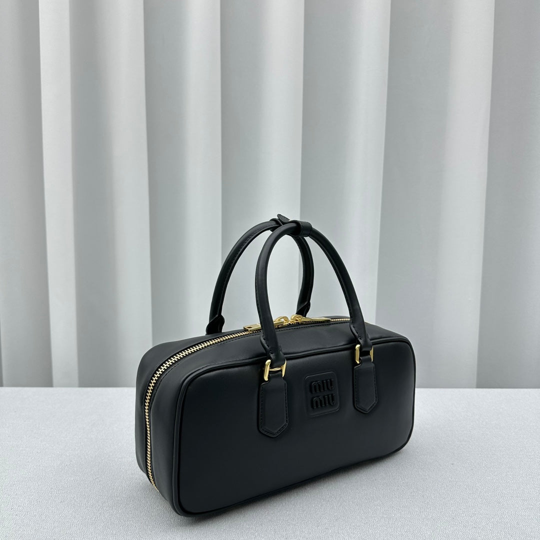 Elevate your style with the Large Black MIUMIU SS23 Show Bowling Bag, a modern take on a classic silhouette. This soft, padded bag seamlessly blends elegance with practicality, making it an essential accessory for daily commutes or casual outings. Its minimalistic design showcases its luxurious texture and versatile functionality, ensuring it complements any outfit.