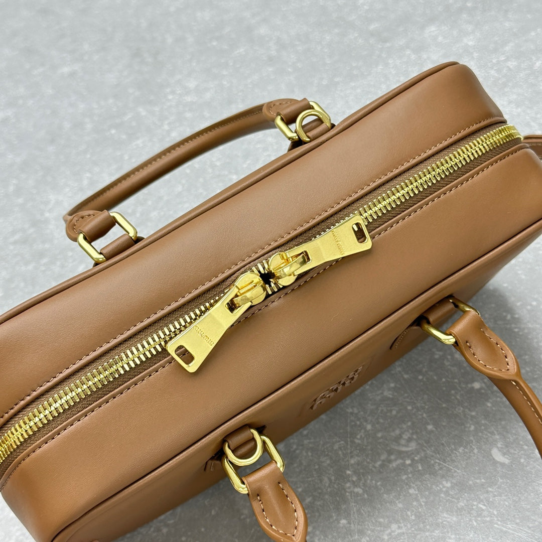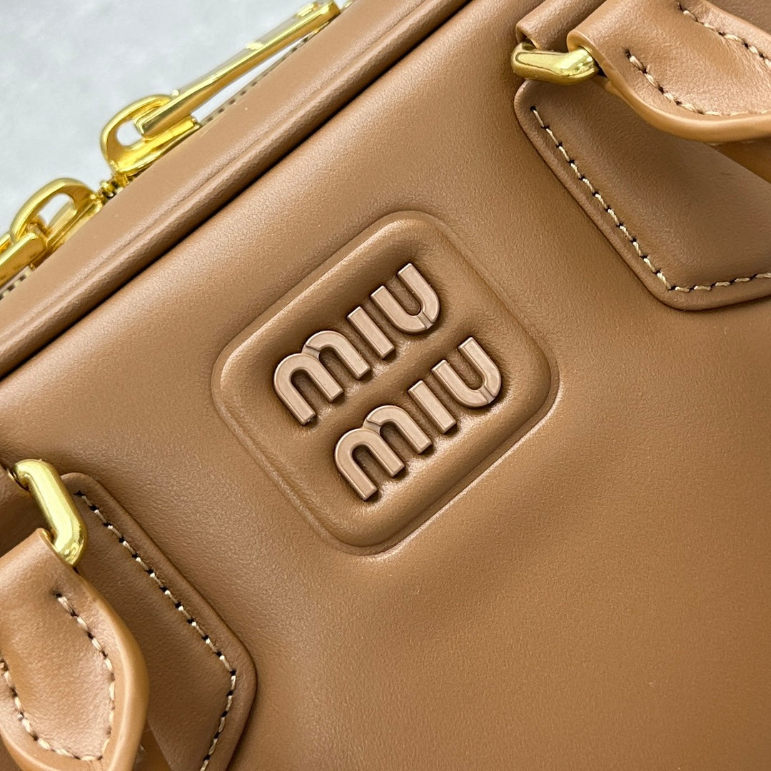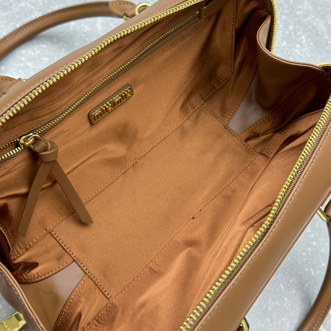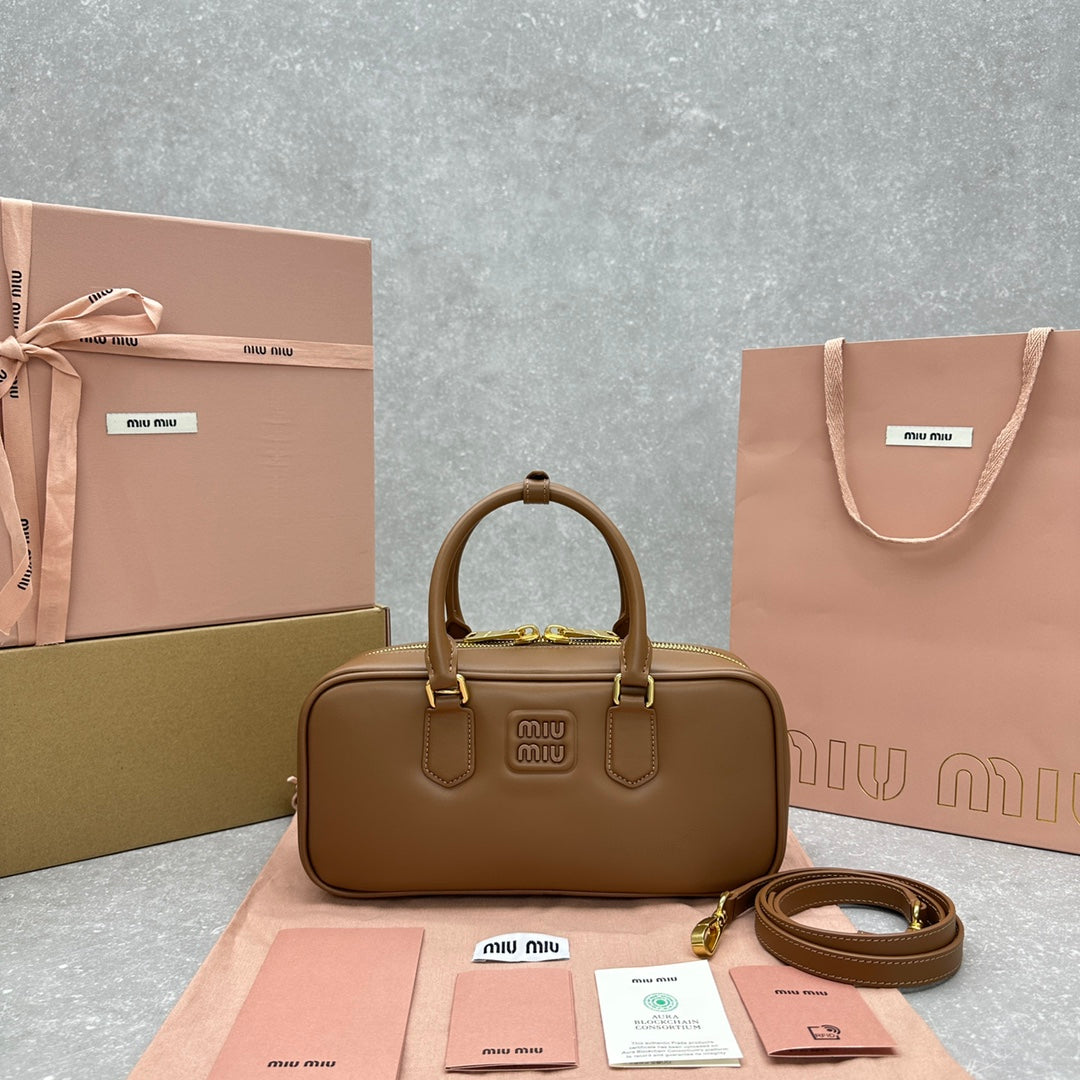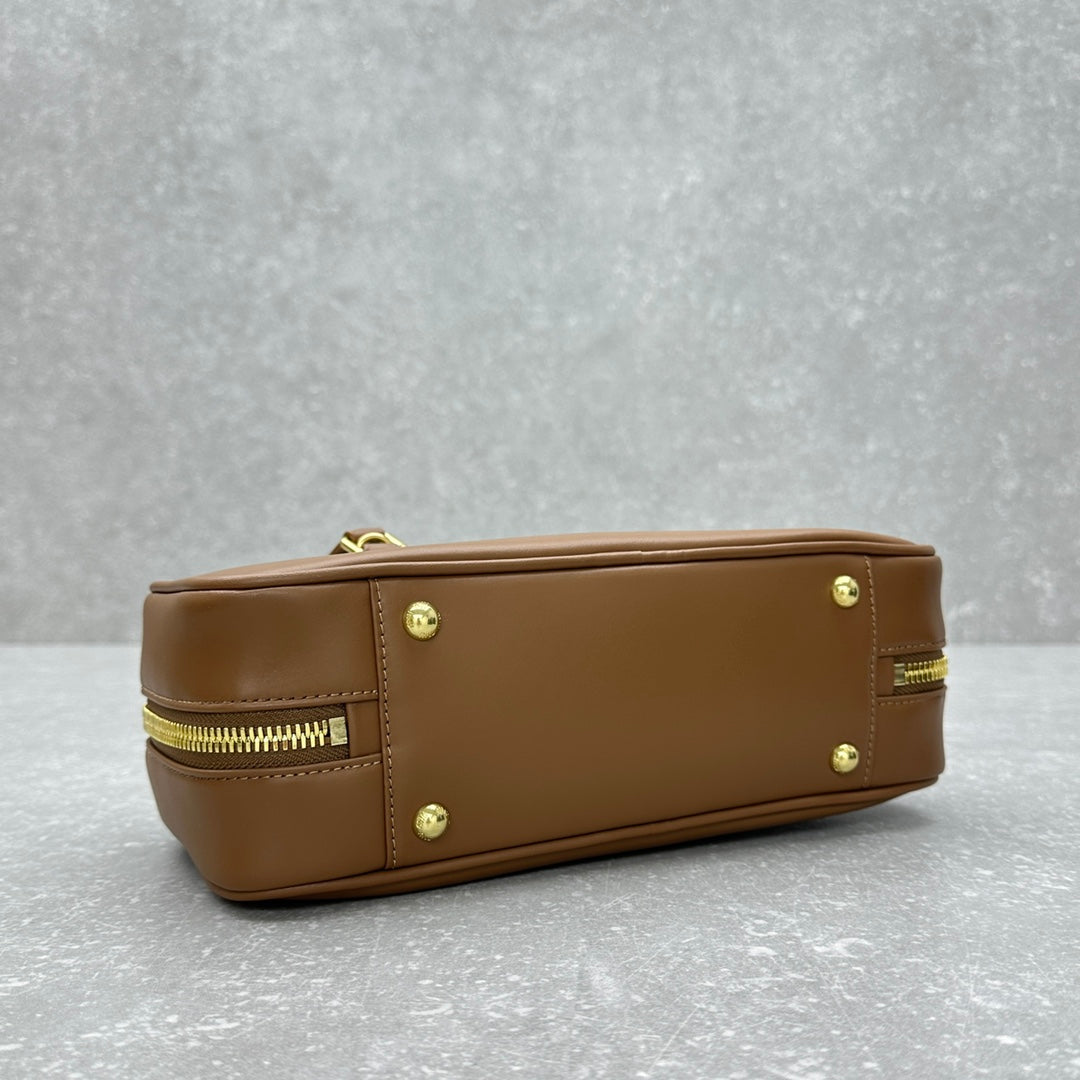Introducing the Large Brown MIUMI Padded Bowling Bag, a sophisticated twist on the classic bowling bag design. Crafted with a sleek, minimalistic aesthetic, this bag boasts remarkable versatility and practicality.