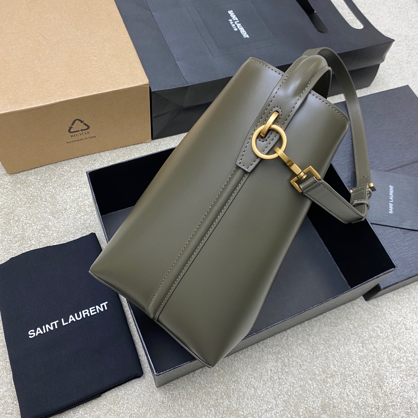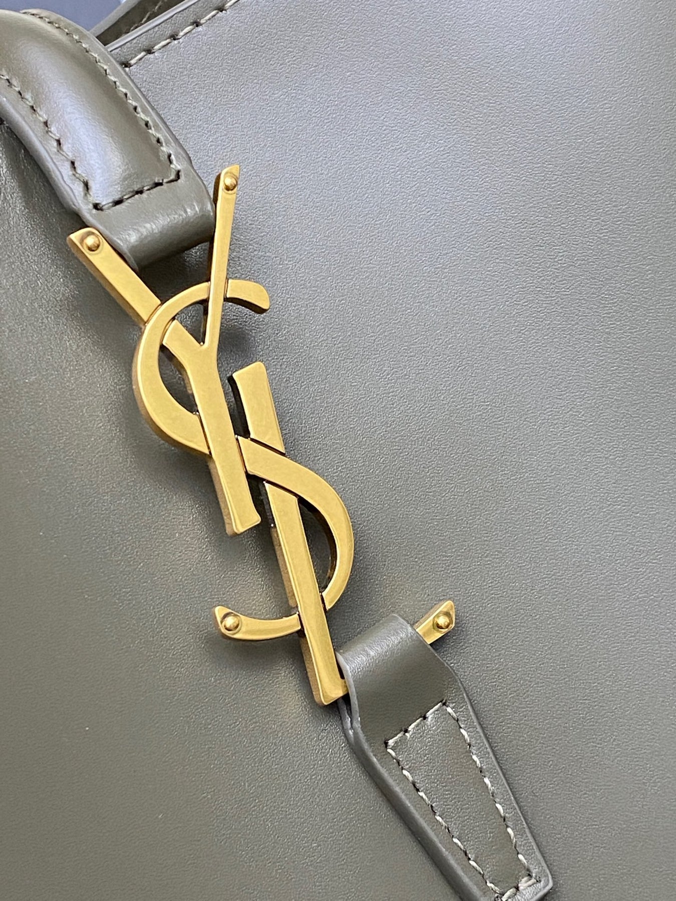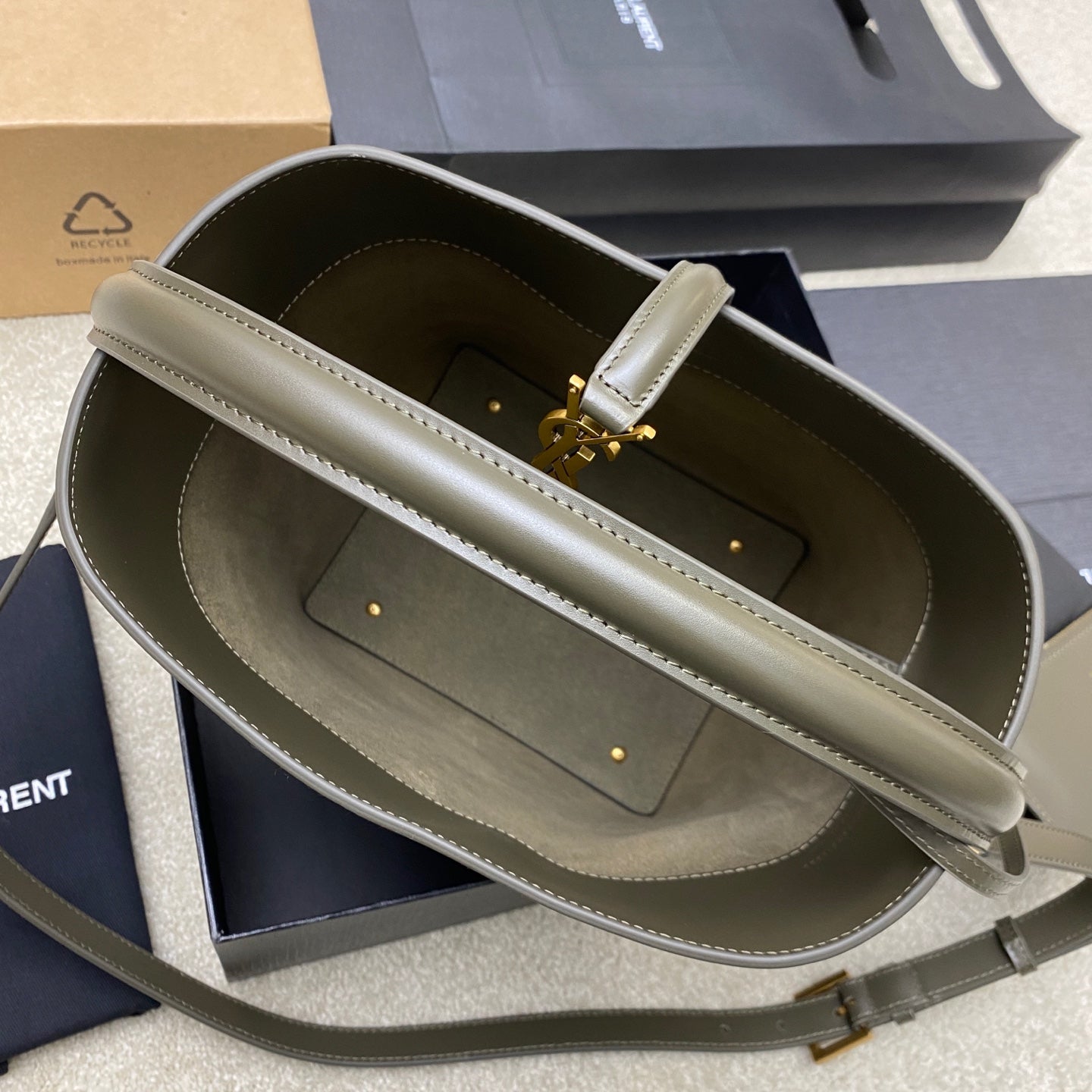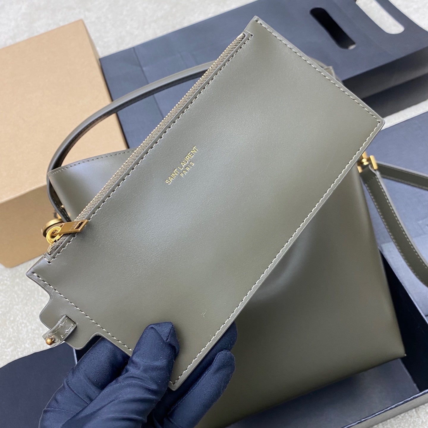 Discover the LE 5À7 series with our stunning Large Bucket Bag, crafted from premium Italian calfskin in a chic musk green and antique gold color scheme. This bag features a sleek and structured silhouette, combining elegance with a modern touch. The metal foot nails provide durability, while the iconic plug-in bag buckle showcases its classic design. With dimensions of 25×20×12 cm, this exquisite piece balances functionality and style, making it the perfect accessory for any occasion. Elevate your wardrobe with this luxurious and timeless bag.