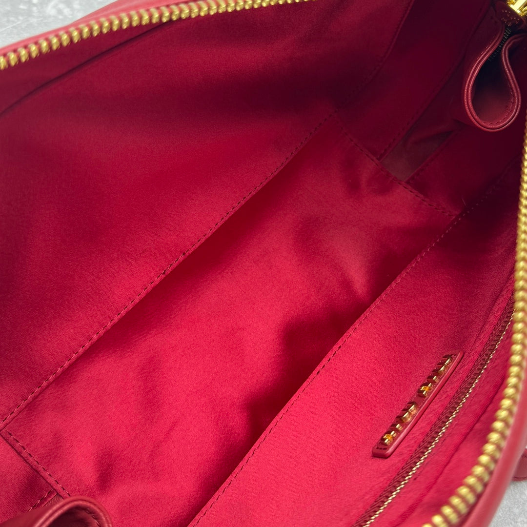 Large Red Sheepskin Pleated Bag – Versatile Luxury for Every Occasion