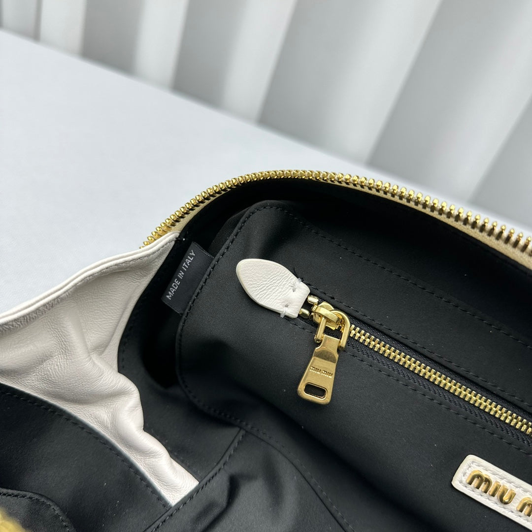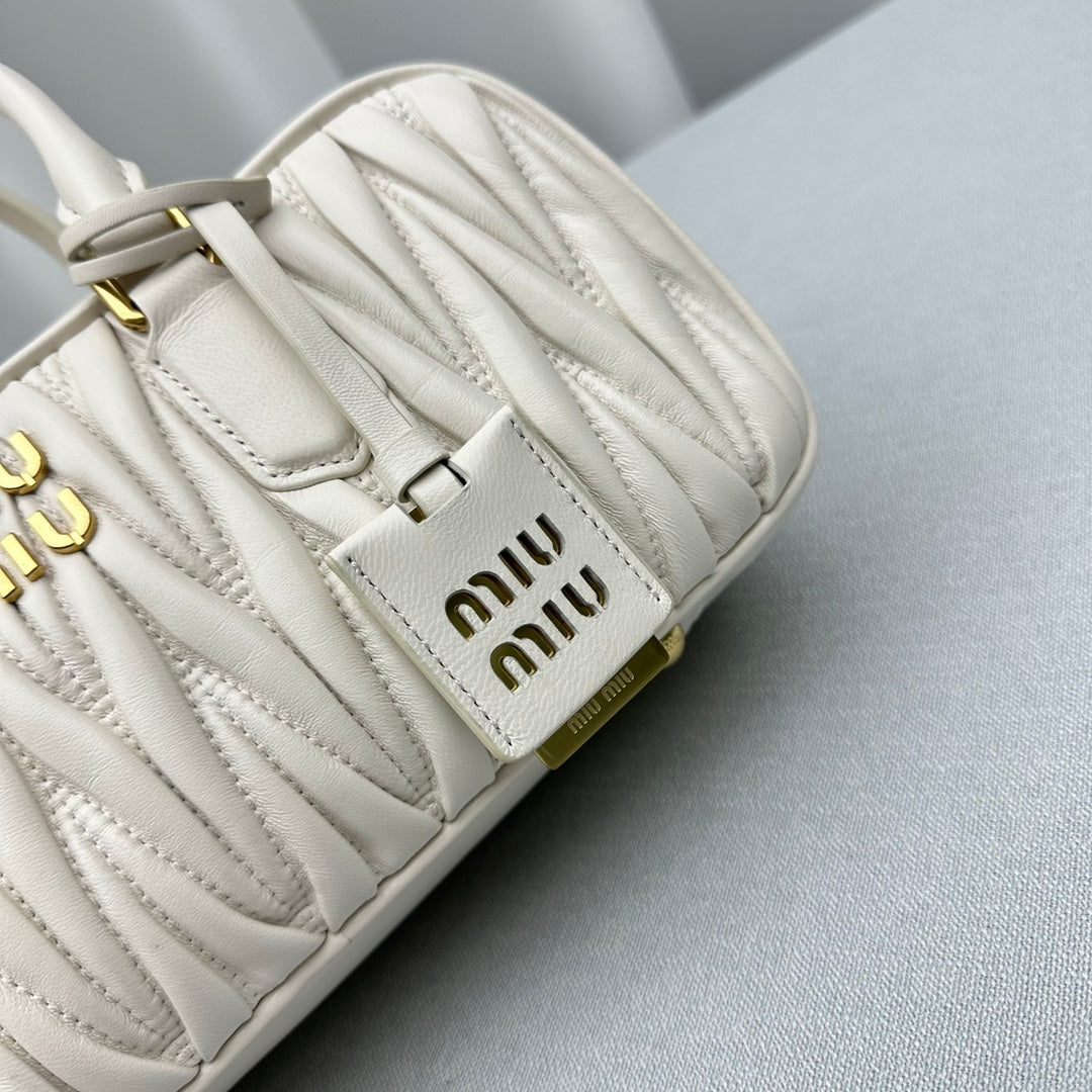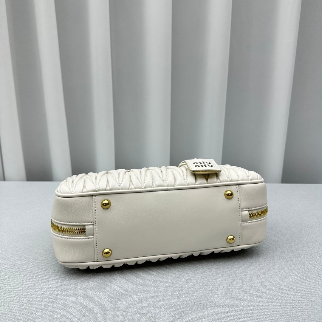 Large White Out MiùMi Sheepskin Pleated Bag - Versatile Luxury